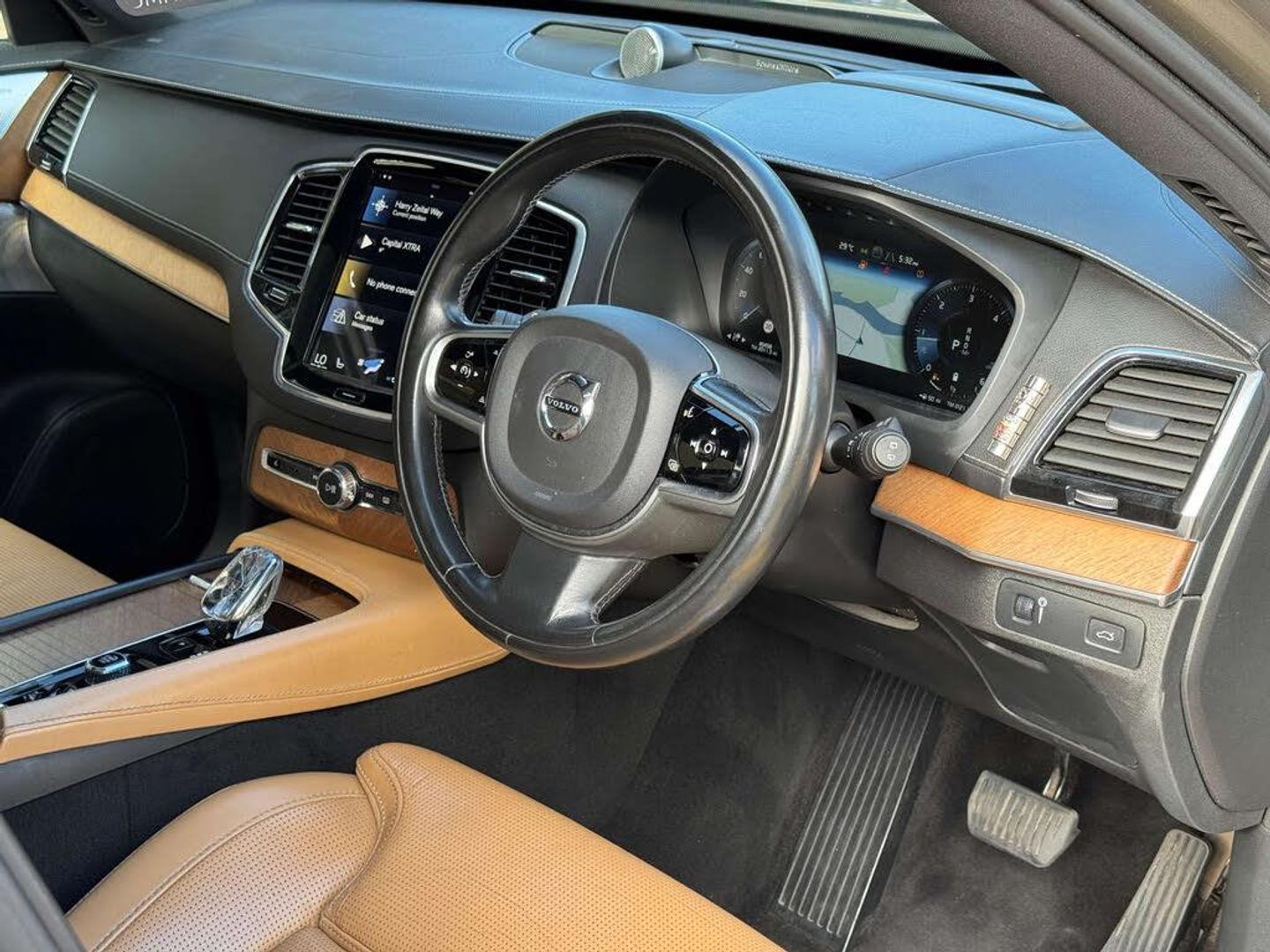 Finished in a sleek Grey exterior, this Volvo Xc90 comes loaded with extras to enhance your driving experience. The 22in Alloy Wheels - 6 Double Spoke Diamond Cut-Matt Black, Dark Tinted Windows, Intellisafe Surround, Linear Walnut Inlays, Parking Camera 360 Surround View, Power Glass Tilt and Slide Panoramic Sunroof, Retractable Towbar, Sensus Connect with Premium Sound by Bowers and Wilkins, and luxurious Pebble Grey Nappa Soft Leather interior with ventilation, make this Xc90 a true standout.