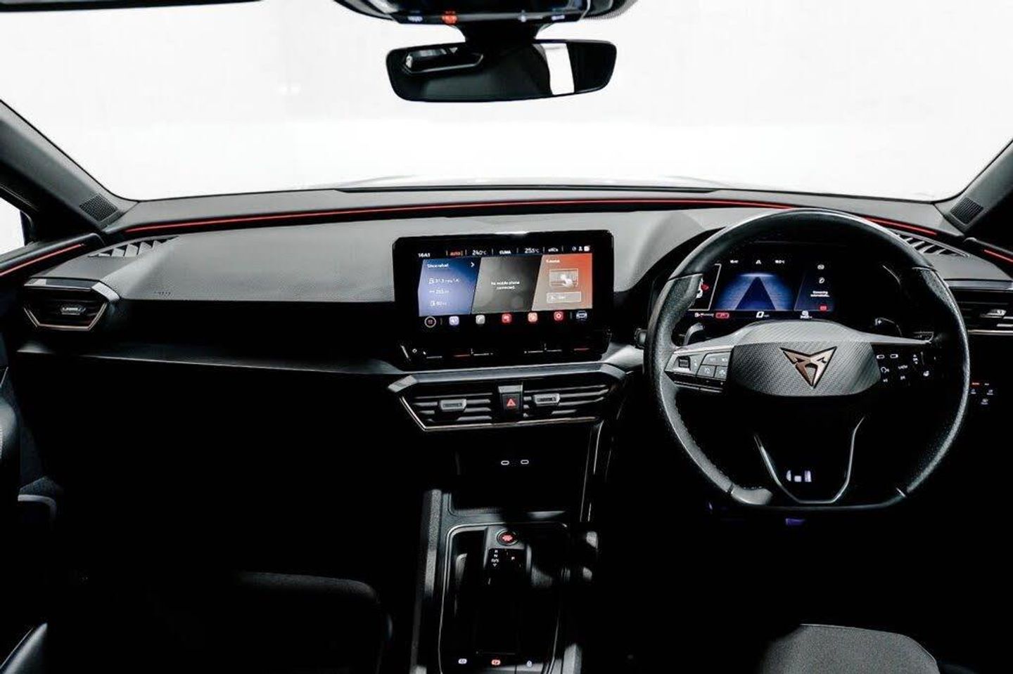 Midnight Black, 12V Power Supply in Centre Console, 19in Alloy Wheels - Machined - Black and Silver, ABS - Anti-Lock Braking System, Anti-Theft Alarm System - Interior Monitoring - Backup Horn and Towing Protection, Auto Dimming Rear View Mirror, Brake Control System - ESC and Brake Booster, CUPRA Black Brake Calipers, CUPRA Connect - Safety - Service - Remote and Online, CUPRA Drive Profile, CUPRA Dynamic and Comfort Pack, CUPRA Leather Flat Bottomed - Heated - Perforated Steering Wheel with Gearshift Paddles, CUPRA Sports Bumpers, Chrome and Copper Detailing, Cruise Control with Speed Limier, Cupra Sport Pedals, Dark Tinted Rear Windows, Digital Cockpit, Door Mirrors Electrically Adjustable - Folding and Heated, Driver and Front Passenger Airbags with Front Passenger Airbag Deactivation - Front Side and Curtain Airbag, Drivers and Passenger Seats - Manual Height Adjustment, Electric Front and Rear Windows, Electronic Parking Brake, Extended Safety System, Five Headrests, Folding Boot Cover, Front Assist - Forward Collision Warning Braking Reaction to Vehicles - Pedestrians and Cyclists, Front Centre Armrest, Front Seats Manual Lumbar Adjustment, Front and Rear Reading Lights - Four, Front and Rear Seat Belt Reminders, Full Link Smartphone Integration, Headlining - Black, ISOFIX Points in Outer Rear Seats with Top Tether Anchorage Points, Illuminated Front Door Sill, Illuminated Sunvisor with Mirror, Interior Ambient Lighting, Interior Wraparound Lighting, KESSY Advanced - Keyless Start - Keyless Entry, LED Front Fog Lamps with Cornering Function, LED Headlight, LED Rear Fog Lamps, Lane Assist, Lockable Tailgate, Media System Plus with Navigation, Park Assist - including Front and Rear Sensors, Rain Sensing Wipers, Rear Bench Seats with 60-40 Split and Armrest, Rear Diffuser with Twin Exhaust Pipe on Each Side, Rear View Camera, Separate Daytime Running Lights with Automatic Headlight Control and Coming Home Feature, Seven Speakers, Space Saver Spare Wheel - in lieu of Standard Tyre Repair Kit, Sports Bucket Seats, Storage Pockets on Rear of Front Seats, Three Zone Climate Control, Tiredness Recognition System, Tool Kit - with Jack, Tyre Pressure Monitoring System, USB Type C x4 - x2 Front and x2 Rear