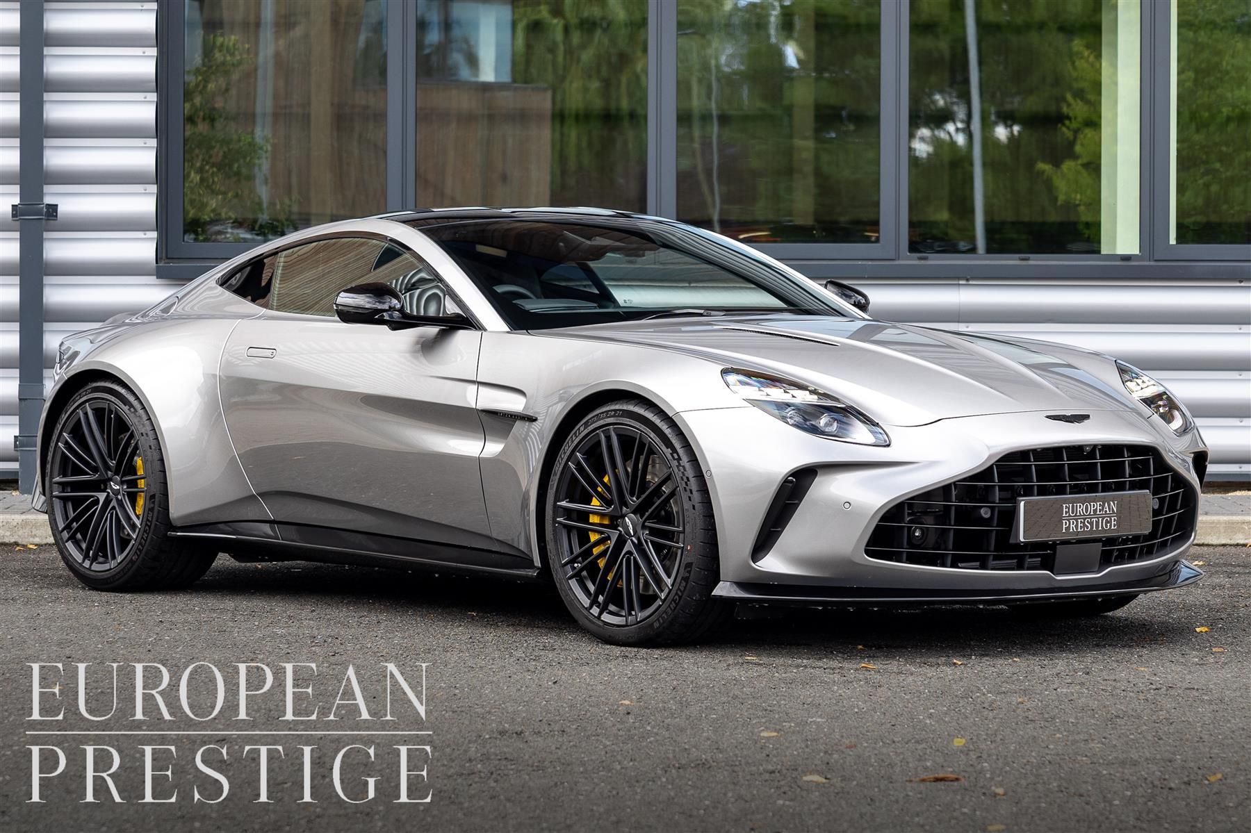2025 Aston Martin Vantage finished in Aluminite Silver over an Onyx Black leather interior.