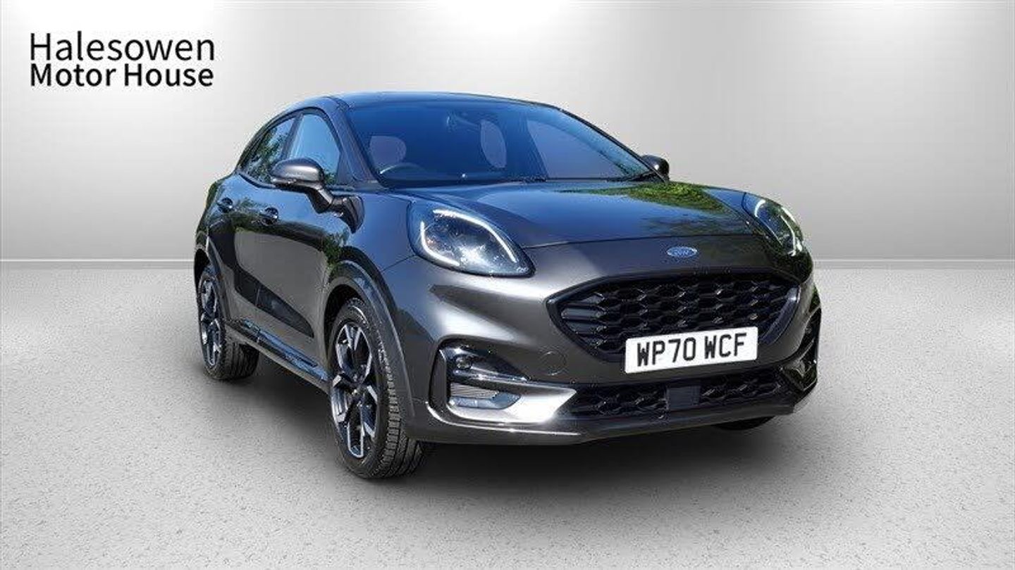 Experience dynamic style and cutting-edge technology with the Ford Puma 1.0T EcoBoost ST-Line X. Powered by a responsive 1.0-litre turbocharged EcoBoost petrol engine, it delivers 125 horsepower through a smooth 7-speed DCT automatic, ensuring lively performance and excellent fuel efficiency. The sporty ST-Line X trim brings bold styling with a distinctive honeycomb grille, aggressive bumpers, sleek LED headlights, 18-inch alloy wheels, and a lowered sports suspension for enhanced driving dynamics. Inside, the cabin features sporty seats with red stitching, a flat-bottom steering wheel, and an impressive 12.3-inch digital instrument cluster. The SYNC 3 infotainment system with an 8-inch touchscreen offers seamless connectivity via Apple CarPlay and Android Auto, while the B&O premium sound system delivers immersive audio. Practicality shines with a spacious 456-litre boot including the versatile Ford MegaBox for extra hidden storage. Safety is prioritized with features like adaptive cruise control, lane-keeping assist, pre-collision assist, and rear parking sensors. The Puma's elevated driving position provides confidence and excellent visibility, making every journey enjoyable. Combining sporty design, clever practicality, and advanced technology, the Ford Puma ST-Line X is the perfect compact SUV for drivers who want excitement without compromising everyday usability.