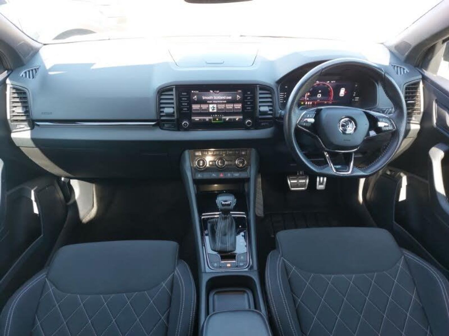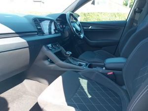 Amundsen navigation system with 8" touchscreen display and integrated WLAN and web radio, Panoramic sliding sunroof, Virtual Cockpit - 10.25" digital display, Wireless smartphone charging, 8" Digital display, SmartLink wireless for Apple and wired for Android, Dual zone climate control, Canton sound system, USB C Port x 2 in front centre console, Virtual pedal with electrically operated boot door, Sensor for driver assistance systems, DAB radio with Bluetooth, Auto dimming rear view mirror with light and rain sensors, LED 3rd brake light, LED daytime running lights, LED rear lights with high functionality welcome effect and dynamic indicators, Privacy glass, 3 spoke leather sports multifunction steering wheel and silver stitching with gear shift paddles, Height/reach adjust steering wheel, Isofix child seat preparation for front passenger seat, Isofix child seat preparation outer rear, Manual lumbar support for front seats, Light Pack - Karoq, Hill hold control, 19" Sagittarius anthracite alloy wheels