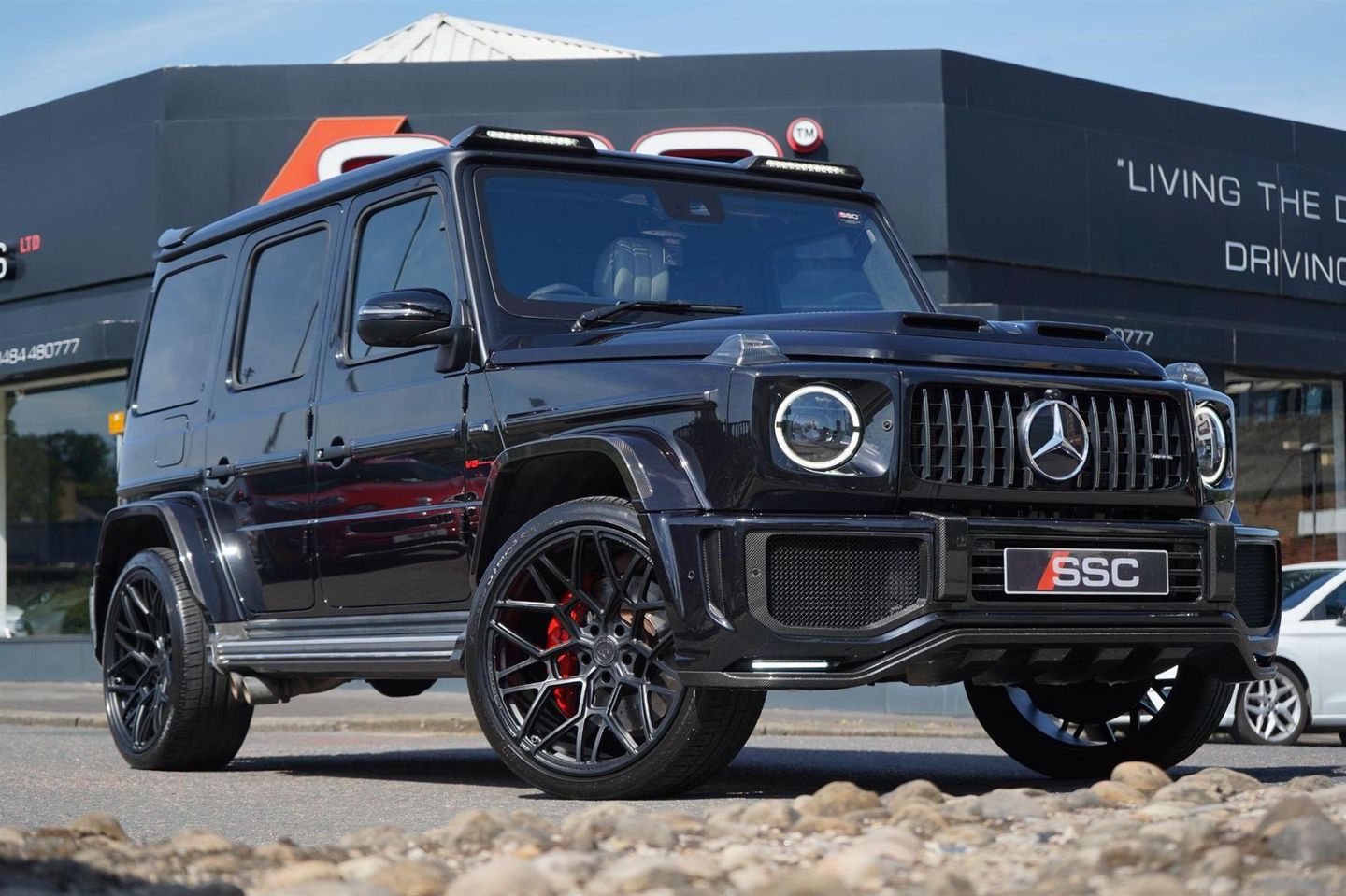 Stunning G63 AMG Finished In Obsidian Black Metallic With Exclusive Platinum White and Black Diamond Quilted Nappa Leather. Fantastic Spec inc: Urban Wide Track Carbon Body Kit, Urban x Vossen 23'' UV-1 Alloys, G Manufaktur Package, Premium Pack, Night Pack, 360 Camera, Multibeam LED, Sliding Sunroof, Upgrade Burmester Surround System With Digital DAB Radio, Widescreen Cockpit, Driving Assistance Package, Blind Spot Assist, Distronic, Park Assist, AMG Ride Control, Active Lane Keeping Assist, 64 Colour Ambient Lighting, Privacy Glass. This G63 Comes With Full Mercedes Service History.