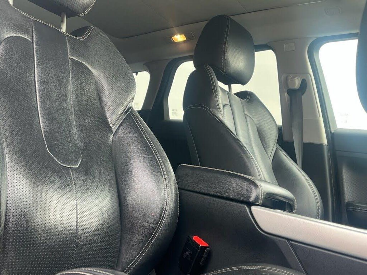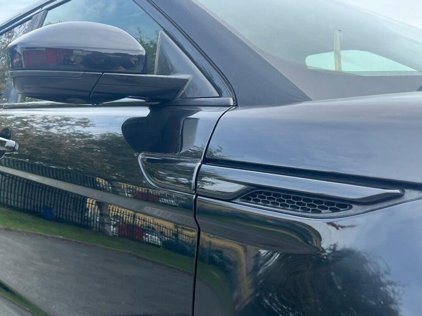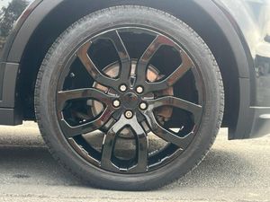 Santorini Black, LUX Pack, Black Design Pack, Glass - Privacy - Rear of B Post, Roof - Fixed Panoramic, 20in Alloy Style 9 - Gloss Black, 20in Alloy Sport Style 6 - Sparkle Silver, 5in TFT Driver Information Centre, 8/6 Way - Electric driver seat adjustment, 8in High Resolution Touch Screen, ABS - Anti Lock Braking System, Adaptive Dynamics, Airbags - Driver Knee, Airbags - Driver and Passenger Side, Airbags - Full Size Driver, Airbags - Full Size Passenger, Aluminium Pedal Finisher Kit, Armrest - Rear Centre with Storage Compartment and 2 Cupholders, Audio Connectivity System, Audio System - 380 Watt Meridian Sound System with Radio and Single Slot CD, Automatic Headlights, Bluetooth Audio Streaming, Bluetooth Telephone Connectivity, Carpet Mat Set - Front and Rear, Centre console - Covered Storage Compartment, Climate Control - Automatic with Air Filtration, Cruise Control, DSC - Dynamic Stability Control, Digital Audio Broadcast Radio - DAB, Door Mirrors - Electrically Adjustable - Heated and Power Folding with Memory Function, EBA - Emergency Brake Assist, EBD - Electronic Brake-Force Distribution, EDC - Engine Drag Torque Control, EPAS - Electronic Power Assisted Steering, EPB - Electronic Park Brake, Front Fog Lights, Global one-shot open/close windows, HDC - Hill Descent Control, HDD Premium Navigation with Touch Screen, HSA - Hill Start Assist, Hazard Warning Lights Under Heavy Braking, Headlight Power Wash, Headlining - Cirrus Morzine, Heated Front Seats, ISOFIX Child Seat Anchor Points, Illuminated tread plates, Illumination - Footwell, Illumination - Glovebox, Illumination - Load Compartment Light, Illumination - White Lighting in door release and over head console downlighter, Interior Mood Lighting, Land Rover - Tyre Repair System, Leather Steering Wheel, Locking Wheel Nuts, Luggage Compartment - Anchor Points, Luggage Cover, Multi-Function Steering Wheel, Parking Aid - Front, Parking Aid - Rear, Parking Aid - Rear View Camera, Proximity Sensing and Touch Detection For Overhead Map Lights, Push Button Start, RSC - Roll Stability Control, Rain Sensing Windscreen Wipers, Range Rover Smart Key Controls - Remote lock-Unlock-Double Lock-Lights on Tailgate Open, Rear spoiler, Satin brushed aluminium centre console finisher, Seats - 3 Seat Bench in Rear, Seats - 60/40 Split, Seats - Rear Centre Head Restraint, Sun Visors - Illuminated Vanity Mirrors, TCS - Traction Control System, TSA - Trailer Stability Assist, Terrain Response, Textured aluminium centre console finisher and textured aluminium IP finisher, Torque Vectoring, Waist finisher - High Gloss Black, Windows - Heated Rear Windscreen, Windscreen - Heated, Windscreen Washer Jets - Heated, Xenon Headlamps with LED Signature