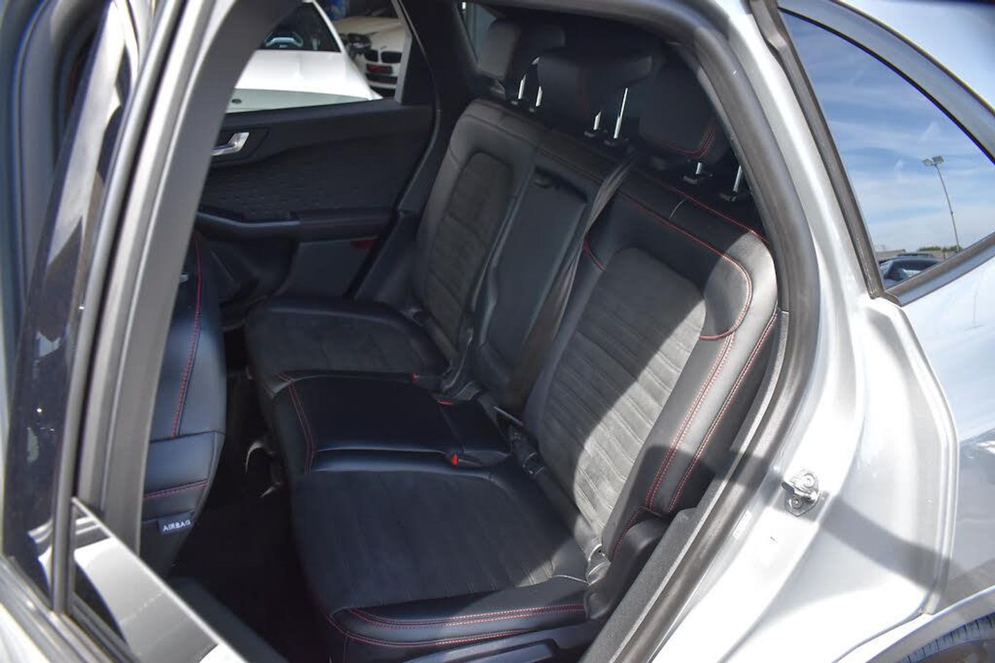 10-Way Power Adjustable Drivers Seat,12V Power Point in Floor Console,12v Power Point in Cargo Area,12v Socket - Voltage Regulator,18in Alloy Wheels - 10 Spoke - Rock Metallic,2nd Row Sliding Seats with 60-40 Split,8-Way Manual Passenger Seat including Lumbar Support and Height Adjust,Airbag - Driver and Front Passenger Side,Airbag - Front Passenger Deactivation Switch,Airbags - Driver and Front Passenger,Airbags - Front and Rear Side Curtain,Alloy Pedals,Aluminium - Finish Front Scuff Plates with ST-Line Script,Ambient Lighting,Auto Dimming Rear View Mirror,Auto Wipers,Automatic Door Relocking,Automatic Headlights with Auto High-Low Beam,B and O Premium Audio System with Large Instrument Cluster,Black Roof Rails,Centre Console with Electronic Parking Brake,Cruise Control with Adjustable Speed Limiter,Dark Headliner and Pillars,Driver and Passengers Sun Visor with Illumination,Dual Exhaust Tailpipes with Unique Brushed Stainless Steel Finish,Dual Zone Electronic Automatic Temperature Control - DEATC,EPAS - Electric Power Assisted Steering,ESC - Electronic Stability Programme and ABS - Anti Lock Braking System,Engine Immobiliser - SecuriLock,Exterior Door Handles - Body Coloured,Flat Bottom Steering Wheel in Sensico with Red Stitching,Floor Mats - Front and Rear - ST-Line,Ford Easy Fuel System,Ford Key Free System with Ford Power Start Button - Keyless Start,FordPass Connect,Front LED Fog Lights with Cornering Function,Front Seats - 2-Way Manual Height Adjust Passive Head Restraints,Front Seats - Drivers and Passengers Seatback Map Pockets,Front Windows - Laminated Glass,Front and Rear Bumper - Sporty Body Colour with Rear Ebony High-Gloss Insert,Front and Rear Parking Sensors,Full Digital 12.3in Instrument Cluster,Full LED Headlamps,Gear Shift - Unique Leather Trimmed Knob with Satin Aluminium Insert and Red Gaiter Stitching,Glovebox Lights,Handsfree Power Tailgate,Headlights - Automatic Follow Me Home Lighting,Headlights - Unique Bending,Heated and Power Folding Door Mirrors with Puddle Lights,High-Mounted Brake Light,Intelligent Speed Assist,Kuga Badge,LED Daytime Running Lights,Lane Keeping Aid with Lane Departure Warning,Large Rear Spoiler,Load Compartment - Lights,Load Compartment - Tie Down Hooks,Load Compartment Carpet,Locking Wheel Nuts,Lower Bodyside Moulding - Body Colour,Lower Door Frame Beltline - Black,Manual Childproof Locks on Rear Doors,Mini Overhead Console with Sunglasses Holder Bin,Mobile Phone Wireless Charging Pad,MyKey Gen II,Post Collision Braking,Power Door Deadlocks - Double Locking,Power Door Locks,Power Front and Rear Windows with Shot up and Down - One Global Closing,Pre-Collision Assist with Autonomous Emergency Braking - Camera Detection,Privacy Glass,Quickclear Heated Windscreen,Rear Lights - LED,Rear Seat Centre Head Restraint,Rear Seats - 2-Way Head Restraint Up-Down,Rear Seats - Folding Centre Armrest with Integrated Cup Holder,Rear Seats - Sliding Seat Adjust Tracks - Fore-Aft,Rear View Camera,Red Brake Calipers,Remote Power Central Double Locking Doors,Remote Tailgate Release,Removable Package Tray,Rocker Panel Mouldings - Body Colour - ST-Line Design,ST-Line Badge on Left and Right Side Wings,ST-Line Bodystyling Kit,ST-Line Front and Rear Bumper Moulding - Body Colour,ST-Line Leather Gear Knob,Satellite Navigation - Navigation Center,Seat Belt - Drivers - Front Passenger and Rear Seat Belt Reminder Alert,Seat Belts - Front 3-Point Seatbelts with Load Limiter,Seat Belts - Front Height Adjustable,Seat Belts - Rear Retractable Rear Belt - 3-Point All Positions,Seats - ISOFIX Mounting Provision for Child Seats - Outer Seats Only,Selectable Drive Modes,Sports Seats,Standard Duty Suspension,Steering Column - Locking Electric,Steering Column - Rake and Reach Adjustment,Tailgate Handle - Body Colour,Tether Anchorage - Two Rear Seat Top Tether Anchorage Restraints,Thatcham Category 1 Perimeter and Volume Sensing Alarm,Tow Hooks - Front and Rear,Trip Computer,Twin Exhausts,Tyre Inflation Kit,Tyre Pressure Monitoring System,Upper Door Frame Beltline - Black,Wiper - Intermittent Rear Window Wiper,Wrong Way Alert,Solar Silver,Partial Sensico - Rapton Cloth - Ebony with Red Stitching