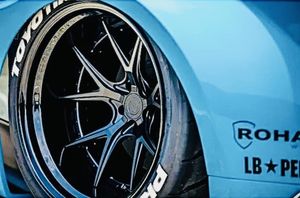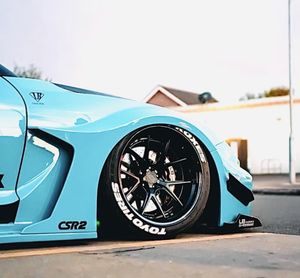 To complete the exterior they needed to find a set of wheels to fill those huge arches and what better way to fill them with than a set of Forged Rohana Trinity Series RFG15 three piece in satin black, with gloss black lip sat in front of their custom Liberty Walk brake callipers etching.