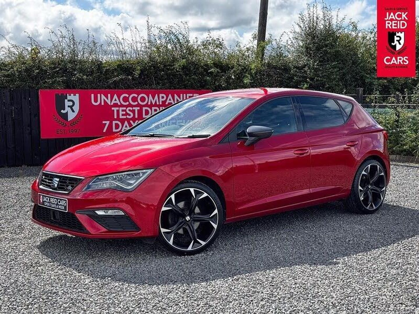 Check out what's all included in this 2020 Seat Leon 1.5 TSI EVO FR Black Edition [EZ] 5dr:. Convenience pack+.. Winter pack.. Digital cockpit.. Front and rear parking sensors.. Full Link Smartphone Integration.. Media system plus with 8" display.. Navigation system 3D map display.. Flat bottomed FR sports leather steering wheel.If you like the look of this car and would like to come for a look or an unaccompanied test drive feel free to call down anytime or get in touch to make an appointment. We are open 7 days a week for your convenience!We have one of the largest numbers of cars for sale in our area with up to 200 cars in stock ready to view! We stock a variety of makes and models such as Audi, BMW, Seat, Range Rover, Mercedes, Jaguar and many more!All our cars come warranted by Jack Reid Cars meaning that we make all our decisions in house unlike unreliable warranty companies with too many terms and conditions.We look forward to hearing from you!This car is shown with an optional new alloy wheel and tyre upgrade or it can be returned to the standard wheels, whichever suits you best. Please contact sales for pricing.