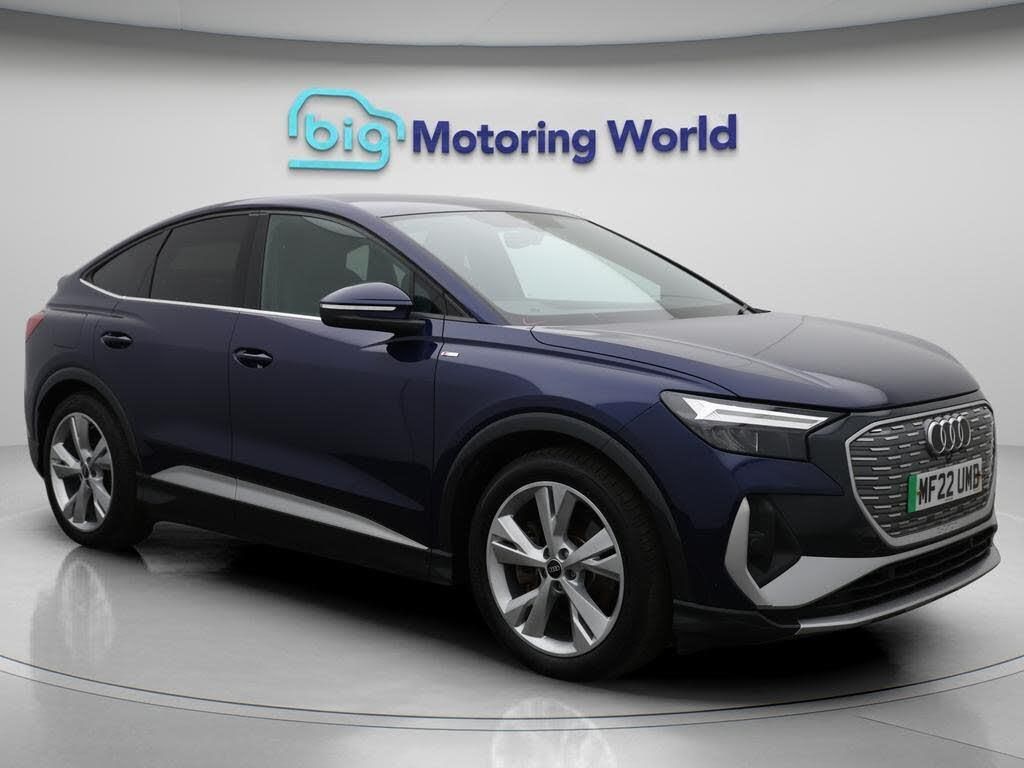 All Wheel Drive,Part Leather S-Our Audi Q4 e-tron is finished in Blue. Specification includes a range of fantastic features including All Wheel Drive, Part Leather Seats, Apple CarPlay, Lane Assist, S Line Body Styling, Android Auto, Satellite Navigation, Privacy Glass, Heated Seats, Rear View Camera Specification information is supplied by CAPHPI and may vary to the actual car. This data does not form any part of a buying contact. Please check specification prior to purchase in-store. The MOT is valid until March 2026, visit bigmotoringworld.co.uk for more photos, a 360 tour, service history and a free HPI report.Were BIG on peace of mind and this Blue Audi Q4 e-tron has completed our comprehensive 200 point inspection and passed all checks. Its ready for you to drive away with immediate collection in-store. We include a 90-day warranty as standard plus an option to extend for up to 3 years.Reserve this car exclusively for you, safely and securely at bigmotoringworld.co.uk, with a fully refundable £99 deposit. Test drive before you buy, with no commitment, no hassle and a completely haggle free experience. Still searching and want to see thousands more cars? We are BIG on choice with over 8000 cars to choose from.Visit our award winning web site bigmotoringworld.co.uk.Were Big Motoring World and were BIG on what matters to you.