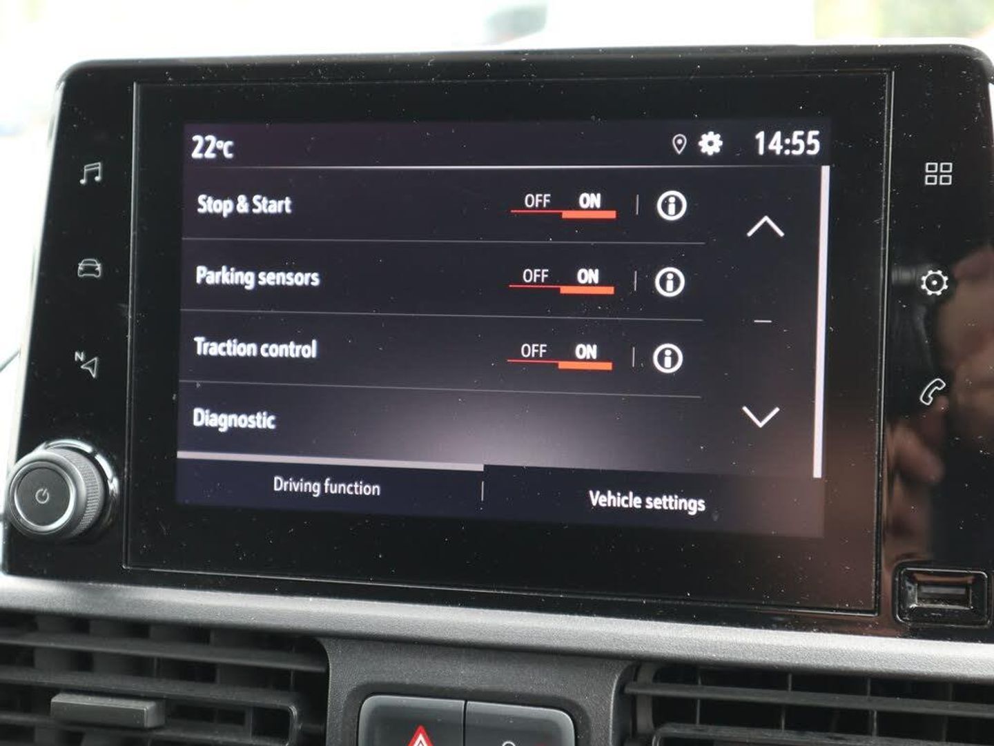 Central facia display with audio information, digital clock, outside temperature with ice warning and additional features about infotainment system,Centrally located instrument cluster with service due indicator and trip computer data,Instrumentation Speedometer, rev counter, fuel gauge with low fuel warning light and water temperature gauge and shift up indication warning light,Multi-function trip computer with trip mileage, vehicle range, average speed, average and instantaneous fuel economy,Multimedia - 8'' colour touchscreen,ride and handling automatic electronic controlled,Speed sensitive electric power assisted system,Vauxhall connect,Steering wheel mounted audio controls,USB charging point in glovebox,USB charging point in rear centre console,Automatic lighting control,Black bodyside mouldings,Black door handles,Black door mirrors,Body colour front and rear bumpers,Front fog lights,Halogen daytime running lights,Power adjustable, heated, manual folding door mirrors,Power/Express