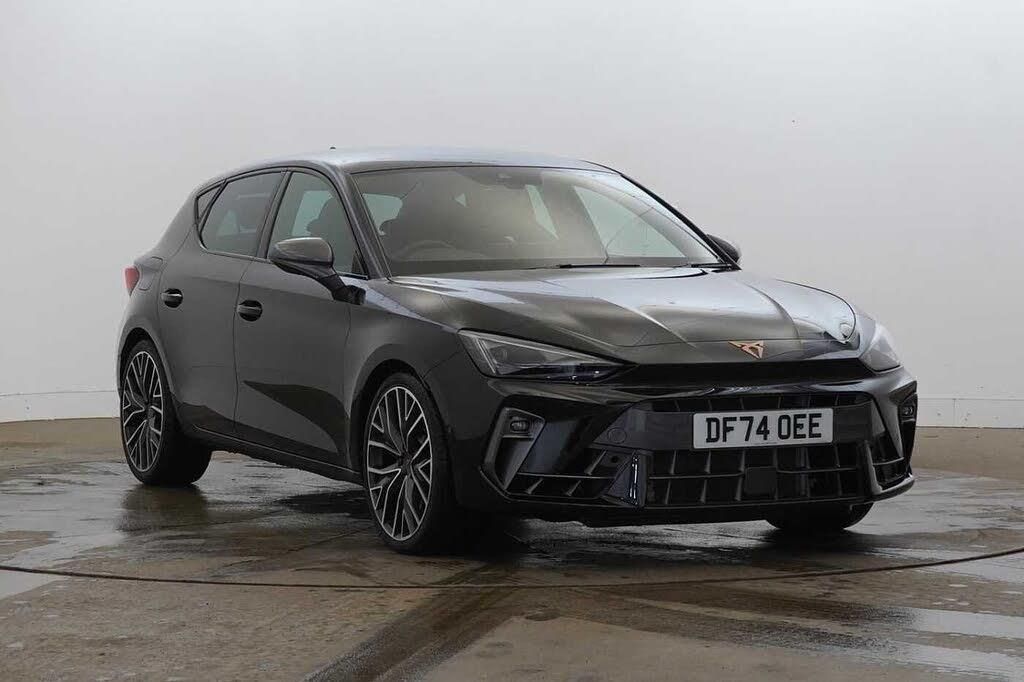 Exterior Features, Metallic paint, Exterior Features, Dark tinted rear windows, Electric front/rear windows, Rain sensing wipers, Rear wash/wipe, Body colour door handles, Body coloured bumpers, Cupra sports bumpers, Rear side wing doors, High beam assist, LED front fog lamps with cornering function, LED rear fog lamp, Matrix LED Headlights with variable light distribution, Matrix Beam and Dynamic headlight range control, Separate daytime running light with automatic headlight control and coming home feature, Third brake light, Welcome light with logo projector in door mirrors, Safety, ABS, Brake control system - ESC and brake booster, Cupra black brake calipers, Electronic parking brake, Hill hold control, Rear disc brakes, Adaptive cruise control with follow-to-stop and speed limiter, CUPRA drive profile selection with (Comfort/Sport/Individual), throttle response and gearshift mode, Dynamic road sign display, Front and rear parking sensors, Front assist with forward collision warning braking reaction to vehicles, pedestrians and cyclists, Intelligent park assist, Rear view camera, Side and exit assist, Auto dimming rear view mirror, Electrically adjustable, heated and folding door mirrors, 3 point seatbelts on all rear seats, Child proof door locks, Driver and front passenger airbags with front passenger airbag de-activation, front side and curtain airbags, Pre-crash front and rear seat belt tensioner, window closure and hazard lights, Seat belt reminder for front and rear seats, Tiredness recognition system, Tyre pressure monitoring system, Audio / Communications, E-call, Full link smartphone integration with Mirror Link, wireless Apple CarPlay and wired Google Android Auto, Auxiliary input socket, Driver Convenience, Lockable tailgate, Start/stop system with regenerative braking, Wireless phone charger, Miscellaneous, Digital cockpit, Four x USB Type C ports (2 in front and 2 in rear), Lane change assist with emergency assist, RPM, trip computer, outside temp gauge, instrument light brightness, low fuel warning light, lights on reminder, gearshift indicator, Service interval indicator, Trim, Chrome and copper interior detailing, 3 seat bench in 2nd row, 5 headrests, 60/40 split rear bench seat with armrest, Electrically adjustable driver seat and lumbar support with memory function + manually adjustable passenger seat, Heated front seats, ISOFIX points in outer rear seats with top tether anchorage points, Single front passenger seat, Interior Features, Three zone climate control, 12v power supply in centre console, Black headlining, Cupra sports pedals, CUPRA Supersports, heated steering wheel with satellite buttons, Folding boot cover, Front centre armrest, Height/reach adjust steering wheel, Illuminated interior front door sills, Leather upholstery, Storage pockets on rear of front seats, Ambient lighting (glovebox, footwell, ambient lighting multicoloured), Front and rear reading lights X 4, Interior wraparound lighting, Sunvisors with illuminated mirror, Packs, Dynamic and comfort pack - Leon Cupra, Media system plus with 12.9" display + navigation pack - Leon Cupra, Security, Anti theft alarm system with interior monitoring in cab, backup horn and towing protection, KESSY Advanced - Keyless start, keyless entry, Locking wheel bolts, Wheels, 19" Mistral machined R black and silver alloy wheel with 91Y tyres, Tool kit