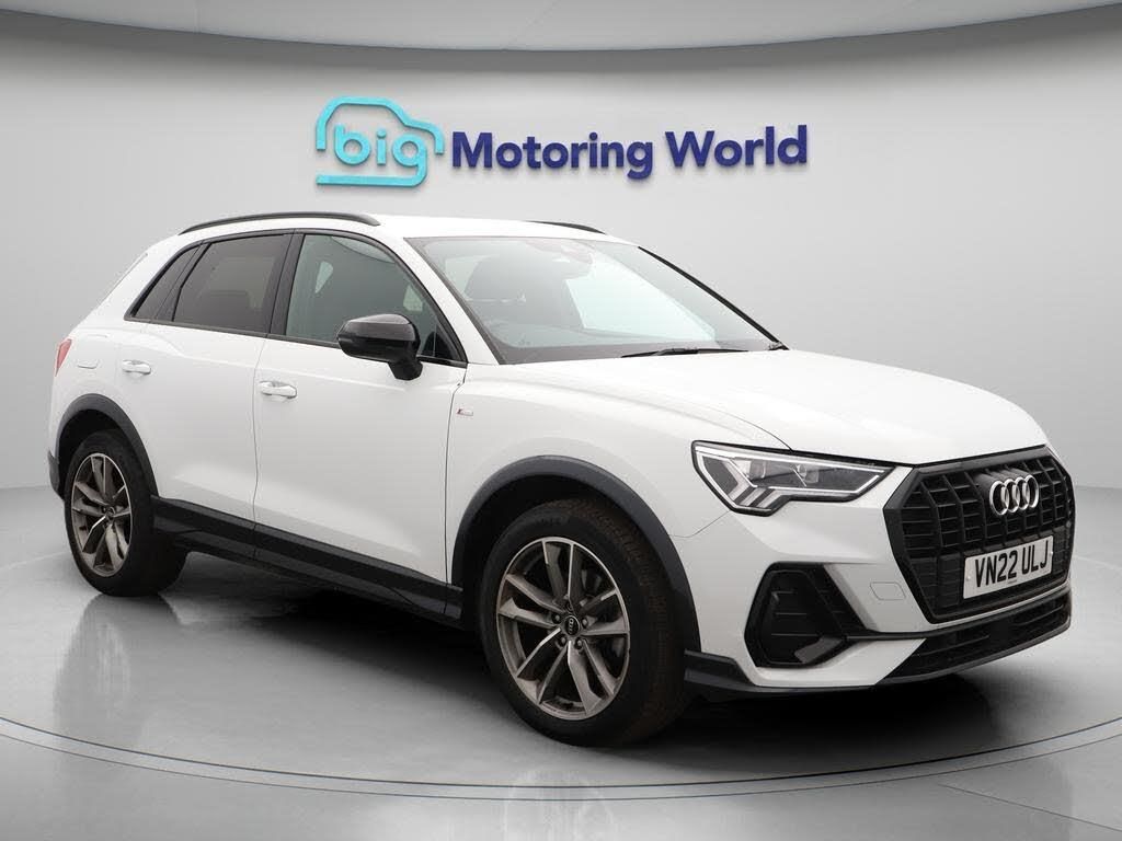 19'' Alloy wheels,Part Leather-Our Audi Q3 is finished in White. Specification includes a range of fantastic features including 19'' Alloy wheels, Part Leather Seats, Apple CarPlay, Lane Assist, S Line Body Styling, Android Auto, Satellite Navigation, Privacy Glass, Bluetooth, Parking Sensors Specification information is supplied by CAPHPI and may vary to the actual car. This data does not form any part of a buying contact. Please check specification prior to purchase in-store. The MOT is valid until April 2026, visit bigmotoringworld.co.uk for more photos, a 360 tour, service history and a free HPI report.Were BIG on peace of mind and this White Audi Q3 has completed our comprehensive 200 point inspection and passed all checks. Its ready for you to drive away with immediate collection in-store. We include a 90-day warranty as standard plus an option to extend for up to 3 years.Reserve this car exclusively for you, safely and securely at bigmotoringworld.co.uk, with a fully refundable £99 deposit. Test drive before you buy, with no commitment, no hassle and a completely haggle free experience. Still searching and want to see thousands more cars? We are BIG on choice with over 8000 cars to choose from.Visit our award winning web site bigmotoringworld.co.uk.Were Big Motoring World and were BIG on what matters to you.