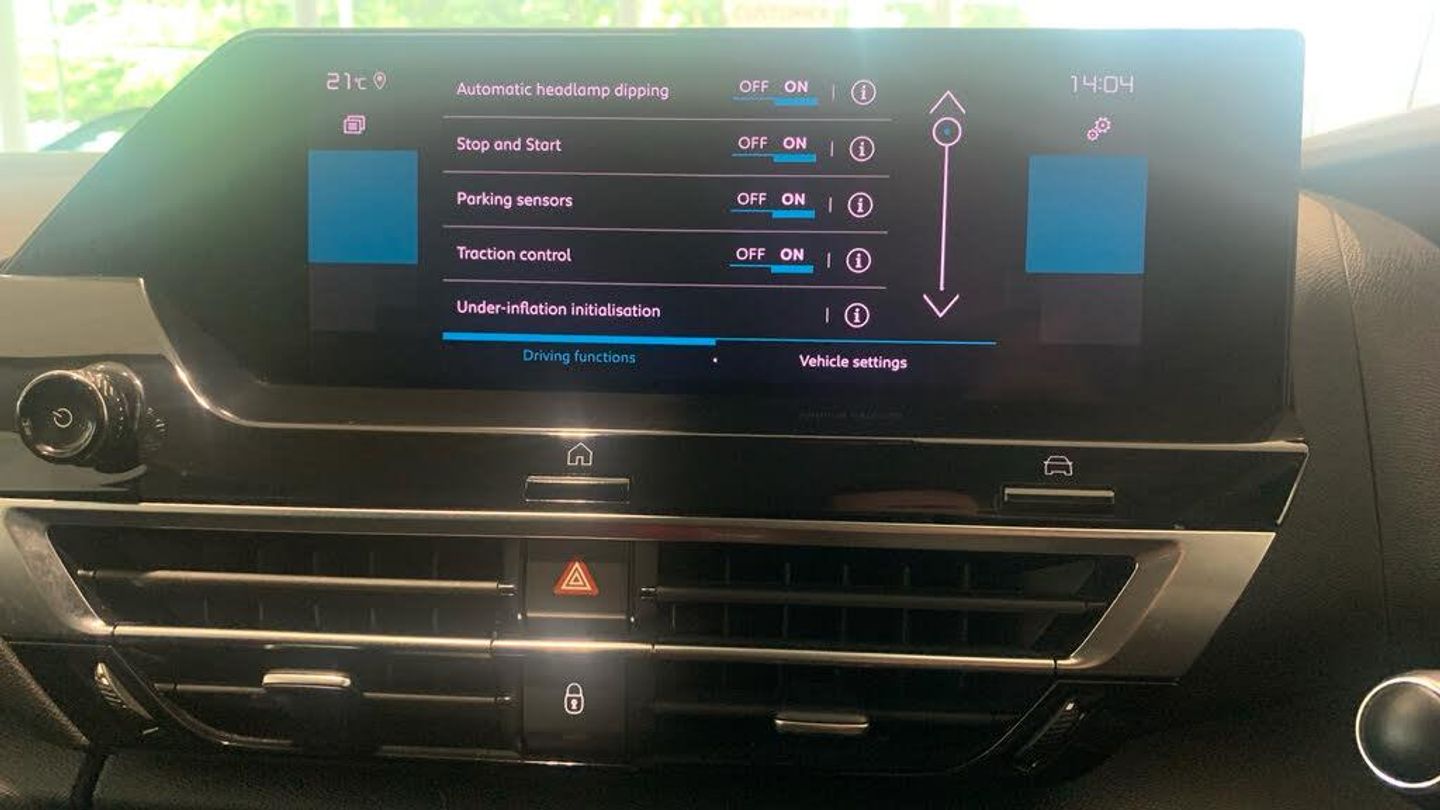 10in High Resolution Touchscreen User Interface, 5.5in Backlit Full-TFT Drivers Instrument Cluster, Citroen Connect Box with Emergency and Assistance System, Citroen Connect Nav, Row 1 - 12V Power Outlet and 1x USB Type-C Socket for Charging and Data Connection and 1x USB Type-A Socket for Charging, Row 2 - 1x USB Type-A Socket for Charging, Active Blind Spot Detection, Cruise Control with Speed Limiter, Head-Up Display, Parking Aid - Front and Rear and Lateral, Top Rear Vision Reversing Camera, Tyre Under Inflation Indicator, 18in Alloy Wheels - Aeroblade Diamond Cut Bi-Tone, Body Colour Door Handles, Bumpers - Body Coloured, Compressor with Puncture Repair Kit, Electric Windows - Front and Rear, Electrically Heated and Folding Door Mirrors with Courtesy Lighting, Gloss Black Rear Skirt, Matt Black A-Pillar and Gloss Black B-Pillar, Perla Nera Black Painted External Rear View Mirror and Black Exterior Door Handles, Side Windows with Chrome Detail - Rear Window Dark Tinted, Textured Grey Colour Pack, Automatic Headlight Activation with High Beam Assist, LED Daytime Running Lights in V Signature, LED Front Fog Lights with Static Cornering Function, LED Headlights, Welcome and Goodbye Lighting, 2 Position Boot Floor, Automatic Dual Zone Air Conditioning, Boot Light, City Smart Pad Support - Universal Tablet Cradle, Dashboard Tray in Front Cabin, Deluxe Leather Steering Wheel with Two Command Blocks, Driver and Passenger Sunvisor with Illuminated Vanity Mirror, Electrochrome Interior Rear View Mirror with Automatic Day-Night Switching, Front and Rear Interior Lighting - LED, Height Adjustable Drivers Seat with Adjustable Lumbar Support, Height Adjustable Passengers Seat, Height and Reach Adjustable Steering Wheel, High Level Acoustic Insulation Pack, Map Pockets on Front Seat Backs, Rain Sensing Automatic Front Windscreen Wipers, Raised Central Console with Armrest with Two Cupholders, Seats Rear - Split Folding, Electric Power Steering, Suspension with Progressive Hydraulic Cushions - PHC, ABS - Anti-Lock Braking System, Anti-Theft Alarm - Volumetric Protection, Driver and Front Passenger Airbags, Electric Parking Brake, ESP - Electronic Stability Programme, Front Seat Belt Pretensioners, Hill Start Assist, Keyless Entry and Start, Manual Child Locks, Manual Deactivation of Front Passenger Airbag, Post Collision Safety Brake, Remote Central Locking with Deadlocking, Row 1 and 2 Curtain Airbags, Row 1 Side Thorax Airbags, Safety Pack Plus, Seatbelt Unfastened on the Move Warning