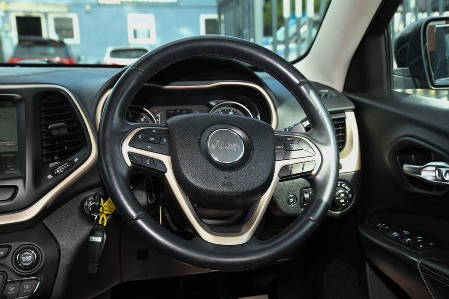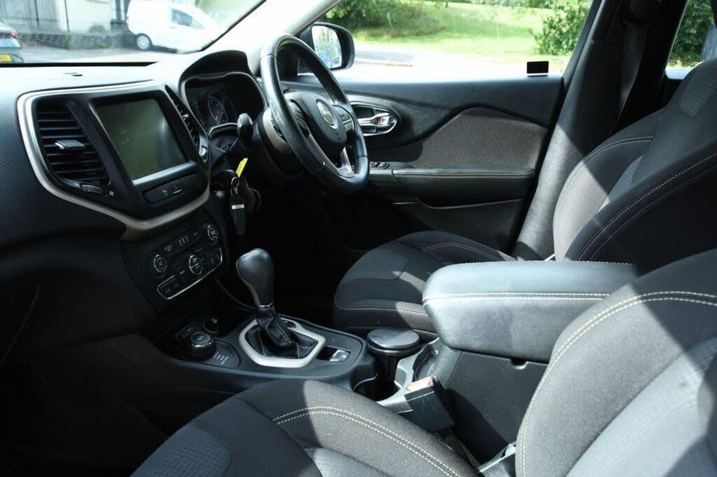 12V Power Socket, 12V Power Socket - Luggage Compartment, 17in Alloy Wheels - Aluminium, 9 Amplified Speakers with Subwoofer, ABS - Anti-Lock Brakes, Air Conditioning - Dual Zone with Automatic Temperature Control, Airbags - Drivers, Airbags - Drivers Knee, Airbags - Front Curtain, Airbags - Front Side, Airbags - Passenger, Airbags - Rear Curtain, Alarm - Thatcham Category 1, Ambient LED Interior Lighting, Armrest, Armrest - Rear with Cupholders, Audio Jack Input, Auto Dimming Rear View Mirror, Body Coloured Door Handles, Body Coloured Shark Fin Antenna, CD Player - Remote Single Disc in Centre Armrest, Child Seat Anchor System, Chrome Grille, Chrome Window Surrounds, Comfort and Convenience Pack, Conventional Differential Rear Axle, Cruise Control, Cupholders - Rear, DAB - Digital Audio Broadcasting, Daytime Running Lights - LED, Door Mirrors - Body Coloured, Door Mirrors - Electric and Heated, EARS - Emergency Accident Response System, ERM - Electronic Roll Mitigation, ESC - Electronic Stability Control, Electric Park Brake, Electric Windows - Front One Touch, Electronic Vehicle Information Centre, Exhaust Tailpipes - Chrome Rectangular Dual, Floor Mats - Front and Rear, Front Fog Lights with Cornering Lights, Front and Rear Climate Control Outlets, Gear Knob - Leather Wrapped, Headlights - Automatic On, Headlights - Black Bezels, Hill Start Assist, Humidity Sensor, Illuminated Front Cupholders, Instrument Cluster - 3.5in TFT Colour Display, Jeep Active Drive, Jeep Rack Off Road Kit - inc. Gloves and Tow Straps, Leather Wrapped Steering Wheel, Luggage Compartment - Cover, Luggage Compartment - Light, Luggage Compartment - Management System, Luggage Compartment - Storage Net, Luggage Compartment - Tie Down Loops, Map-Dome Reading Lights - Front and Rear, Microphone in Rear View Mirror, ParkSense Rear Park Assist System, Passenger In-Seat Cushion Storage, Pollen Filter, Power Locking Fuel Cap Door, Power Steering - Electro-Hydraulic, Power Tailgate, Rain Sensitive Windscreen Wipers, Rear 60-40 Split Folding, Rear Lights - LED, Remote Central Locking, Remote SD Card Slot, Roof Rails - Chrome, Seats - Drivers 4-Way Electric Lumbar Adjustment, Seats - Drivers 6-Way Adjustment, Seats - Drivers 8-Way Electric Adjustment, Seats - Front Passenger Fold Flat, Seats - Passenger 6-Way Adjustment, Selec-Terrain System, Smokers Pack, Speed Sensitive Power Locks, Steering Column - Electronic Shaft Lock, Steering Column - Tilt and Telescopic, Steering Wheel - Mounted Audio Controls, Subwoofer, Sun Visors with Illuminated Vanity Mirrors, Traction Control, Trailer Sway Damping - Control, Tyre Pressure Monitoring - Warning Display, Tyre Service Kit, UConnect 8.4in SmartTouch Navigation System, UConnect 8.4in SmartTouch System, UConnect Bluetooth, UConnect Phone with Voice Command, USB Connectivity, Voice Command - Navigation, Brilliant Black, Cloth - Morocco Black