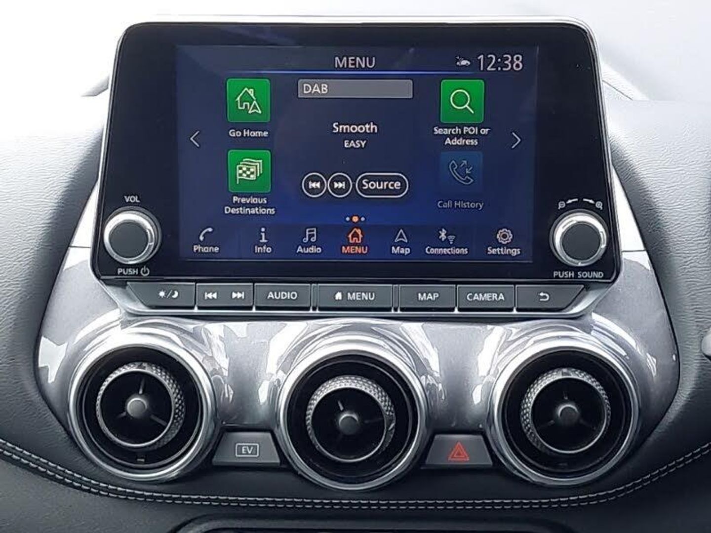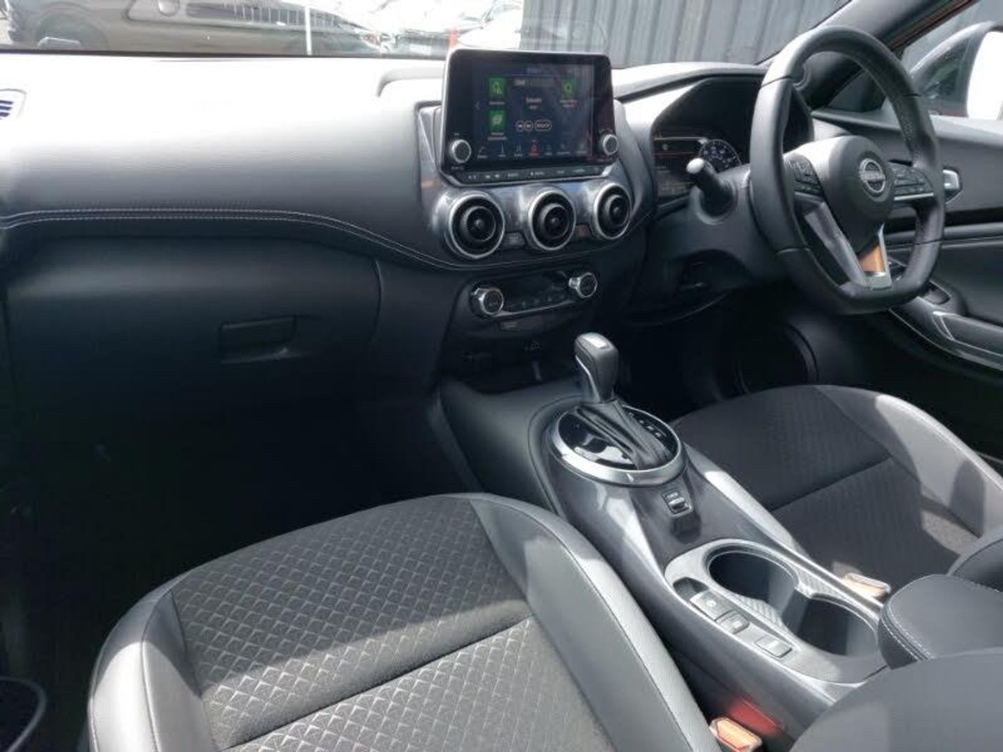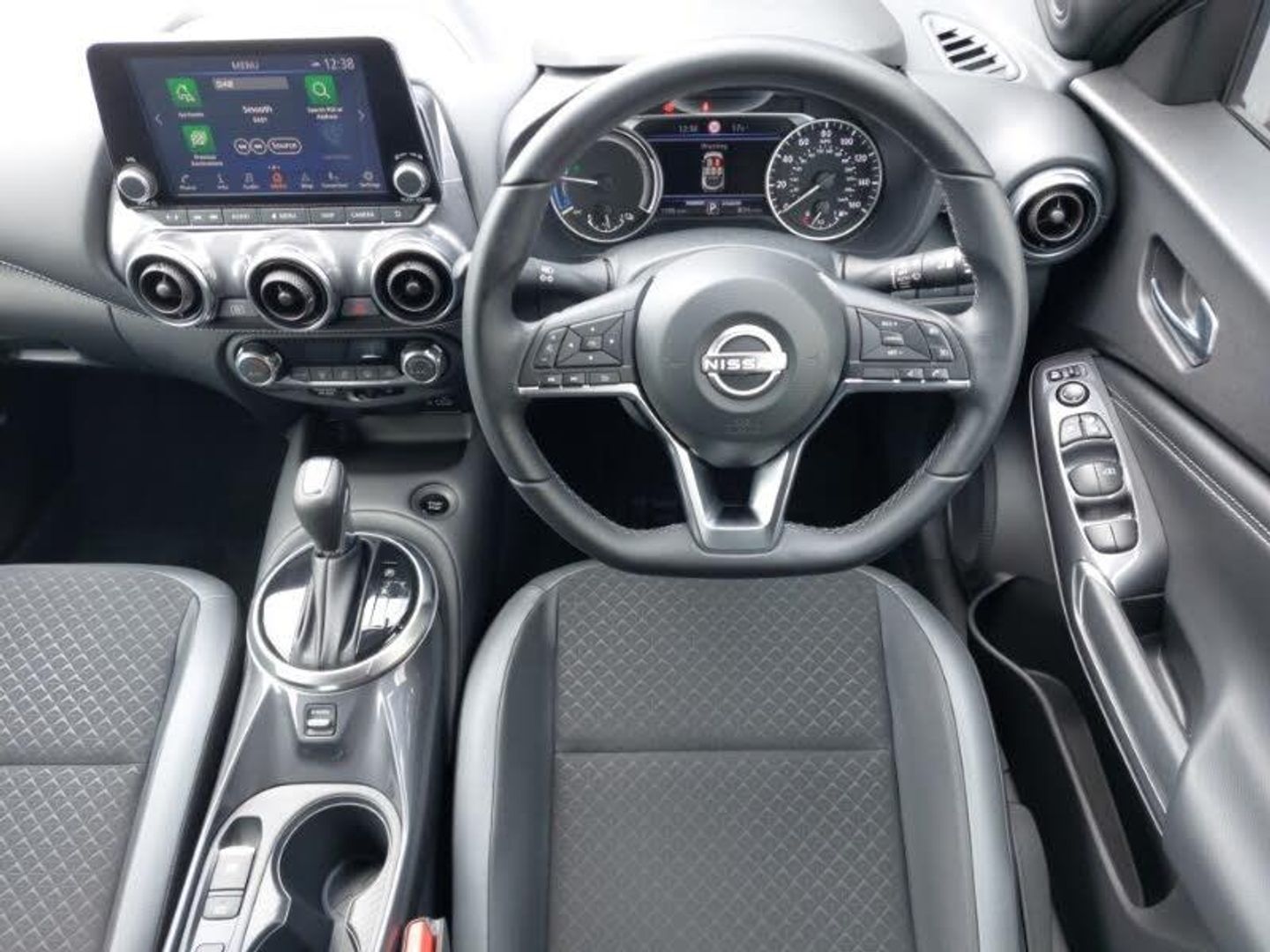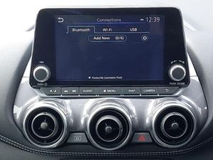 Nissan connect 8" touch screen entertainment system, Apple CarPlay and Google Android auto, Drive modes select (Eco, normal and sport), Multifunction steering wheel, Cloth upholstery with black and metallic grey syntech leather inserts, Monoform sporty seats, EV mode selector, Front parking sensor, Rear parking sensor, LED daytime running lights, Rain sensor windscreen wipers, ABS with EBD and brake assist, Hill start assist