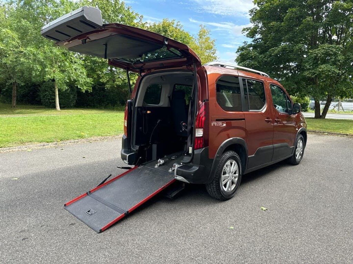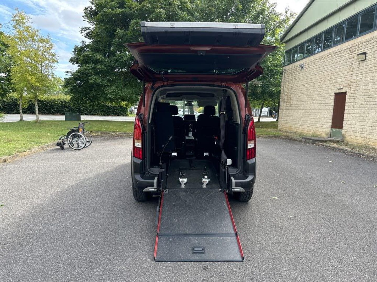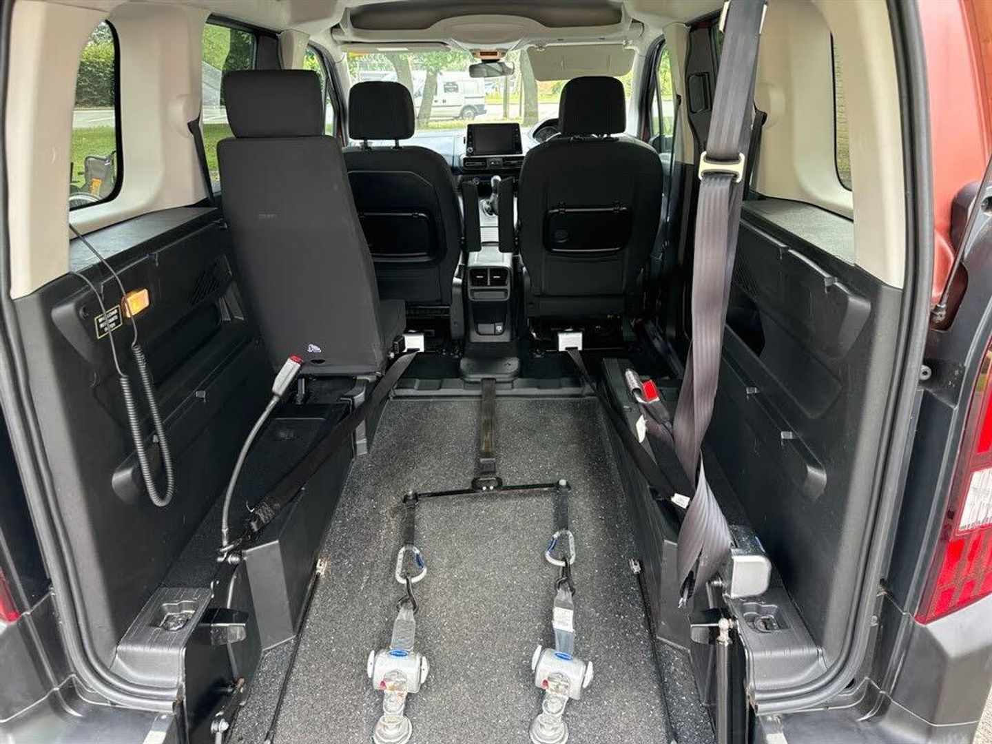 This is a wheelchair accessible vehicle (WAV) which carries 1 wheelchair passenger travelling in their wheelchair, together with their driver, front seat passenger and 1 additional passenger sitting alongside the wheelchair position. Access is via a short, lightweight ramp. This model also has a powered winch to assist with manual wheelchairs. The wheelchair is restrained in the vehicle with a fully-tested wheelchair securing system and the wheelchair passenger has their own tested seatbelt. The Peugeot Rifter has an 8-inch touchscreen with Apple CarPlay and Android Auto. All our WAVs are fully type-approved and manufactured in the UK by approved WAV conversion companies. Each vehicle comes fully prepared from Fleximobility with an MOT, thorough service and new cambelt (if due within 8 months). Not all Peugeot Rifter WAVs are the same - different conversions have different features and dimensions. Call us for further help with this, including making sure your wheelchair user has enough headroom. See and try this vehicle for yourself either by appointment at our premises in Oxfordshire or by booking a free home demonstration. Part-exchange offered on standard cars and other WAVs. Finance is available and payment by bank transfer is accepted.
