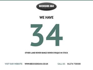 AA Inspected for Your Peace of Mind Take advantage of our low-rate, no-deposit finance options. We're open 7 days a week, and this vehicle must be seen to be fully appreciated. It's in excellent condition, boasts a fantastic specification, and offers great value. Features include: Privacy Glass Black Pack Black Leather Sat Nav 20" Black Alloys Rear Camera And much more! Over 30 Evoques in stock Please call us for more details. We offer competitive part-exchange prices. This vehicle comes AA Vehicle Inspected, with a comprehensive 128-point report ensuring its roadworthiness. It also includes Gold Plus Warranty for added peace of mind. As an approved AA dealer, we offer: 128 Point AA Inspection 12 months free AA Breakdown Cover AA Vehicle Check Approved Finance Options We are a family-run business with over 50 years of experience in the motor trade. Nationwide delivery is available, and we welcome exporters. We accept debit and credit cards. We are authorised and regulated by the Financial Conduct Authority. Visit our website for up to 40 detailed pictures per vehicle: www.beckside4x4.co.uk We keep around 100 vehicles in stock and are proud to be Yorkshire's largest 4x4 dealer. Most vehicles come with: AA Inspection Report 12 months MOT Servicing Valeted HPI clear We offer PX, finance, and warranties on most cars. Drive-away insurance is also available (subject to status). For more information, call our sales team at 01274 738500, or reach Richard via WhatsApp or text at 07796612999. For Sat Nav, use postcode BD2 1QN. Due to our large stock, not all vehicles are stored on-site, so please call ahead to avoid any disappointment..