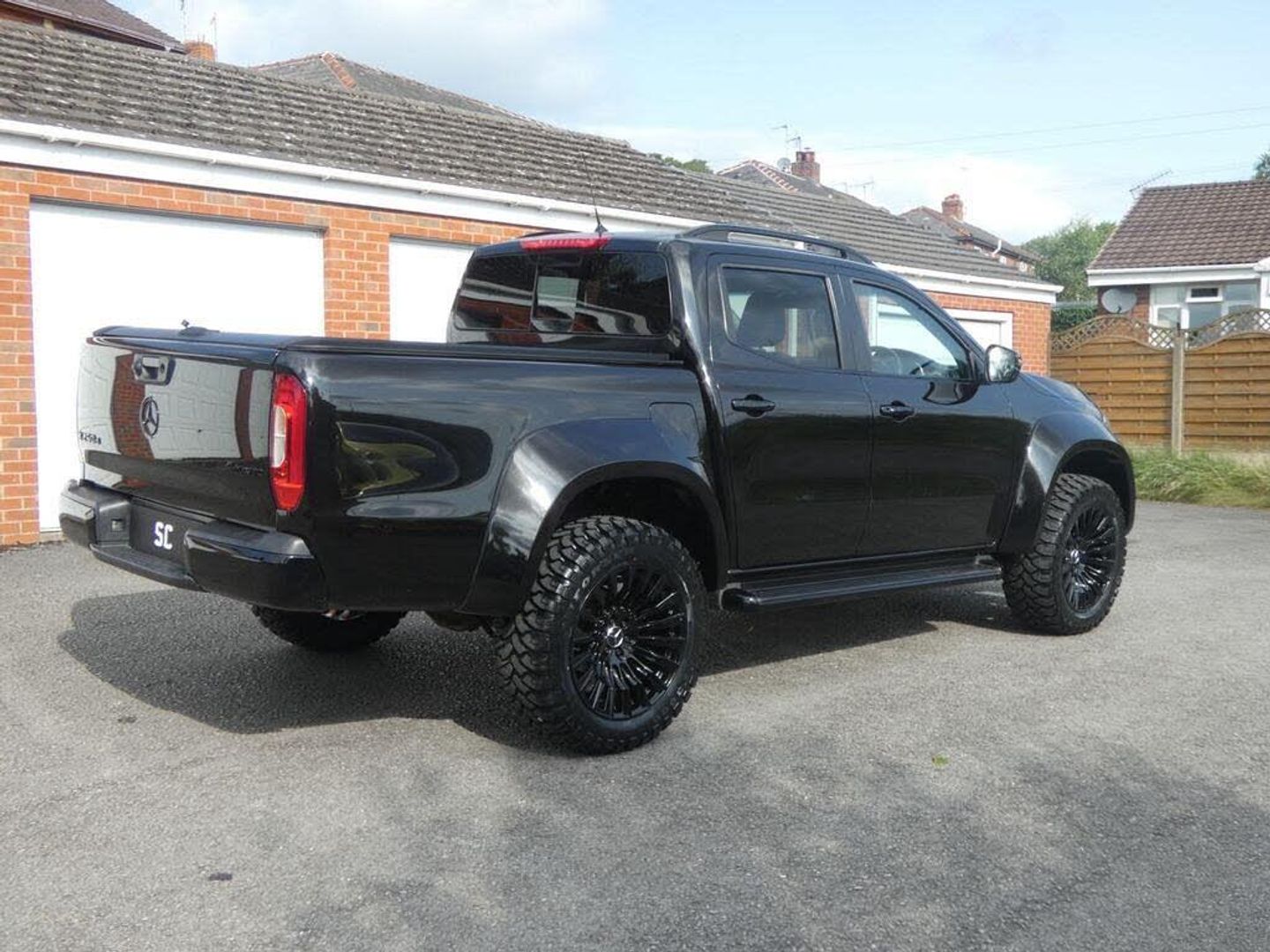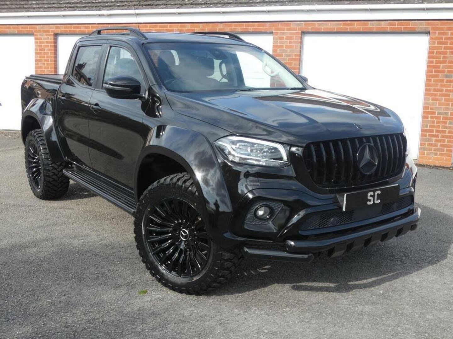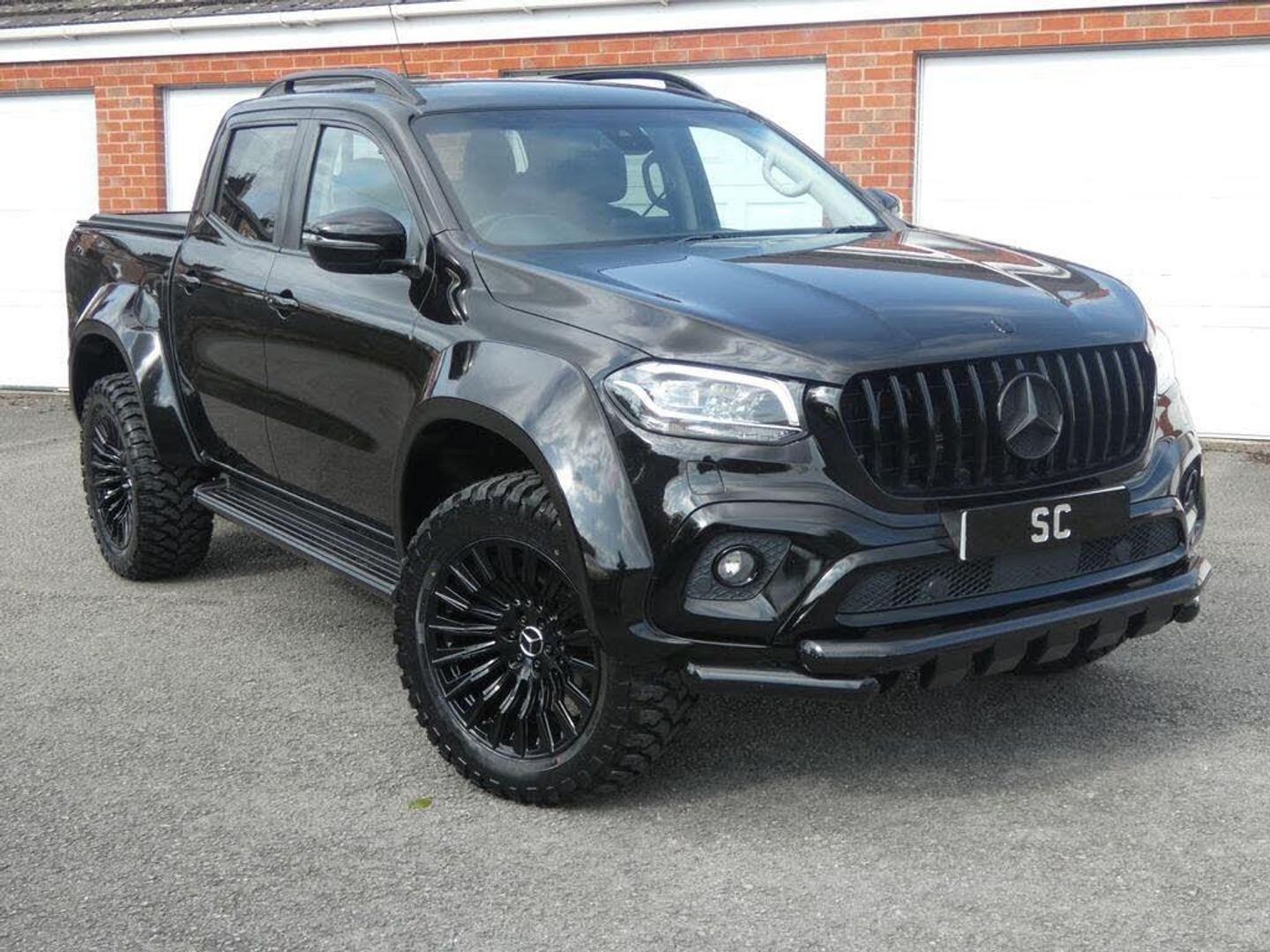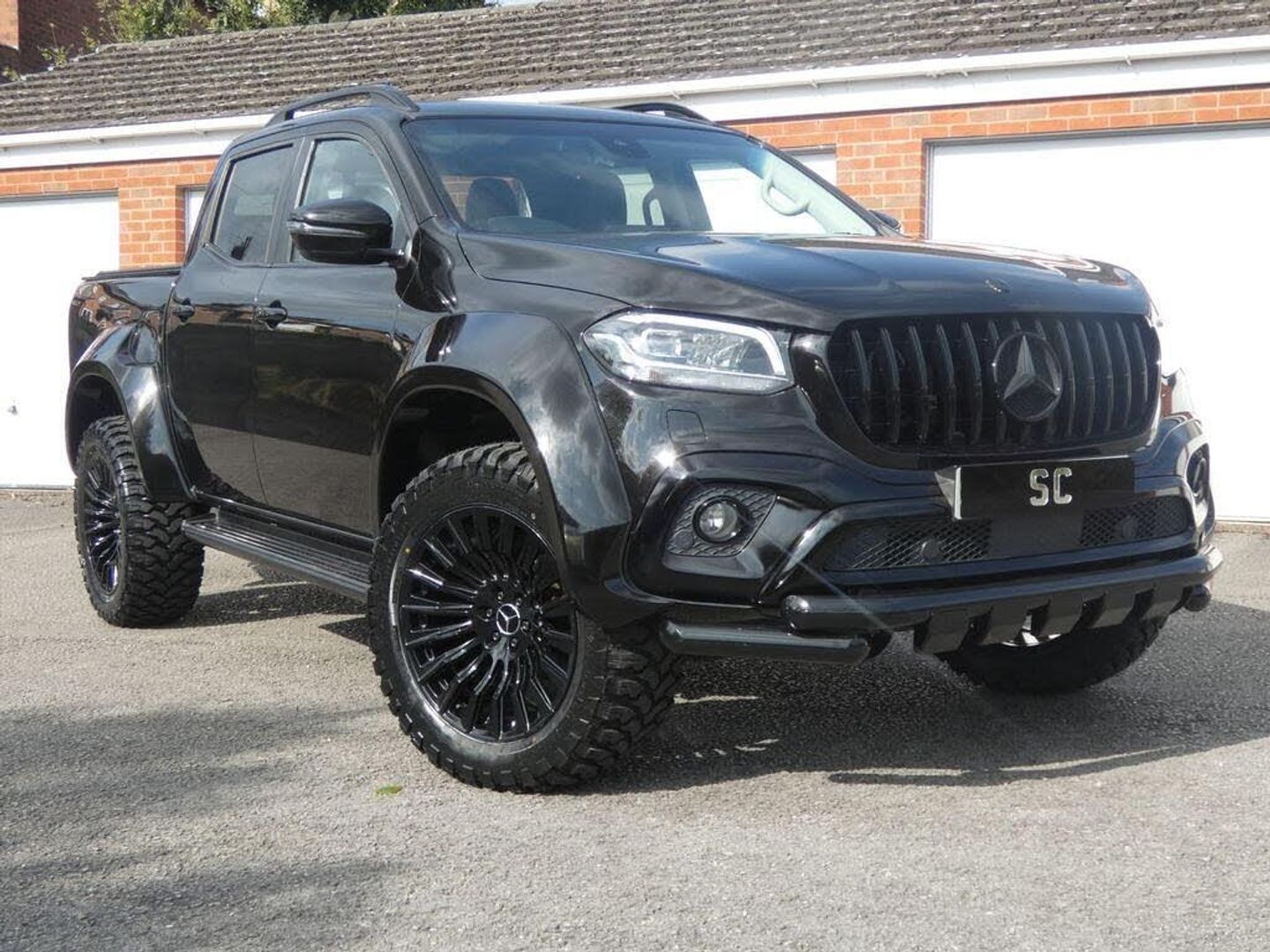 finished in black, fully colour coded wide arch body kit, 20" gloss black denali alloys, all terrain tyres, black pack, Pan American AMG Grill, rear shutter, SAT NAV, DAB, side steps, reverse camera, colour coded rear roll bar, rear privacy glass, stunning, must be seen, no vat a unique one off pick up,