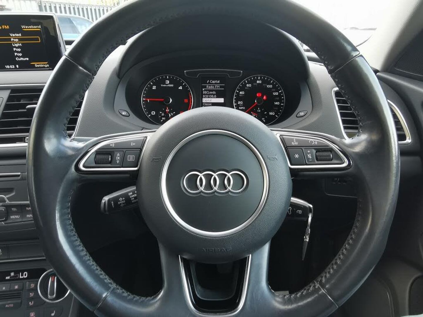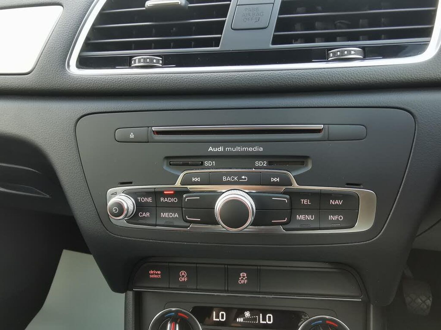 6.5'' colour display screen,Audi drive select,Cruise Control,Electro-mechanical PAS,Low washer fluid indicator,MMI - Multi Media Interface control system,On board computer,Service interval indicator,Voice control system,Diesel particulate filter,Dynamic suspension,Audi music interface,DAB digital radio module,Acoustic windscreen,Aluminium window surround,Auto dimming rear view mirror,Body colour door mirrors,Body coloured bumpers,Coming home function,Door mirror integrated indicators,Front and rear electric windows,Heated windscreen washer jets,LED daytime running lights,Light and rain sensor for auto activation of lights and windscreen wipers,Loading sill protector in stainless steel,Rear wiper,Sports bodystyling,Sunband for windscreen,Xenon Plus headlights+washers+auto range adjust,12V socket in rear centre console,3 spoke multi-function Q design steering wheel,Aluminium door sill trims,Cloth headlining,Dual zone climate control,Electric front lumbar adjustment,Front and rear headres