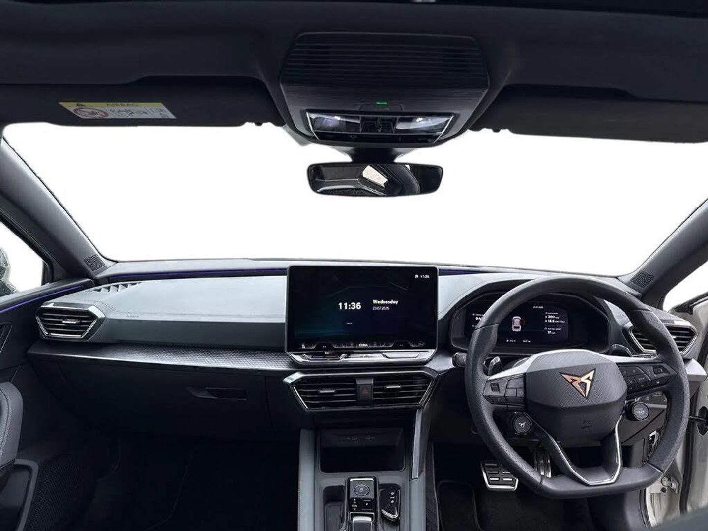 Adaptive cruise control with follow-to-stop and speed limiter,CUPRA mode drive profile selection with throttle response and gearshift mode,Digital cockpit,Driver alert system with driver monitoring,Dynamic road sign display,E-call,Four x USB Type C ports (2 in front and 2 in rear),Front and rear parking sensors,Front assist with forward collision warning braking reaction to vehicles, pedestrians and cyclists,Front cross traffic assist,Full link smartphone integration with Mirror Link, wireless Apple CarPlay and wired Google Android Auto,Intelligent park assist,Lane change assist with emergency assist,Lockable tailgate,Rear view camera,RPM, trip computer, outside temp gauge, instrument light brightness, low fuel warning light, lights on reminder, gearshift indicator,Service interval indicator,Side and exit assist,Start/stop system with regenerative braking,Virtual pedal with electric tailgate,Wireless phone charger,10 amp mode 2 charging cable,16 amp mode 3 charging cable,Auxiliary input socket,Immersive by Sennheiser TM - 10 speakers, 1 central speaker, 1 subwoofer,Auto dimming rear view mirror,Black roof spoiler,Body colour door handles,Body coloured bumpers,Cupra matrix LED ultra headlight with variable light distribution, high definition LED w/signature w/ceremony,Cupra side skirts painted in obsidian black,Cupra sports bumpers,Dark tinted rear windows,Electric front/rear windows,Electrically adjustable, heated and folding door mirrors,Gloss black roof rails,High beam assist,High-resolution matrix beam plus digital projection,LED front fog lamps with cornering function,LED rear fog lamp,Rain sensing wipers,Rear diffuser with copper simulated exhaust pipes,Rear side wing doors,Rear wash/wipe,Separate daytime running light with automatic headlight control and coming home feature,Third brake light,Welcome light with logo projector in door mirrors,12v power supply in centre console,3 seat bench in 2nd row,5 headrests,60/40 split rear bench seat with armrest,Ambient lighting (glovebox, footwell, ambient lighting multicoloured),Black headlining,Cupra sports pedals,CUPRA Supersports, heated steering wheel with satellite buttons,Electrically adjustable driver seat and lumbar support with memory function + manually adjustable passenger seat,Front and rear reading lights X 4,Front centre armrest,Heated front seats,Height/reach adjust steering wheel,Illuminated interior front door sills,Interior wraparound lighting,ISOFIX points in outer rear seats with top tether anchorage points,Single front passenger seat,Sliding boot cover,Sunvisors with illuminated mirror,Textile cloth upholstery,Three zone climate control,Dynamic and comfort pack - Leon Cupra,Media system plus with 12.9" display + navigation pack - Leon Cupra,3 point seatbelts on all rear seats,ABS,Brake control system - ESC and brake booster,Brembo performance brake calipers,Child proof door locks,Disc brakes in front,Driver and front passenger airbags with front passenger airbag de-activation, front side and curtain airbags,Electronic parking brake,Hill hold control,Knee airbags,Pre-crash front and rear seat belt tensioner, window closure and hazard lights,Rear disc brakes,Seat belt reminder for front and rear seats,Tiredness recognition system,Tyre pressure monitoring system,Anti theft alarm system with interior monitoring in cab, backup horn and towing protection,KESSY Advanced - Keyless start, keyless entry,Locking wheel bolts,Dark chrome interior detailing,19" Hailstorm forged machined R black and copper alloy wheel with 91Y tyres,Breakdown kit,Tool kit,Cup Bucket Seats - Textile Turbine - Sides in PVC with Embroided CUPRA Logo in Headrest - Enceladus Grey,Panoramic Sunroof,Taiga Grey