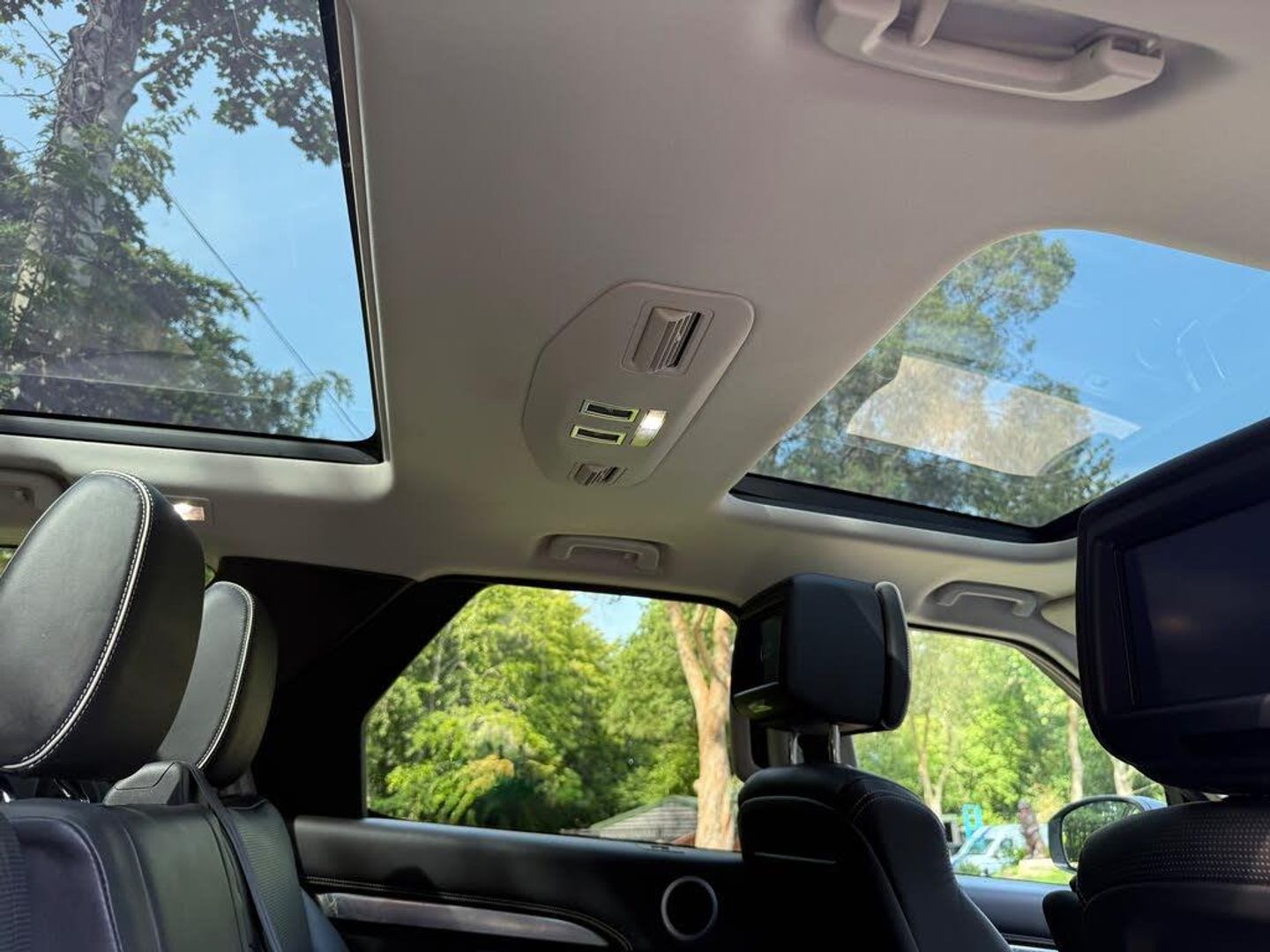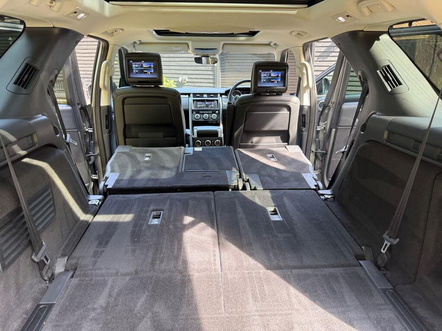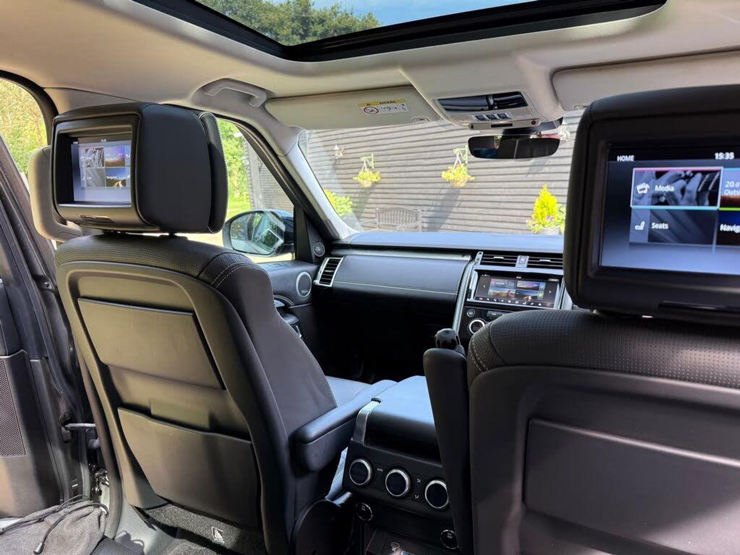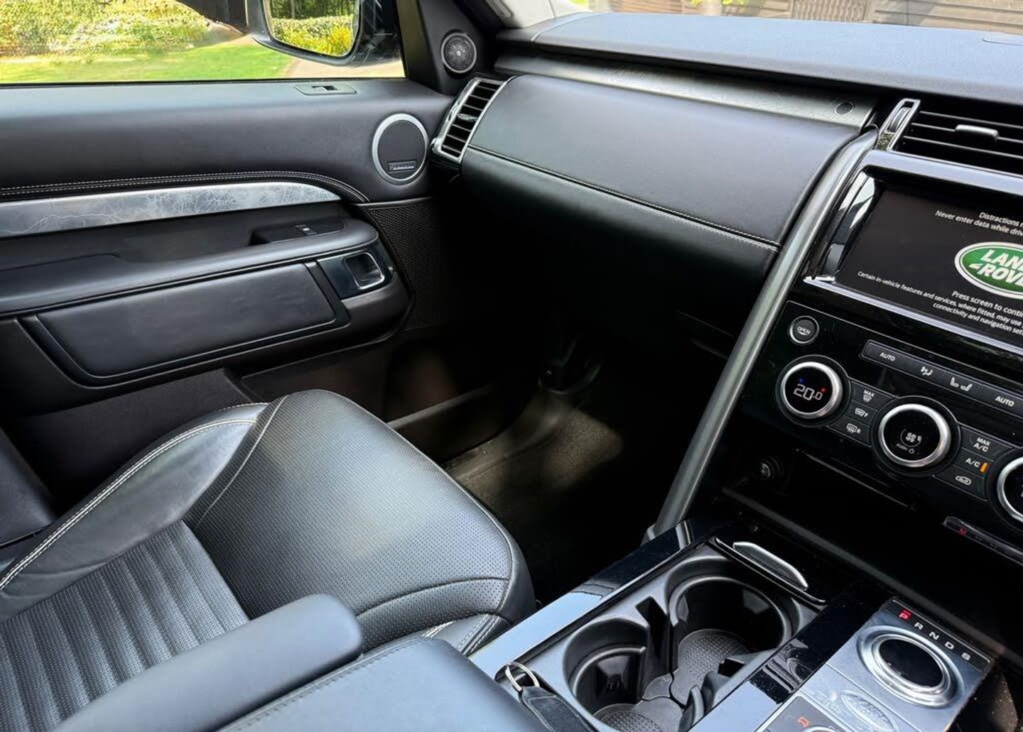 360 parking aid with front and rear sensors and visual display,Blind spot monitor and reverse traffic detection,Bluetooth telephone connectivity,Cruise Control,Driver condition monitor,Front camera system,Gesture tailgate,InControl Touch navigation pro,Lane departure warning system,Lane keep assist,Park assist - Parallel, perpendicular and parking exit,PAS,Service interval indicator,Speed limiter,Surround camera system,Traffic sign recognition,Trip Computer,All terrain progress control,Electronic air suspension,Terrain Response 2 Auto,2 USB charging points in 2nd row,2 USB charging points in 3rd row,Audio remote control,DAB Digital radio,InControl app,InControl protect,Meridian surround sound system with 16 speakers + subwoofer, radio/CD/DVD and voice recognition,Rear seat entertainment,Steering wheel mounted controls,USB/iPod connection,Auto dimming door mirrors,Auto dimming rear view mirror,Automatic headlamp levelling,Automatic headlights with follow me home lights,Black fender ven