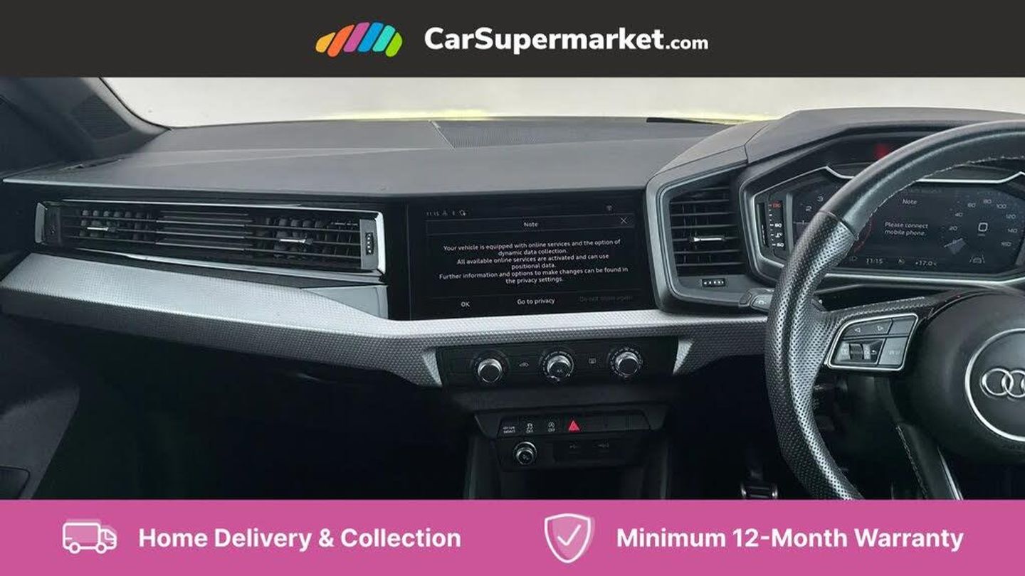 Apple CarPlay/Android Auto, Bluetooth, Traffic Sign Recognition, Lane Departure Warning, Digital Radio, Privacy Glass, Parking Sensors;With only one previous owner and low mileage of just 7525 miles, this 2024 Audi A1 TFSI S line is a superb example of a well-cared-for vehicle. The A1, with its S line trim, is powered by an efficient 1.0L petrol engine and meets the Euro 6 emission standards. For added peace of mind, the MOT is valid until March 2027, and a vehicle history check confirms that it is clear. Convenience is enhanced with features such as Remote Control Key with Safelock, including Keyless Entry, a Bluetooth Interface, and Manual Air Conditioning.