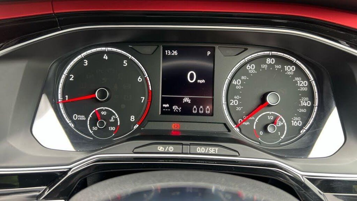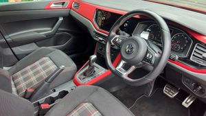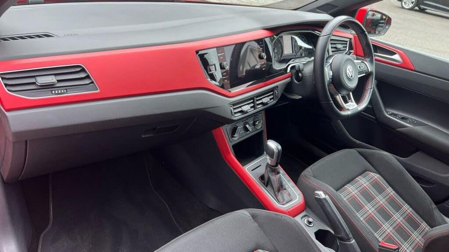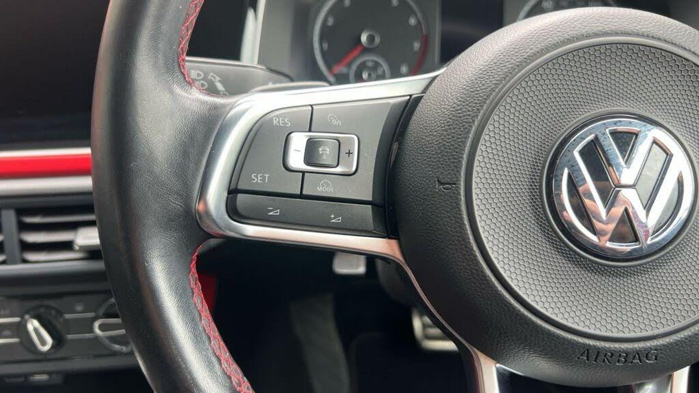 Adaptive Cruise Control, Jacara Cloth - Titan Black-Red with Velvet Red Dash Pad, Flash Red, 17in Alloy Wheels - Parker, 3 Rear Three-Point Seat Belts with Tensioners on Outer Seats, ABS - Anti-Lock Braking System with HBA - Hydraulic Brake Assist, Air Conditioning - Manual, Alarm with Interior Protection with Deactivation via Infotainment System, Ambient Lighting in Front Footwell and Light Stripes Below Trim in Front Doors and Dashboard, Automatic Post-Collision Braking System, Bag Hooks in the Luggage Compartment x2, Black Gloss Instrument Surrounds, Black Roofling and Sun Visors, Body Coloured Bumpers and Side Sills, Body Coloured Door Handles and Mirrors with Integrated Indicators, Brake Calipers - Red, Car-Net App Connect, Carpet Mats - Front and Rear with Red Stitching, Centre Console with Open Storage Compartment, Chrome Effect Handbrake Grip Button, Chrome Exhaust Twin Tailpipe, Chrome Plated Air Vent Surrounds, Chrome Plated Electric Mirror Adjustment Switch Surround, Chrome Plated Electric Window Button Surrounds, Composition Media System, Cup Holders - Front x2 and 12v Socket with Cover, Curtain Airbag System for Front and Rear Passengers including Side Airbags in the Front, Decorative Inserts - Velvet Red, Door Mirrors - Electrically Adjustable and Heated, Door Sill Protectors - GTI Logo, Driver Alert System, Driver Profile Selection, Drivers and Front Passengers Airbags with Front Passenger Airbag Deactivation Switch, Drivers and Front Passengers Safety Optimised Head Restraints, Drivers and Front Passengers Sun Visors with Illuminated Vanity Mirrors, Dust and Pollen Filter, ESC - Electronic Stability Control, Electric Windows - Front and Rear, Electronic Engine Immobiliser, Extended Sill Strips - Flared in Black, Front Assist - Radar Sensor Controlled Distance Monitoring System - City Emergency Braking System and Predictive Pedestrian Protection, Front Fog Lights with Static Cornering Function, Front Seat Back Storage Pockets, Front Sports Seats with Height and Lumbar Adjustment, Front Windscreen Washers and Wipers with 4 Speeds including Interval Delay, GTI Name Plate, GTI Styling Pack, Gear Lever Gaiter in Black Trim Surround, Glovebox, Halogen Clear Headlights Range Adjustable with Separate Daytime Running Lights including Automatic Headlights On, Heated Rear Windscreen - Automatically Switches Off, Height and Reach Adjustable Steering Wheel, Height-Adjustable Front Three-Point Seat Belts with Tensioners, High Level 3rd Brake Light, Hill Hold Control, Honeycomb Radiator Grille with Red Stripe, ISOFIX Child Seat Preparation, Instrument Lighting - White Adjustable Panel Illumination, Interior Lighting with Delayed Switch Off, LED Darkened Rear Light Clusters, Leather-Wrapped Multi-Function Sports Steering Wheel with Paddle Shift, License Plate with LED Illumination, Lights on Warning Buzzer, Luggage Compartment - Variable Load Floor, Luggage Compartment Cover - Removable, Luggage Compartment Light, Manual Coming-Automatic Leaving Home Lighting Function, Multifunction Computer Plus, Parking Sensors - Front and Rear, Power Assisted Steering - Speed Sensitive, Premium USB Cable, Rain Sensor and Automatic Dimming Rear-View Mirror, Reading Lights - Front x2 and Rear x2, Rear Spoiler in Gloss Black, Rear Windscreen Washer and Wiper with Interval Delay - Reverse Activated, Remote Central Locking with 2 Remote Folding Keys, Seats - Front Lumbar Support, Seats - Height Adjustment - Front, Speedo and Rev Counter - Electronic Odometer - Trip - Service Interval Display - Digital Clock and Fuel Gauge, Split Folding Rear Backrests 60-40, Stainless Steel Pedals, Steering Wheel - Paddle Shift, Storage Compartment Under Front Seats, Storage Compartment in Front and Rear Doors, Suspension - Sports - Lowered by Approx 15mm, Three Rear Head Restraints, Tyre Mobility Kit and Compressor, Tyre Pressure Monitoring System, Unique GTI Badging, Warning Buzzer and Light for Front and Rear Seat Belts if Unfastened, We Connect Preparation, XDS Electronic Differential Lock for Improved Traction and Handling
