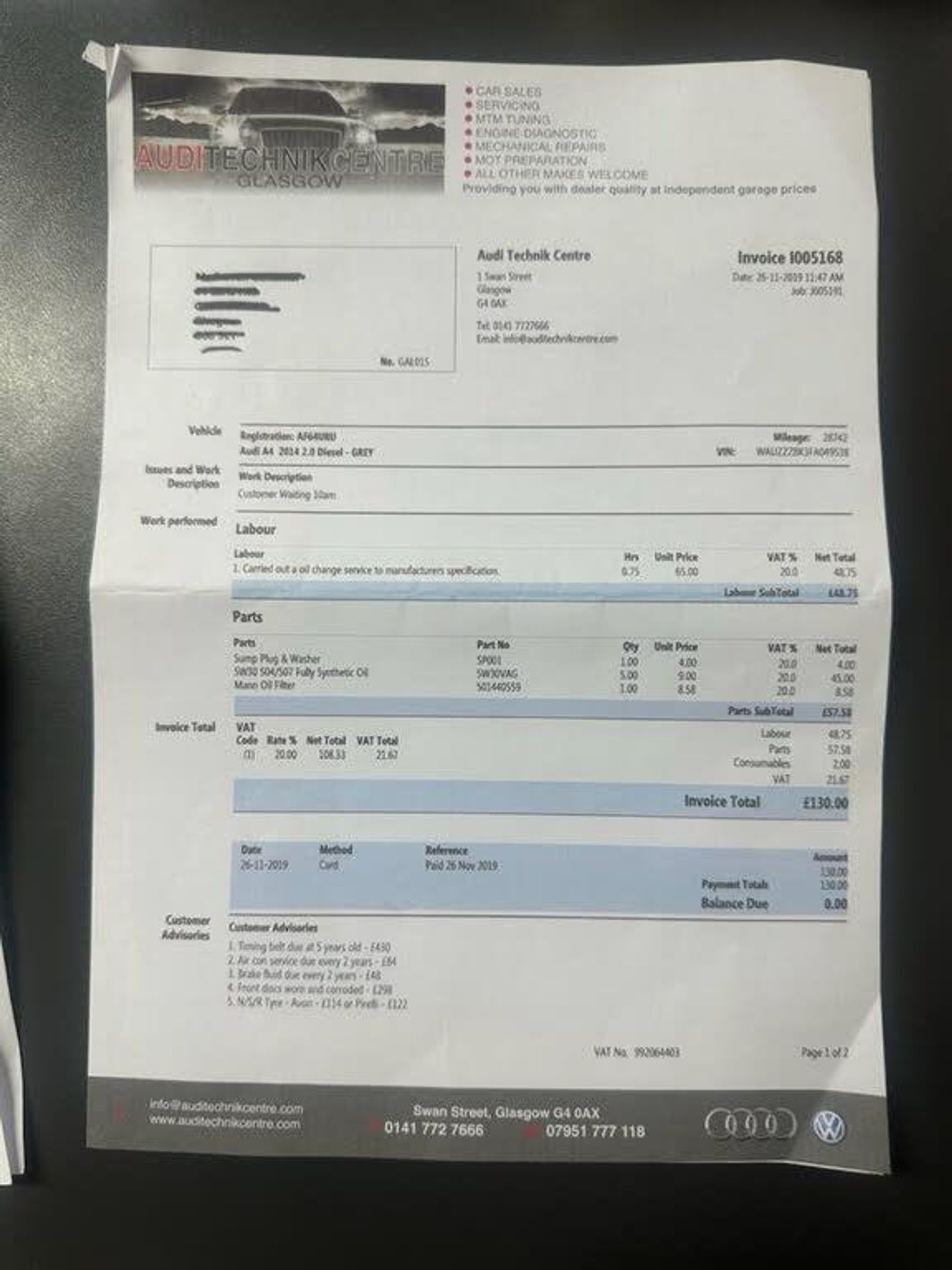 FOR SALE: 2014 Audi A4 Avant 2.0 TDI SE Technik 5dr Estate | Diesel | Automatic | quattro AWD | Euro 5 (s/s) | 177 PS A premium estate with all-wheel drive capability, impressive comfort, and strong build quality. This Audi A4 Avant comes with low mileage and a thorough service history, making it an excellent all-rounder for families, professionals, or long-distance drivers. Vehicle Details: Year: 2014 Mileage: 56,963 miles Engine: 2.0L TDI Diesel (177 PS) Transmission: S Tronic Automatic Drivetrain: quattro (AWD) Emissions: Euro 5 (Start/Stop) Insurance Group: 27 Road Tax (12 months): £215 Colour: Grey Keepers: 2 Body Style: Estate Key Features: Full leather interior Satellite navigation Bluetooth and DAB radio Cruise control Front and rear parking sensors Automatic lights and wipers Heated front seats Alloy wheels Audi MMI infotainment system Service History: 2016 – Main dealer 2018 – Main dealer 2019 – Independent 2021 – Independent 2022 – Independent (timing belt & water pump replaced) 2023 – Independent 2024 – Independent (most recent service) This car has been well maintained with both main dealer and independent servicing. The timing belt and water pump were replaced in 2022, offering peace of mind to the next owner. Viewings and test drives welcome — contact us today to arrange. WE REALISE THAT BUYING A CAR CAN BE A DAUNTING EXPERIENCE, BUT DON'T WORRY, WE ARE WELL ESTABLISHED WITHIN THE TEES VALLEY AREA AND COME WITH A GREAT REPUTATION. FURTHERMORE, WE CAN OFFER EXCELLENT ADVICE WITH OVER 30 YEARS EXPERIENCE WITHIN THE MOTOR TRADE. OUR FRIENDLY STAFF WILL ALWAYS ENDEAVOUR GO THE EXTRA MILE TO GUARANTEE THAT YOU RECEIVE THE ADVICE YOU NEED. THIS IS ONE OF THE MULTITUDE OF REASONS WHY SO MANY OF OUR CUSTOMERS KEEP COMING BACK TO US TIME AND TIME AGAIN. EACH OF OUR CARS GO THROUGH A THOROUGH PRE-DELIVERY INSPECTION BEFORE COLLECTION, AS WELL AS A FULL SERVICE IF REQUIRED, AND AN MOT IF DUE IN LESS THAN 6 MONTHS, WITH ANY REMEDIAL WORK CARRIED OUT. PLEASE FEEL FREE TO CALL US ON 01642 909540 IF YOU HAVE ANY QUESTIONS REGARDING THIS, OR ANY OF OUR OTHER CARS WE HAVE IN STOCK! VISIT OUR WEBSITE HERE > WWW.TEESSIDECARFINANCE.COM