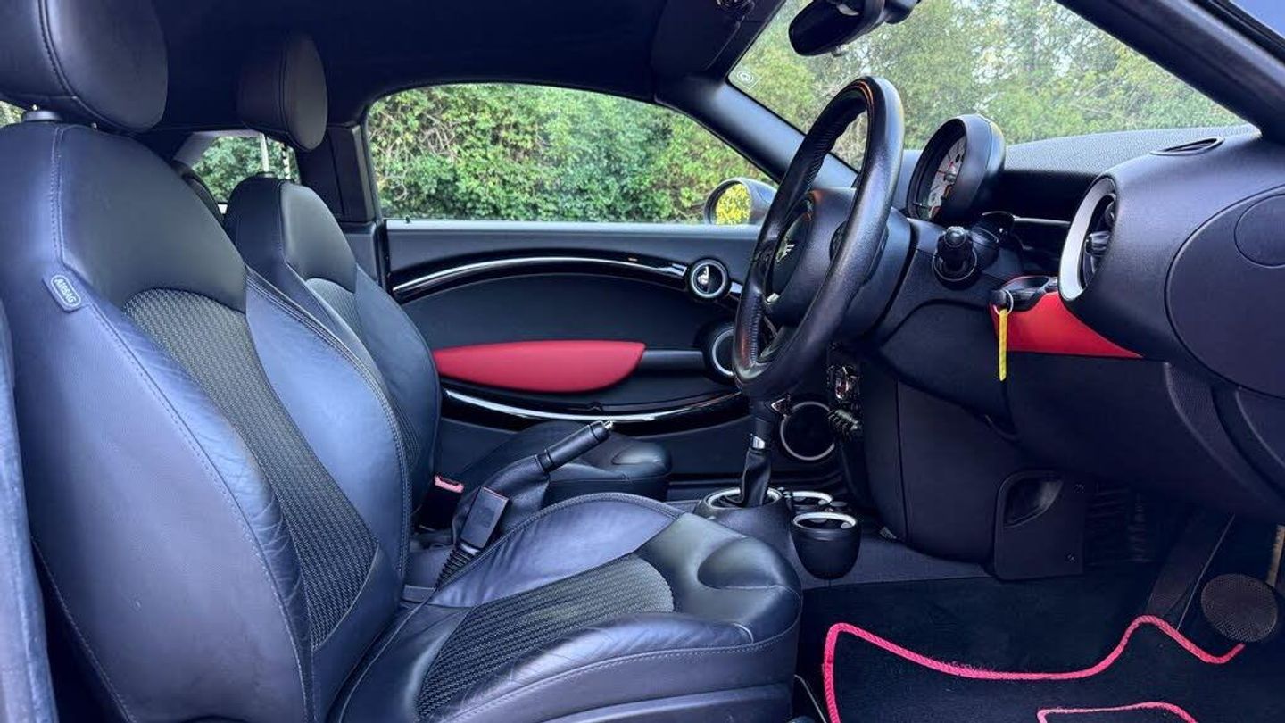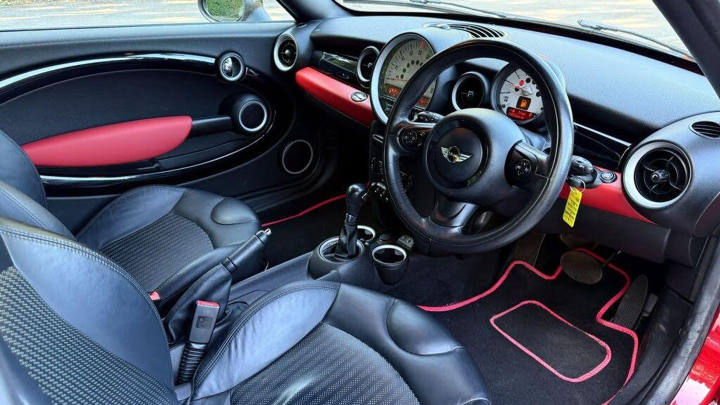 Mini Cooper Roadster AUTOMATIC, in Red with Black Leather Trim, Only 37,000 Miles, Service History, A Rare Automatic Model of this Sporty Mini Cooper, A well looked after example comes with HPi Clear Certificate, 2 Keys, Warranty. Glenbournes Hampton Court Motor centre KT8 9AE TEL : 0203 968 0956 or 07836 221295
