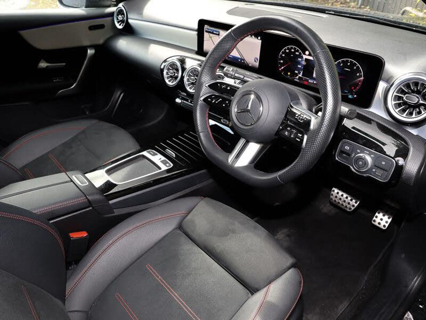 Manufacturer Approved Used, AMG body styling - AMG front apron with front splitter and AMG rear apron and visible exhaust tailpipe trim elements, LED High Performance headlamps including integral LED daytime running lamps and adaptive highbeam assist, Privacy glass, Rain sensing windscreen wipers with two sensitivity settings, Exhaust system with 2 visible tailpipe trim elements and rear apron, Headlamp assist automatic headlamp activation, Heat insulating dark tinted rear and rear side windows, 10.25 inch touchscreen central media display, Mercedes Benz sound system (100 W) with 6 speakers, Smartphone integration with Apple CarPlay and Android auto, Hard-disk navigation, 3 Spoke flat bottom leather multi function steering wheel with perforated leather in grip area, Air conditioning - One zone thermatic automatic climate control with automatically controlled air distribution, Heated front seats, Interior lighting - 64 colour Ambient lighting, Sports seats with integrated headrests