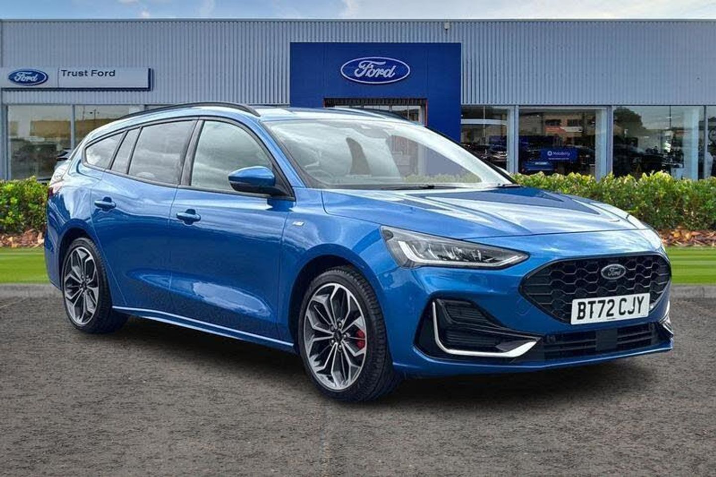 12.3 Digital instrument cluster, Bluetooth system, Digital clock, Easy fuel capless refuelling system, Eco mode, Ford SYNC4 Nav with 13.2'' touchscreen, DAB, Emergency Assistance, Apple Carplay & Android Auto, B&O Premium Audio with 10 speakers, FordPass Connect, Lane keeping system - lane keeping alert and lane keeping aid, PAS, Rev counter, Selectable drive mode, Service interval indicator, Trip computer, Wireless charging pad, Auto headlamps (on/off), Body coloured door handles, Electrically operated front and rear windows with one touch opening and closing, Electrically operated heated power fold door mirrors with puddle lamp with side indicators, Front variable intermittent wipers with electric wash, Heated rear window, LED daytime running lamp, LED rear lamps, LED third brake light, Polished twin tailpipe, Privacy glass, Quickclear heated windscreen, Rain sensor, Rear side wing doors, Tailgate wash/wipe, Unique ST-Line grille, full bodystyling kit, and large body coloured rear spoiler, 3 rear headrests, 3 seat bench in 2nd row, Dual zone electronic air temperature control, Full sensico premium upholstery, Height adjustable front headrests, Isofix child seat preparation, Load through ski hatch, Manual 2-way passenger seat adjust, Power 4-way driver seat adjust, with power lumbar adjust, Reach + rake adjustable steering column, Single front passenger seat, 3x3 point rear seatbelts, ABS+Electronic Brake force Distribution, Auto hold function, Driver airbag, EDL traction control, Electronic parking brake, Electronic stability control, Front and rear seatbelt reminder, Front inertia reel height adjustable seatbelts with pre-tensioners, Front passenger airbag, Front side airbags, Passenger airbag deactivate switch, Post collision braking, Pre collision assist with autonomous emergency braking and pedestrian/cyclist detection, Red brake calipers, Remote/power child rear door locks, Side curtain airbags, Three rear inertia reel lap/diagonal seatbelts, Tyre pressure monitoring system