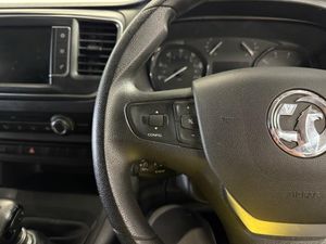 16in Steel Wheels with Full-Diameter Wheels Trims, Air Conditioning, Anti-Theft Spare Wheel Cradle, Appearance Pack, Bulkhead - Full Height Steel without Window, Cab Soundproofing, Driver Seat - Height - Reach - Backrest Recline - Lumbar Adjustment - Driver Seat Armrest - Padded Head Restraint, Drivers and Front Passengers Airbags, Electric Windows - Front with One Touch Facility, Electronic Engine Deadlock Immobiliser, ESP - Electronic Stability Programme Plus with Traction Control, Facia and Door Trim - Mistral Black-Grey, Facia Mounted Gear Lever, Facia Storage, Fixed Floor-Mounted Load Restraint Lashing Eyes, FlexCargo Load Through Bulkhead, Floor Mounted Handbrake Lever, Four-Channel Anti-Lock Braking System - ABS, Front Door Pockets, Front Fog Lights, Full Size Steel Spare Wheel, Hazard Warning Lights, Height Adjustable Outer Front Seatbelts, High Beam Assist, High Level Brake Light, Hydraulic Power-Assisted Rack and Pinion System with Energy Absorbing Steering Column, Lights On Audible Warning, Lockable Fuel Filler Cap, Multi-Function Trip Computer, Multimedia, Nearside and Offside Sliding Side Access Doors, Power Foldable Electrically Adjustable-Heated Door Mirrors, Reach and Rake Adjustable Steering Wheel, Rear Fog Lights, Rear Parking Distance Sensors, Remote Control Central Deadlocking, Reversing Lights, Seats - Dual Front Passengers Bench with Underseat Storage, Security Alarm System, Side Protection Mouldings, Side Repeat Indicators, Steering Column Lock, Steering Wheel - Three-Spoke Design - Chrome-Effect Bezel, Unglazed Rear Doors - 90-180 Opening, Vauxhall Connect, Visibility Pack