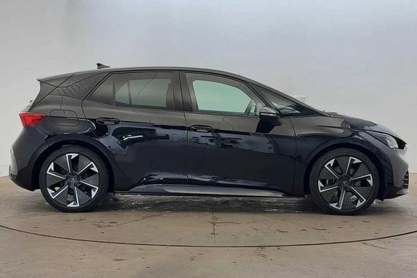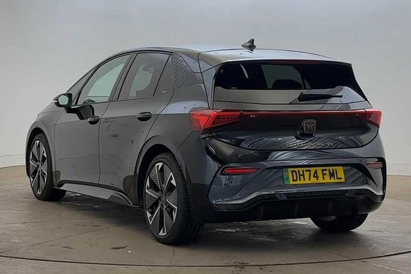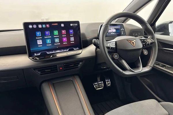 Acoustic windshield,Dark tinted rear windows,Heat insulated glass,Rear wiper,Variable intermittent wiper,Windshield wiper with light/rain sensor,Shock absorption in front,Sports rear shock absorption,Rear side wing doors,Transport protection film,Full LED headlights,LED 3rd brake light,LED daytime running lights,LED rear lights,Welcome home function and adverse weather function,Bluetooth,Wireless full link smartphone integration,2x USB sockets in front,2x USB sockets in rear,charge only,DAB (Digital Audio Broadcasting) and AM/FM radio,Dynamic steering,Forward collision warning with automatic braking,Lane assist,Auto dimming rear view mirror,Electric adjustable/heated/folding door mirrors,Grey exterior mirrors,3 point seatbelts on all rear seats,Attention and drowsiness assist,Driver and front passenger airbags with front passenger airbag deactivation,side airbag in front with curtain airbag and front interaction airbag,Extended safety system with proactive passenger protection system,Tyre pressure monitoring system,Visual and acoustic seat belt reminder,Tailgate,5.3" digital cockpit with 12.9" central display infotainment system,Augmented reality head up display,e-call service,Emergency steering support with turn assist,Right hand drive vehicle,Voice assistant,Dual zone climatronic air conditioning,Electric auxiliary air heater,Aluminium pedals,CUPRA emblem on steering wheel,Heated leather wrapped multi function steering wheel with satellite buttons,Gear ratio 12976,Sunvisors with illuminated mirror,3 seat bench in 2nd row,Front bucket seats with 12 way electrically adjustable,pneumatically adjustable lumbar support and massage function,Heated front seats,Integrated front head restraints,ISOFIX points in outer rear seats with top tether anchorage points,Rear headrests,Single front passenger seat,Unsplit rear seat bench,split folding backrest,with centre armrest,Anti theft alarm system with interior monitoring in cab,backup horn and towing protection,Anti theft wheel bolts,Keyless go central locking system,Manual child locks,Preparation for alcohol interlock,Warranty - 5 years/90,000 miles,11 kW onboard charger,165kW DC charging capacity,Charging cable mode 3,type 2/3 32 A,Tool kit,Tyre repair kit