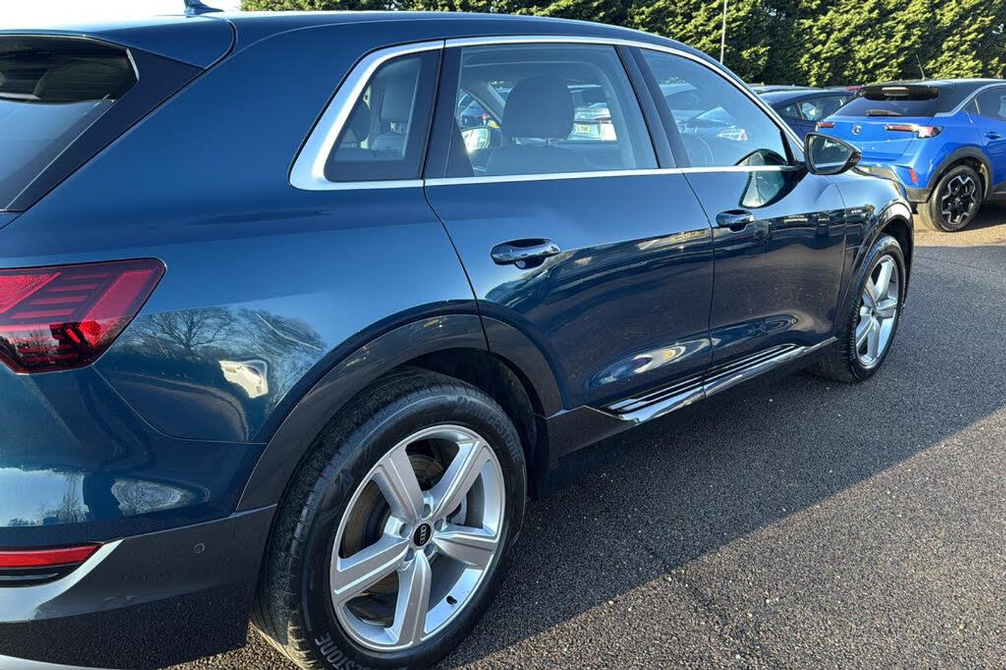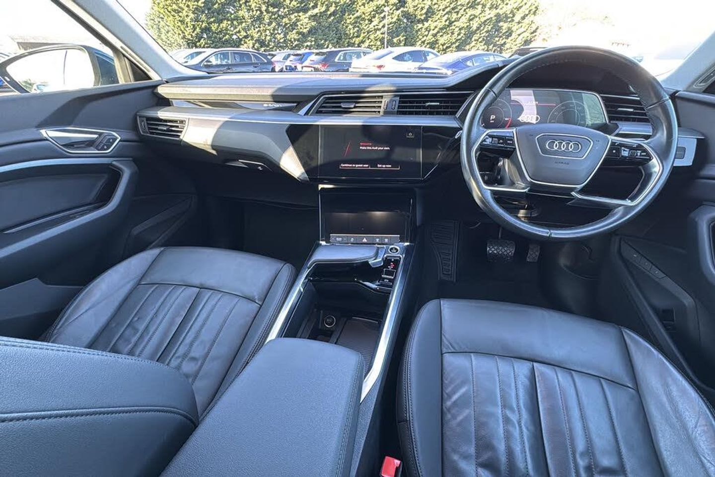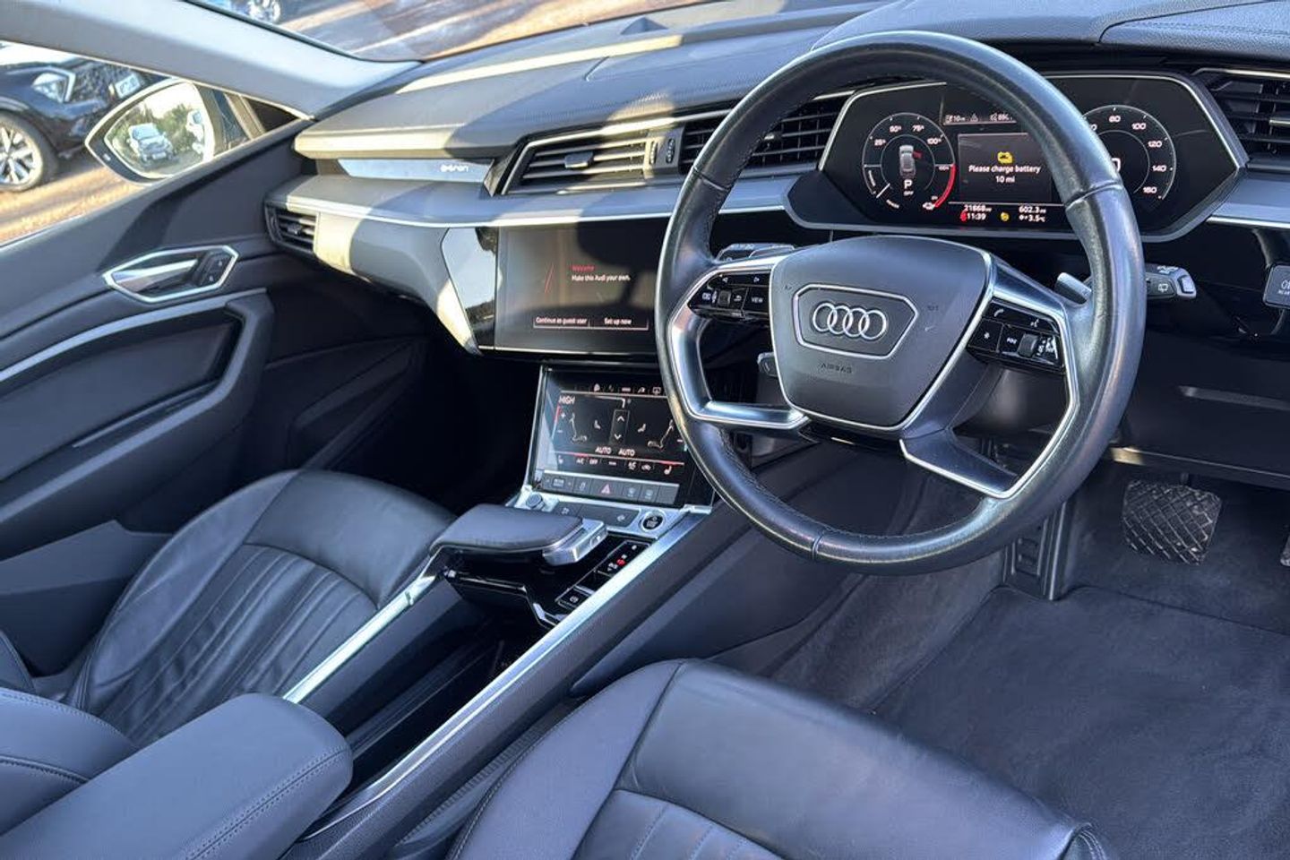 11 kW Onboard Charger 2-Zone Automatic Air Conditioning 20in Alloy Wheels - 9.0J 5-Arm Design 4-Way Lumbar Support for Front Seats ABS - Anti-Lock Braking System AC and DC Charging Access Point on Drivers Side and Second AC Charging Access Point on Passenger Side AMI - Audi Music Interface - Front Active Vehicle Alerting System - AVAS Adaptive Air Suspension Airbags - Driver Anti-Theft Alarm Anti-Theft Wheel Bolts and Wheel Loosening Warning Audi Connect Audi Connect Safety and Service - e-call Audi Drive Select Audi Pre-Sense Front and Basic Audi Smartphone Interface Includes Wireless Functionality Audi Sound System Audi Virtual Cockpit Auto Dimming and Frameless Rear View Mirror Bluetooth Interface Body Coloured Door Mirrors Bumpers - Contrasting Cloth Headlining in Lunar Silver Compact e-tron Charging System Cruise Control with Speed Limiter DAB Digital Radio Door Mirrors - Electrically Adjustable - Heated - Folding - Automatically Dimming with Memory Function with Kerb View Function for Passenger Side Door Sills with Aluminium Inlays Electric Windows - Front and Rear Electrically Adjustable Front Seats including Memory Function for Drivers Seat First Aid Kit and Warning Triangle Four-Spoke Multi-Function Leather Steering Wheel with Paddles Front Centre Armrest Front and Rear Floor Mats Gloss Styling Pack Heated Front Seats Household Plug Type G - GB ISOFIX Child Seat Mounting for Front Passenger Seat with Front Passenger Airbag Deactivation ISOFIX Child Seat Mounting for Outer Rear Seats Industry Plug CEE 32 A-230 V Inlays in Graphite Grey Paint Finish Keyless Go LED Headlights with Function-On-Demand Preparation LED Interior Light Package LED Rear Lights Lane Departure Warning Luggage Compartment Cover Luggage Compartment Floor MMI Navigation Plus with MMI Touch - Twin Touch Screens with Haptic Feedback Manual Steering Column Adjustment Mode 3 Type 2-AC Charging Cable 22kW Parking System Plus with 360 Degree Sensors and Function-On-Demand Preparation Power Operated Tailgate Progressive Steering Rear View Camera Removable Net Partition Side Airbags - Front and Head Airbag System Sun Visors with Illuminated Vanity Mirrors Tool Kit Tyre Mobility System Tyre Pressure Warning Light Vehicle Inlet Combo 2 - EU CCS Windscreen with Acoustic Glazing