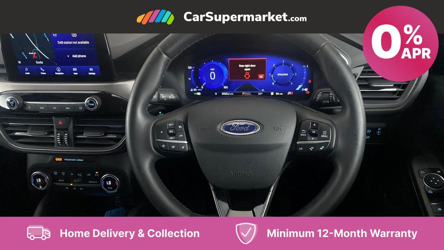 Sat Nav, Apple CarPlay, Parking Sensors, Lane Departure Warning, Privacy Glass, Keyless Entry;With its MOT valid until April 2026, this 2022 Ford Kuga Titanium offers peace of mind for miles to come. This Kuga, with its efficient 2.0L diesel engine and four-wheel drive, is ready for anything. The vehicle history check is clear, and the last service was completed on 17th July 2025 at 21,522 miles. Parking is made simple with front and rear parking sensors, including parking assistance.