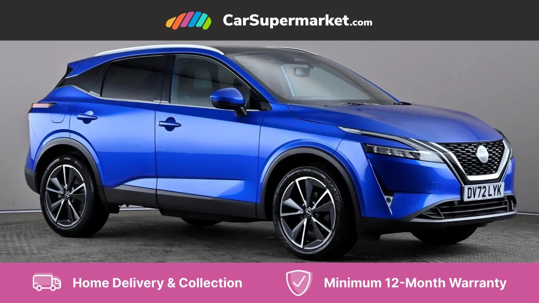 Apple CarPlay, Android Auto, Blind Spot Monitoring, Parking Sensors, Cruise Control, Lane Departure Warning, Sat Nav, Traffic Sign Recognition, Wireless Phone Charging, Bluetooth, Privacy Glass, Automatic Climate Control, Heated Front Seats, Heated Steering Wheel, 19" Alloy Wheels;This 2022 Nissan Qashqai DIG-T Tekna is presented with a full service history, having had its last service on 1st August 2025 at 30,016 miles, and comes with a clear vehicle history check. This Euro 6 compliant 1.3 litre petrol hybrid model offers a refined driving experience. Notable features include the Intelligent Around View Monitor with 360 degree parking assistance, LED headlights with adaptive driving beam, and wireless Apple CarPlay for seamless connectivity. You'll also benefit from front and rear parking sensors and the intelligent blind spot intervention system, enhancing safety and convenience.
