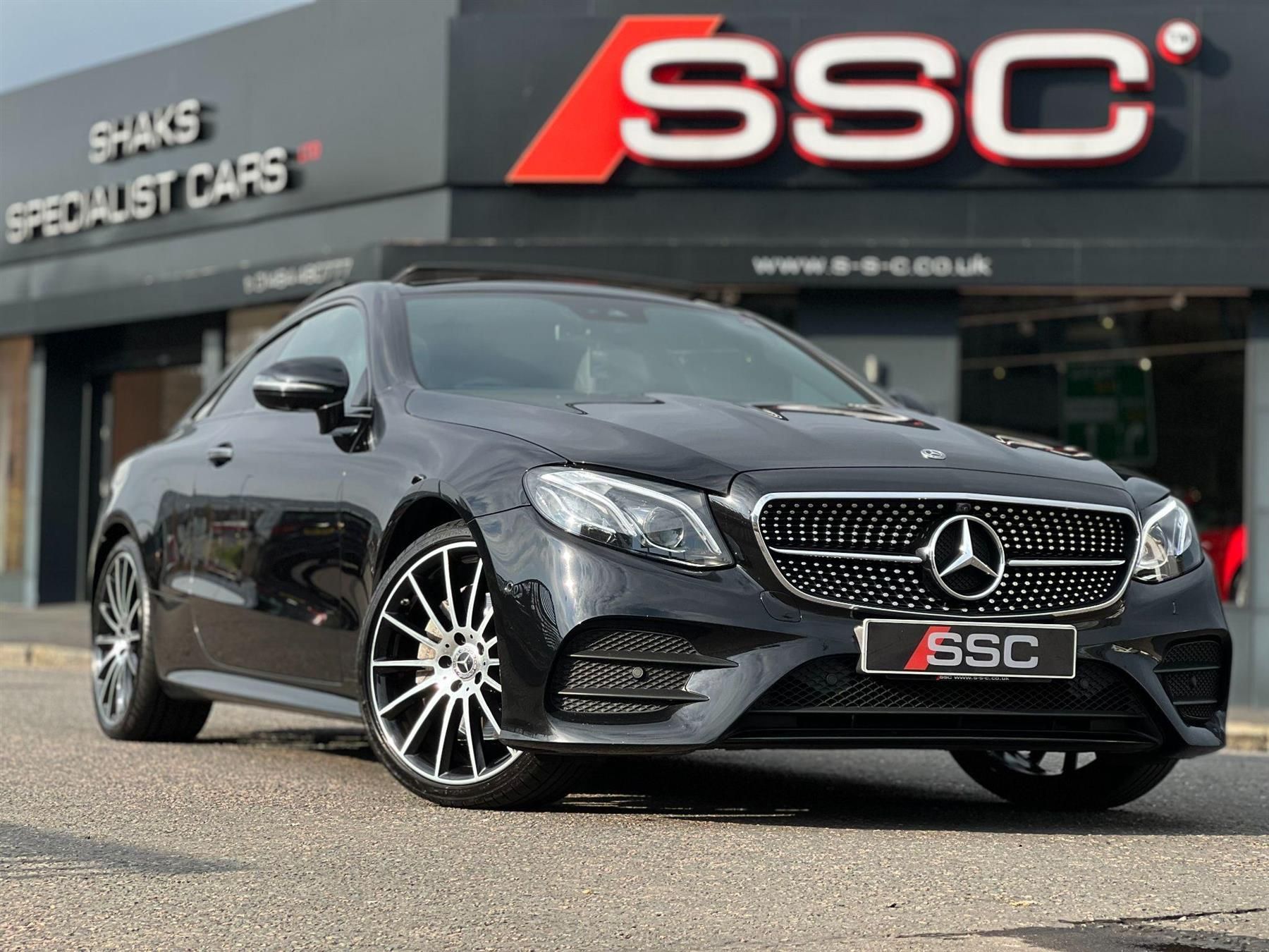 Stunning E220d AMG Line Coupe Finished In Black Metallic With Black Artico Leather and Dinamica Microfibre Interior. Fantastic Spec Inc: Premium Plus Pack, Night Package, 360 Degree Cameras, Privacy Glass, 20'' Multi Spoke Alloys In Gloss Black With Diamond Finish, COMAND Online System, Widescreen Cockpit Display, Wireless Charging, Mercedes Me Connect, Panoramic Sunroof, Burmester Surround Sound, Ambient Lighting, Keyless System, Electric Heated Seats With Memory, ATTENTION Assist, Active Brake ASSIST, DAB, Cruise Control with SPEEDTRONIC, Multibeam LED, Intelligent Light System, Mirror Package, MAGIC VISION CONTROL, Parktronic, Park Assist, Seat Comfort Package, Tyre Pressure Monitoring System, Driving Mode Select, Selective Damping System. This E Class Coupe Comes With Full Service History.