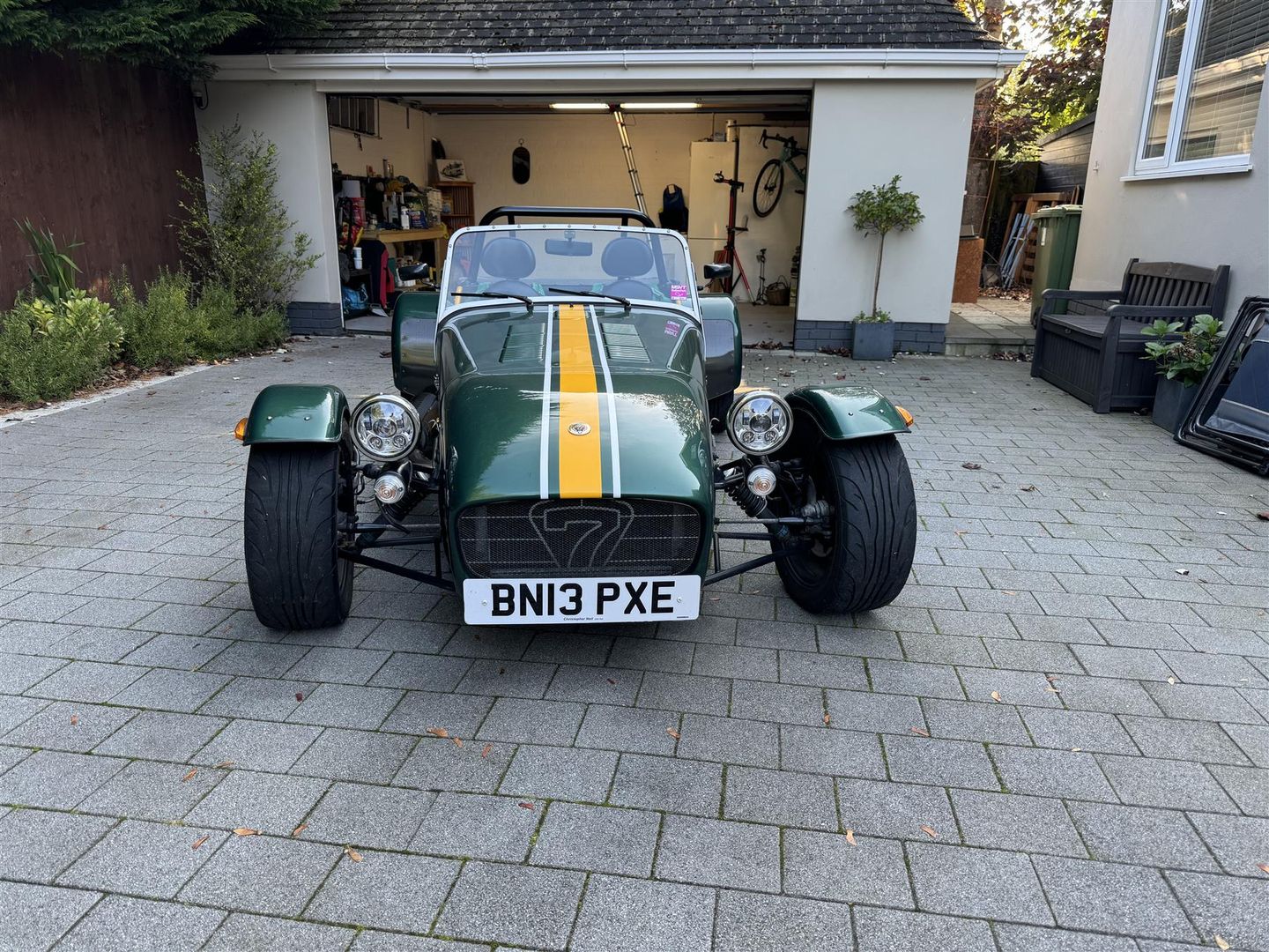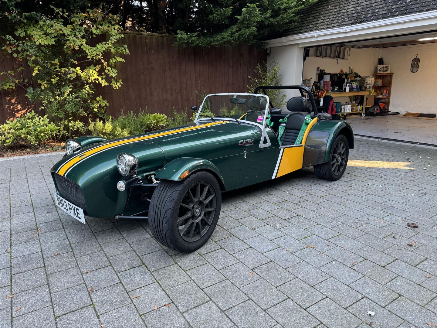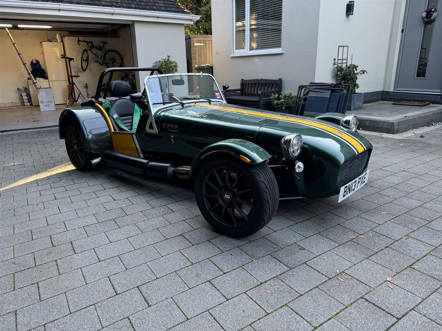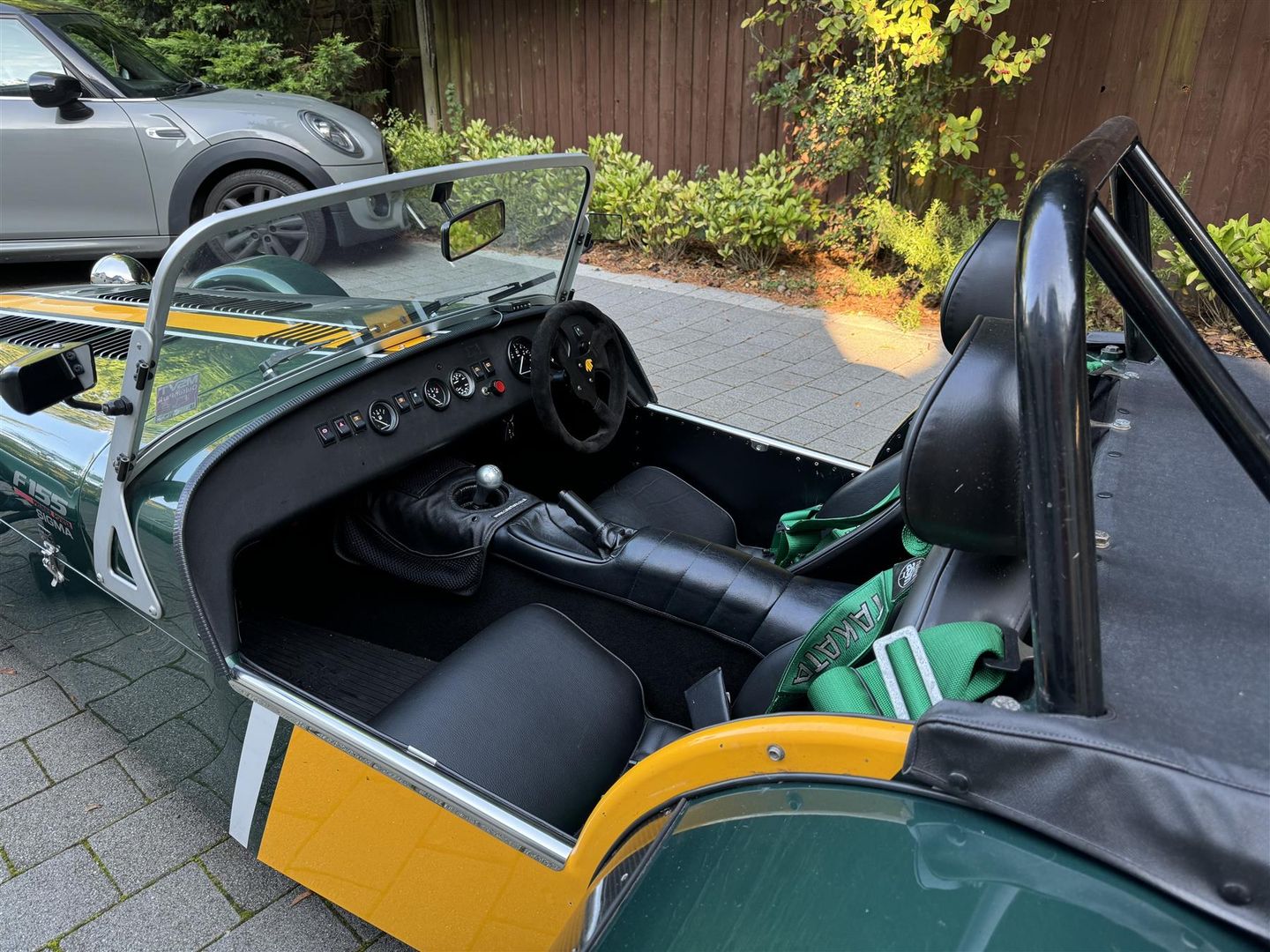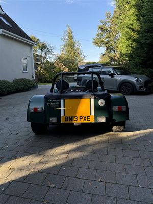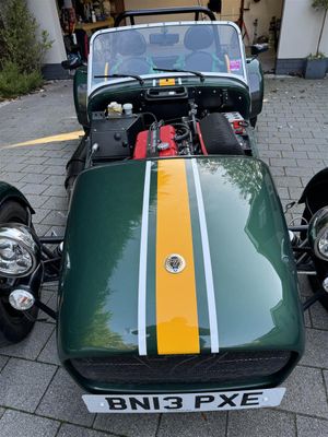 Finished in Green & Yellow Lotus coloursr. Black pack Full Caterham harnesses Push button start Momo steering wheel and quick release column Side screens On the road package Roll cage Hood. Viewing by appointment only.