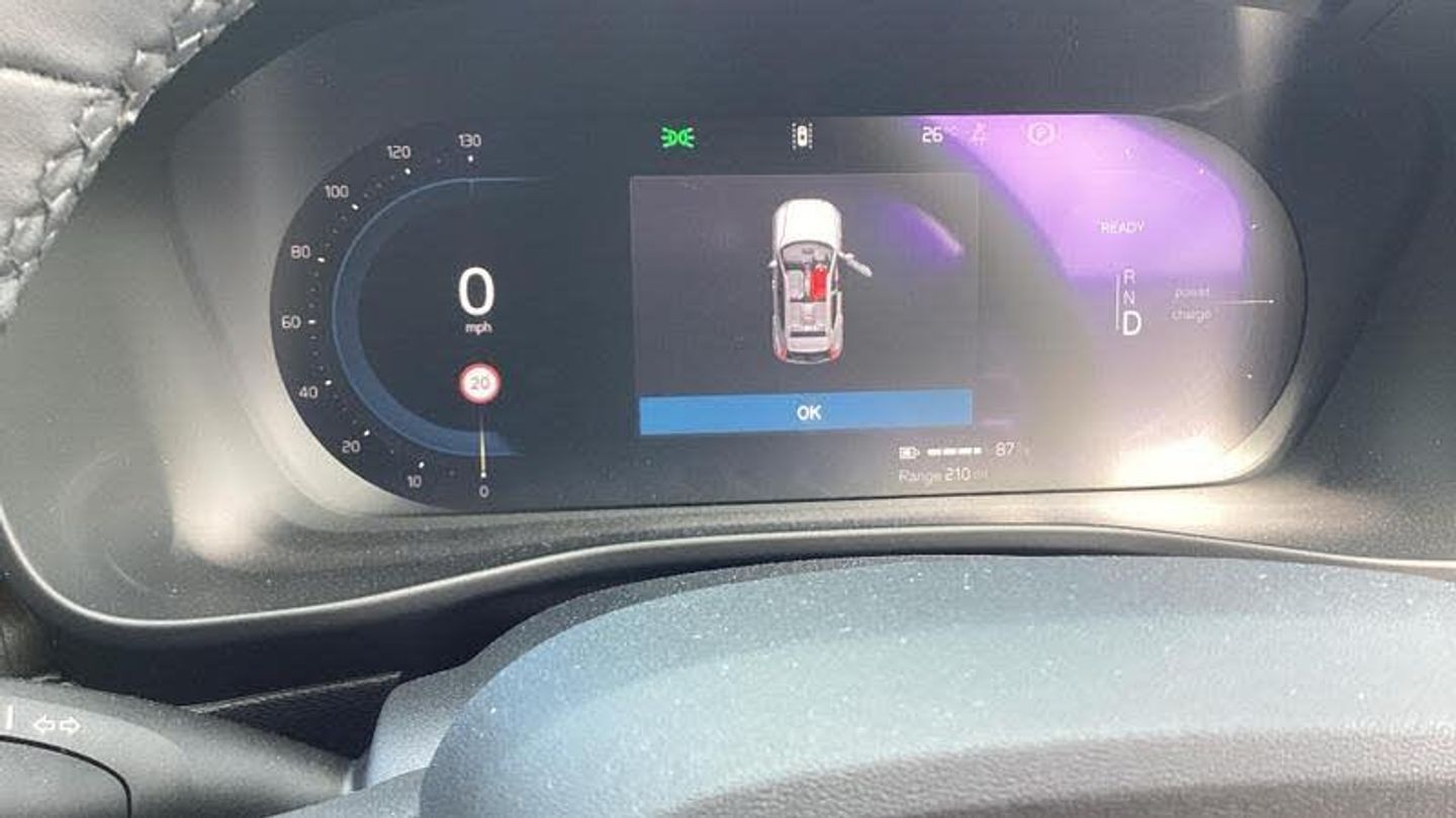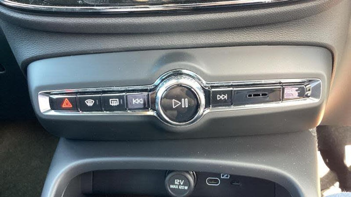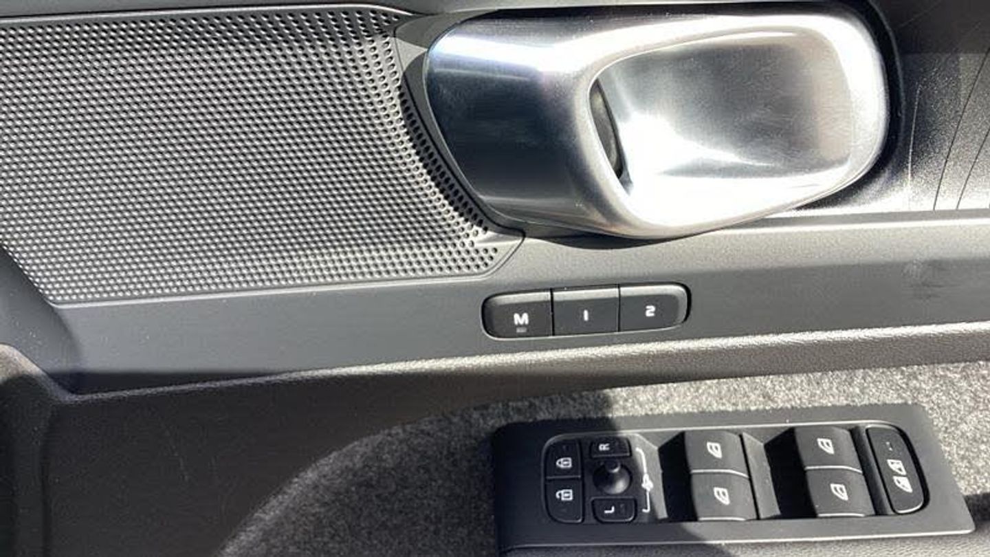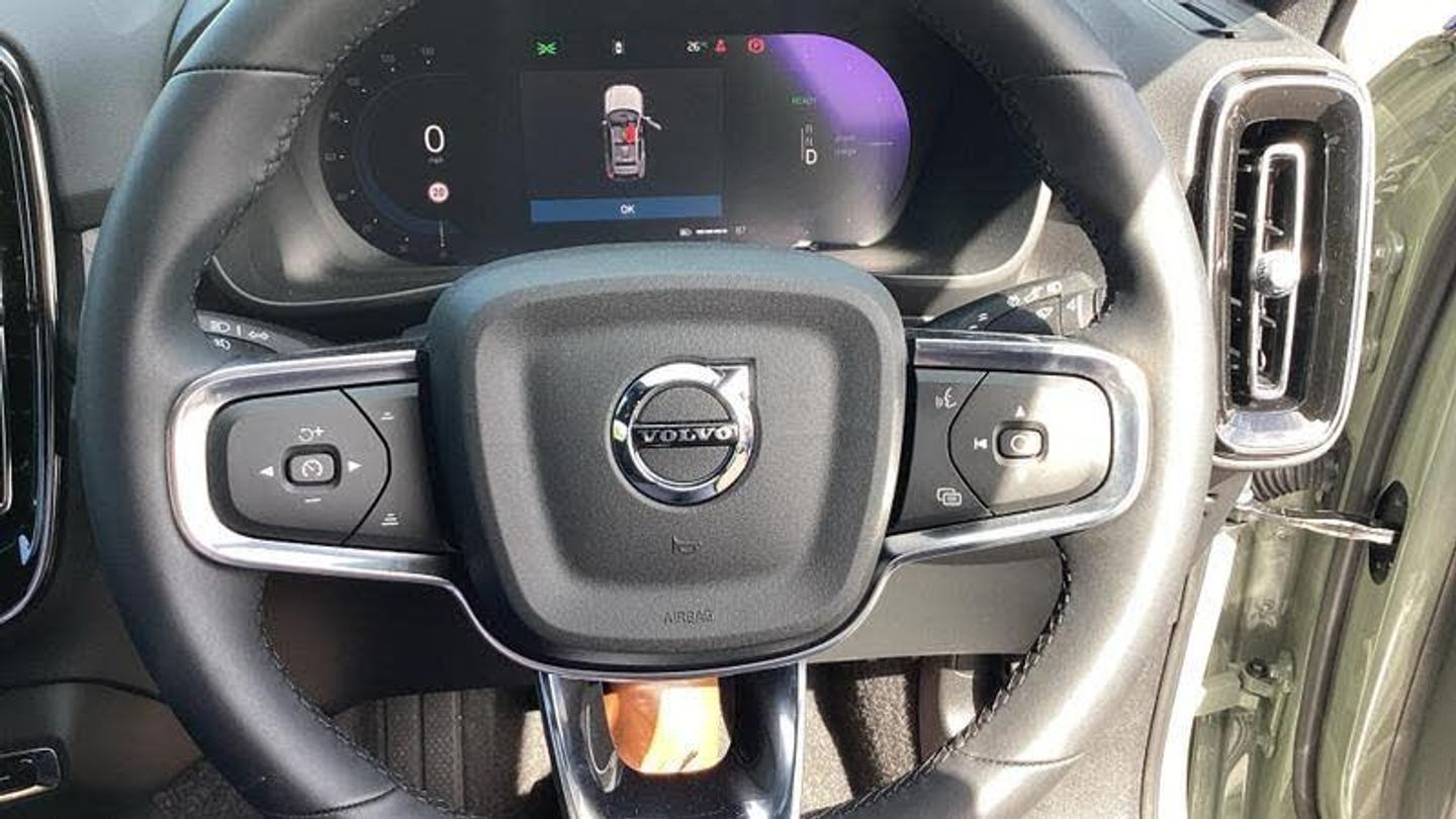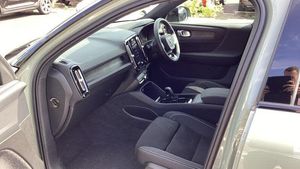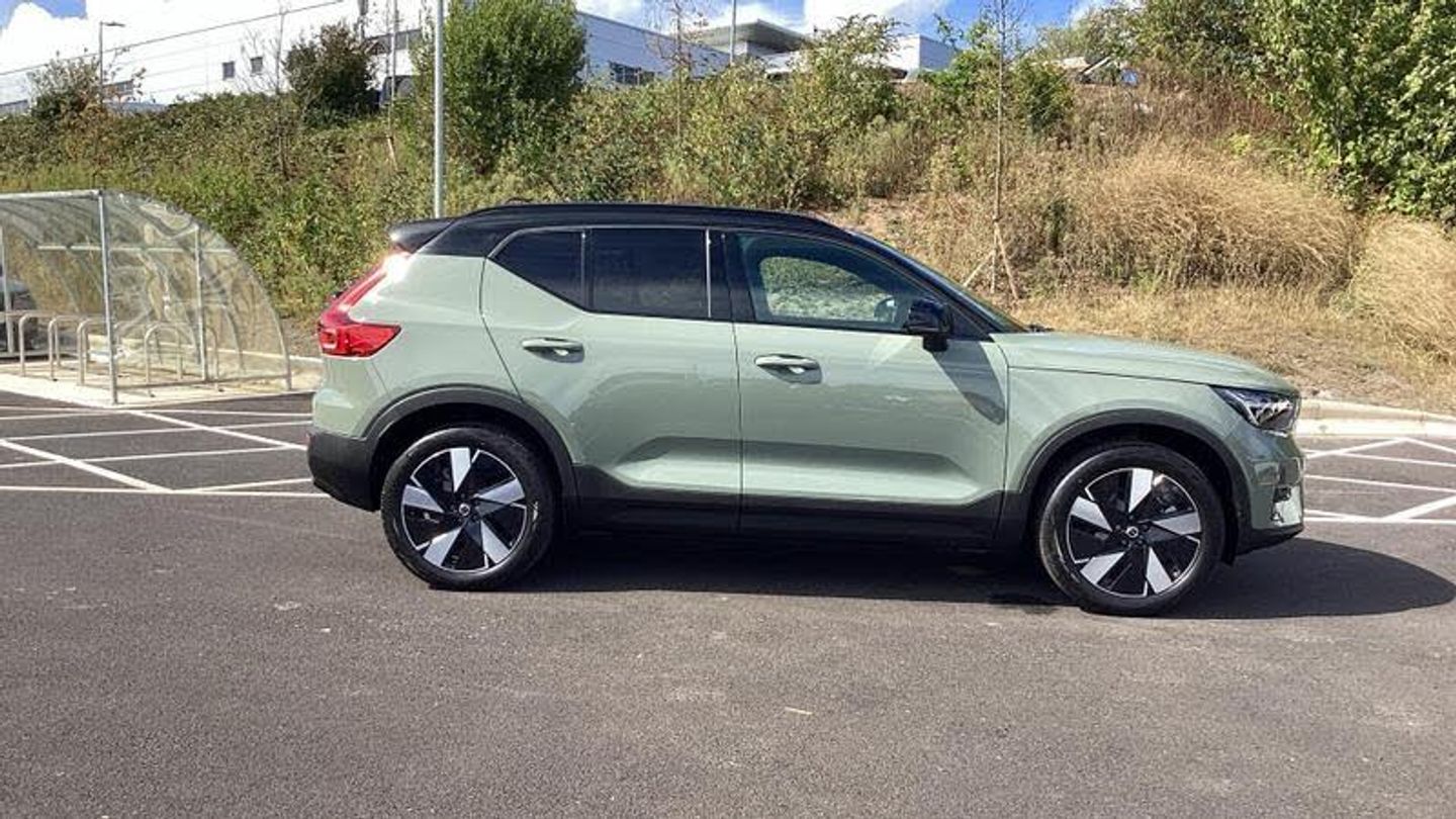 Roof top in contrast colour. Black Stone, Shift-by-wire single speed transmission, Sculpted gear shift, Afterrun parking climate, Charcoal headlining, Charcoal interior inserts, Roof top in contrast colour. Black Stone, Body coloured covered grille, Heated grill emblem, Trailer lamp control, Fog lamps, Google Assistant. Google Maps and Google Play Store - included for 4 years, Intelligent Speed Assist (ISA), High Performance audio system, Door mirror covers. high-gloss black, Small storage. front, Double locking, BLIS? and Cross Traffic Alert, Power child safety lock, Keyless entry with hands-free power tailgate, Air purifier and remote cabin pre-cleaning, Digital owners manual, Topography decor, Fixed rear head restraints, 5 seats, Mechanical release second seat row, Manual cushion extensions. driver and passenger, Power 4-way lumbar support, Sport textile interior cabin floor mats. Charcoal, Foldable load floor with cargo divider and grocery bag, i-Size/ISOFIX mounting points. front seat, Illuminated vanity mirrors, Glossy black tunnel console, Rear Collision Warning, Temporary mobility kit, Body-coloured door handles with ground lighting, Without rear engine emblem, Ticket holder, Electric cabin heater and cooler, Alcohol lock software (not available in the UK), Protective cap kit. Matt Tech Grey, 9-inch centre display, Inflatable Curtain, Steering wheel remote control, Humidity sensor, Bluetooth connection, Safety belts, [Audio and Communications]Volvo Cars App remote functions, Digital Audio Broadcasting (DAB+), Wireless phone charging, Apple CarPlay, [Drivers Assistance]Road Sign Information, Adaptive cruise control, Tyre pressure monitoring, Slippery road alert, Park assist. rear and front, Park assist camera. rear, [Exterior]Power retractable door mirrors, Automatic door locking, Tinted rear windows, Auto-dimmed rear view mirrors, 19? 5-spoke glossy black diamond cut. rear, 19? 5-spoke glossy black diamond cut, Lockable wheel bolts, High-gloss black side window trim, Roof rails. glossy black, Tempered side windows, [Illumination]LED headlights, [Interior]Two-zone climate system, Heat pump, 12.3-inch driver display, Power tailgate, Folding bag hook, Connect Suede textile/Microtech upholstery, Power driver seat with memory, Adjustable passenger seat, Heated front seats, Heated rear seats, Protection net, Rear centre armrest, Interior illumination. high level, Front centre armrest, Front load compartment, Heated steering wheel, Tailored sport steering wheel. Charcoal, EX40 aluminium front tread plates, Rain sensor, Comfort front seats, [Performance]Touring chassis, Adaptive power steering, Charging station cable. 6m, [Safety and Security]Passenger airbag cut-off switch, Dual-stage airbags, Knee airbag. driver side, Lane Keeping Aid and Lane Departure Warning, Pilot Assist, Remote key, Alarm, First-aid kit, Hill Start Assist, Oncoming Lane Mitigation, Hill Descent Control, Emergency brake light, Warning triangle, Whiplash injury protection, Side impact protection, ISOFIX mounting points. rear seat