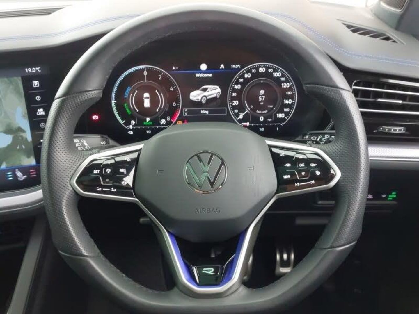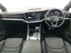 Innovision cockpit pack - Touareg, Apple car play/Android Auto, Ambient Light Pack Coloured - Touareg R Line, Sports multifunction leather heated steering wheel with gear paddles and R logo, IQ.Light-LED matrix headlight,daytime running light with dynamic cornering light and indicator, 2D/3D map view, Wireless Smartphone charger, Dynamic road sign display camera controlled system with visual warning for traffic and road signs, Fully electric tailgate + keyless entry and start, Air suspension, DAB Digital radio, Dynamic navigation based on TMC+, Automatic headlights, Dark SBBR taillights, Rain sensor, 4 zone climate control, Isofix preparation for 2 rear child seats