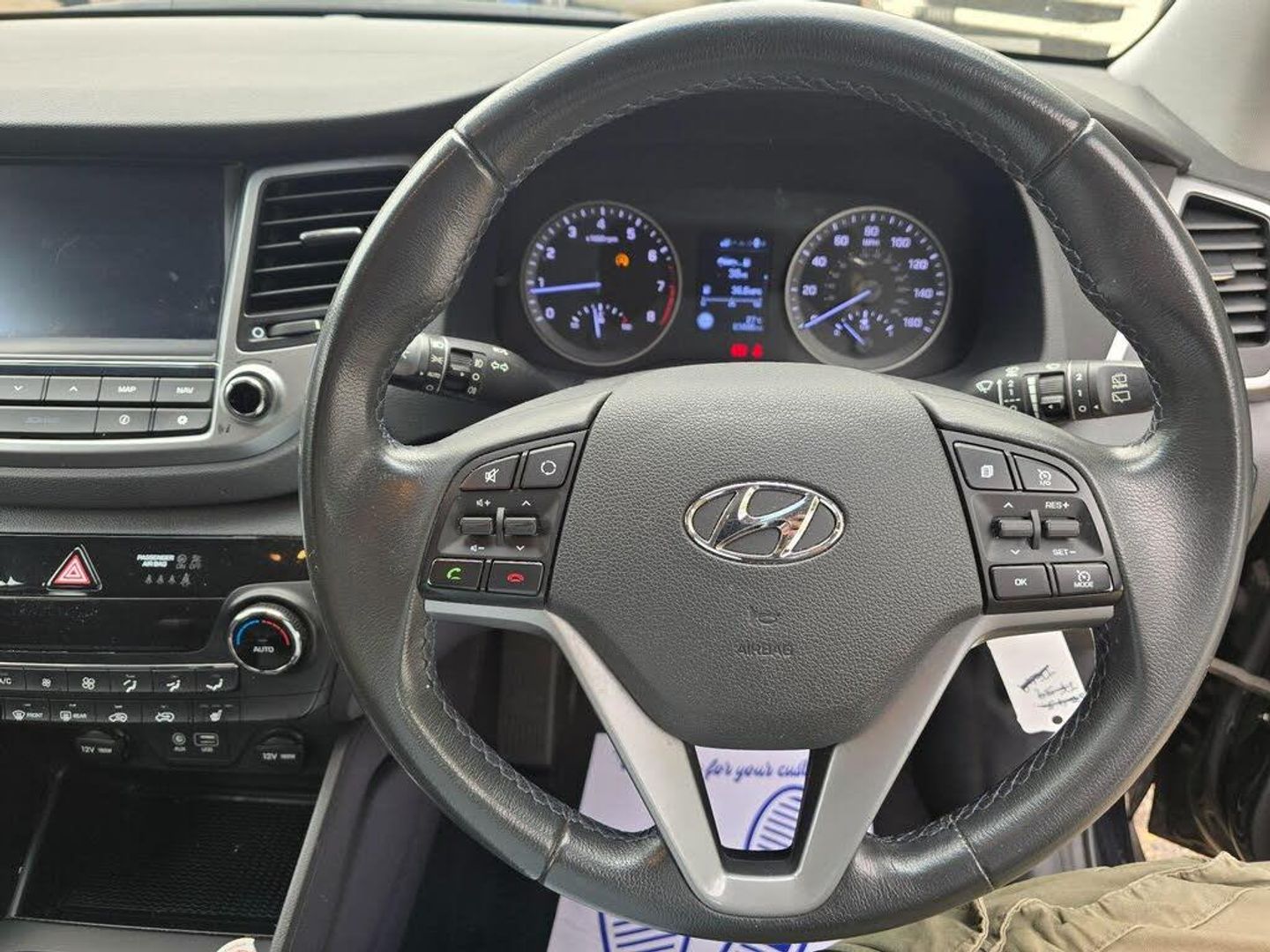The 2017 Hyundai TUCSON is a great choice, especially with its low insurance group.This Hyundai TUCSON SE Nav, with its 1.6L petrol engine and Euro 6 emission class, combines practicality with modern features. The SE Nav trim includes an 8in touchscreen satellite navigation system with Traffic Messaging Channel, Reversing Camera, Mapcare, and Tom Tom LIVE Services, making every journey easier. Parking is simplified with rear parking sensors and the reversing camera. Enjoy the convenience of automatic headlights with a dusk sensor and the comfort of heated front seats. Bluetooth connectivity ensures you stay connected on the move.This TUCSON stands out with its fuel economy of 45 mpg, meaning fewer trips to the petrol station. The large boot space makes it ideal for everything from family holidays to shopping trips.