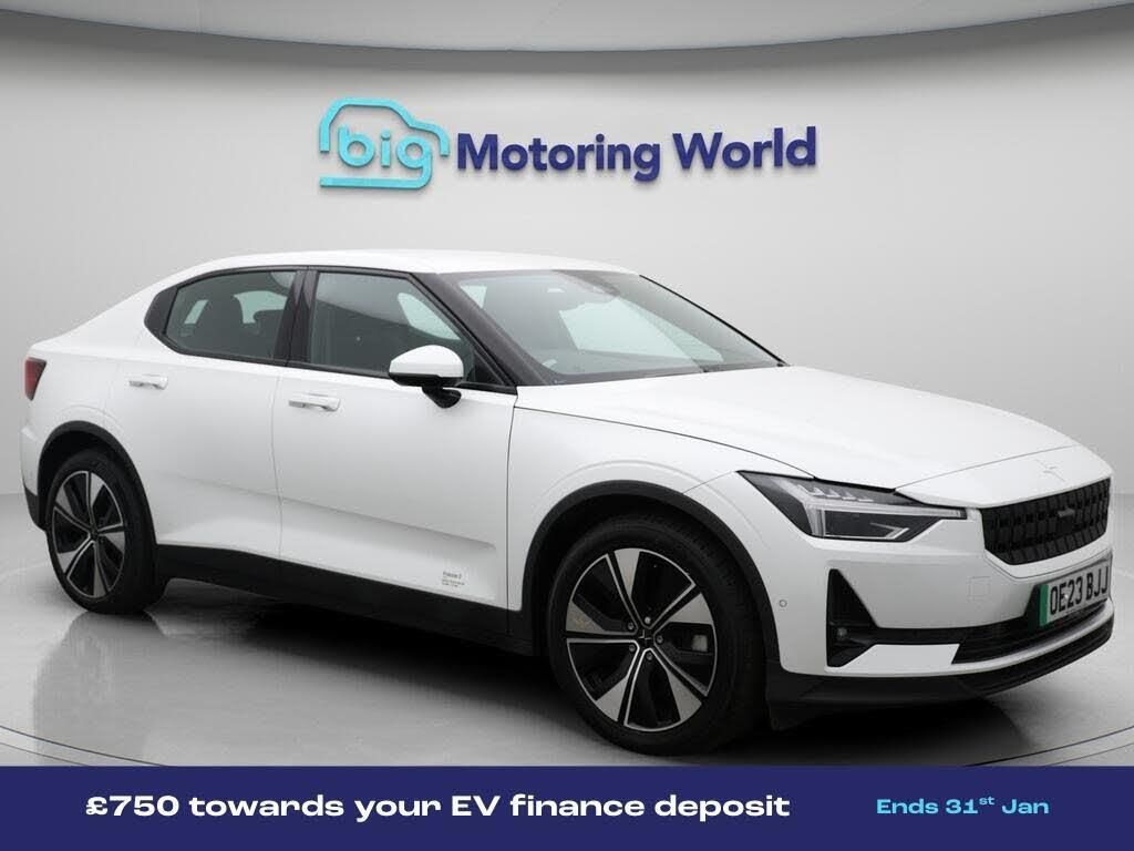 £750 towards your finance depo-Our Polestar Polestar 2 is finished in White. Specification includes a range of fantastic features including £750 towards your finance deposit, Dynamic Chassis Control, Apple CarPlay, Adaptive Cruise Control, Electric Seats, Premium Sound System, Android Auto, Heated Seats, Rear View Camera, Memory Seats Specification information is supplied by CAPHPI and may vary to the actual car. This data does not form any part of a buying contact. Please check specification prior to purchase in-store. The MOT is valid until April 2026, visit bigmotoringworld.co.uk for more photos, a 360 tour, service history and a free HPI report.Were BIG on peace of mind and this White Polestar Polestar 2 has completed our comprehensive 200 point inspection and passed all checks. Its ready for you to drive away with immediate collection in-store. We include a 90-day warranty as standard plus an option to extend for up to 3 years.Reserve this car exclusively for you, safely and securely at bigmotoringworld.co.uk, with a fully refundable £99 deposit. Test drive before you buy, with no commitment, no hassle and a completely haggle free experience. Still searching and want to see thousands more cars? We are BIG on choice with over 8000 cars to choose from.Visit our award winning web site bigmotoringworld.co.uk.Were Big Motoring World and were BIG on what matters to you.