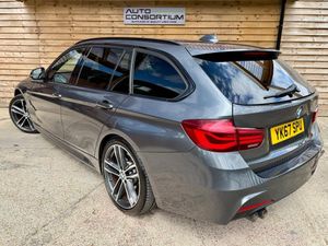 BMW 320d M Sport Shadow Edition Touring Auto. Finished in Grey metallic with full Black Leather seats.This incredible condition BMW 3 Series Touring has been cared for extremely well through its life with a great service history. We will however be servicing and MOT'ing this super looking family estate before the next owner takes delivery. It really is in great condition with it showing very little signs of age related marks and all 4 tyres having a substantial amount of tread. The specification on this beautiful example BMW 3 Series is vast with some highlights being. Satellite Navigation, DAB Radio, Full Black Leather, Heated Front Seats, 19'' Alloy Wheels, Auto Tailgate, Duel Climate Control, Rear Parking Sensors, Harman Kardon Sound System, Bluetooth Phone Preparation, High-Beam Assist, Auto Lights & Rain Sensors, LED Headlights. To name but a few. We feel if your looking for an automatic family estate that is well built & refined then they don't get much better than this one for the specification and value for money. Not only that it's very fuel efficient and is fully ULEZ compliant. It's also supplied with 2 keys.In a great colour combination it boasts Full Black Leather with Heated Front Seats, making this a really striking feature on this super looking BMW 320d Shadow Edition Touring . So at this price it is fantastic value for money. All Auto Consortium cars are handpicked from local main dealers and we NEVER buy from auctions. This way we can be sure were