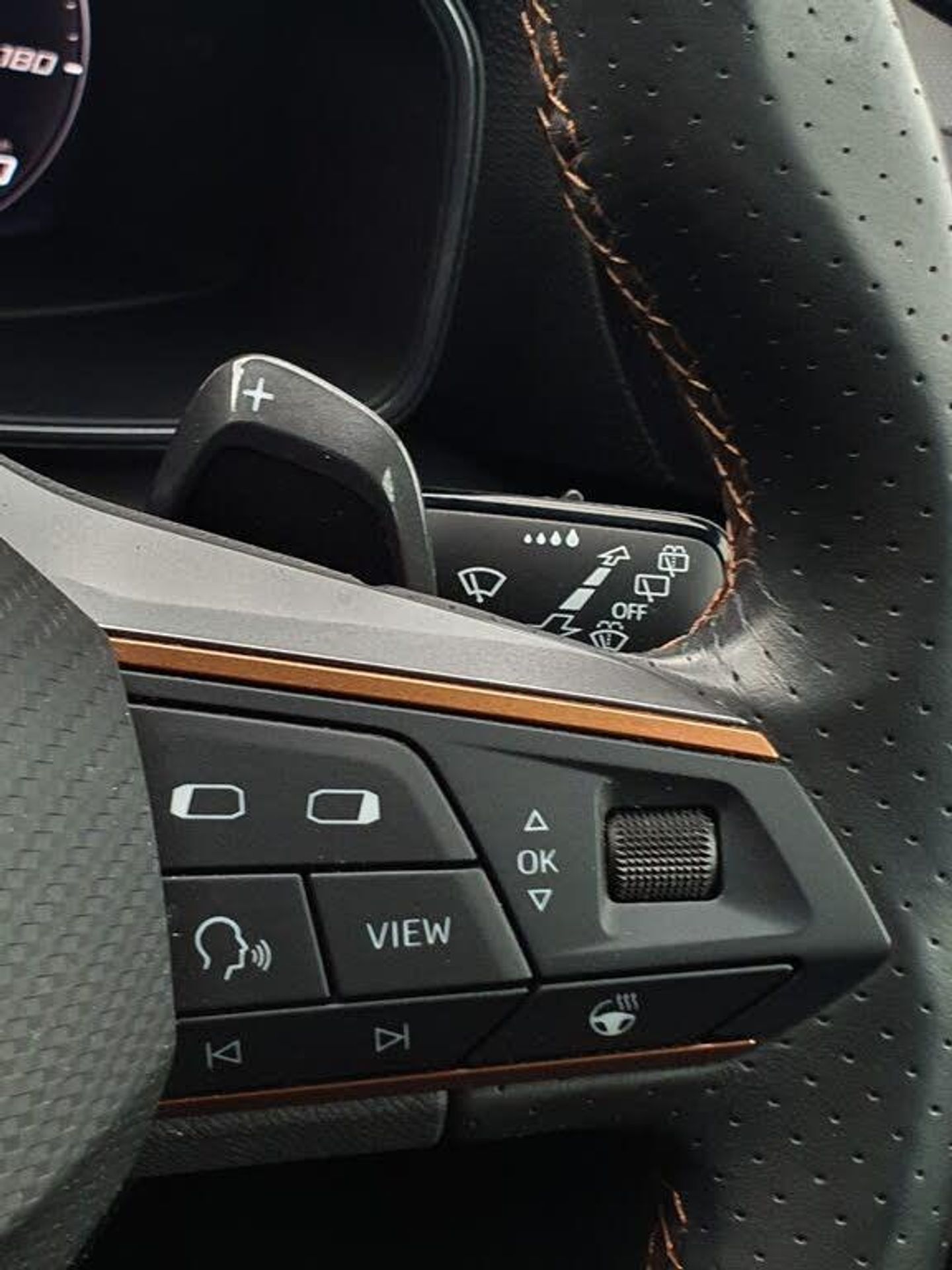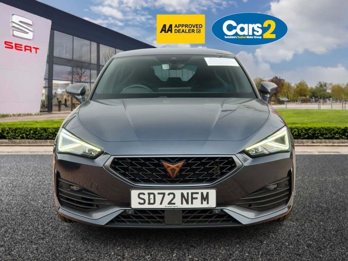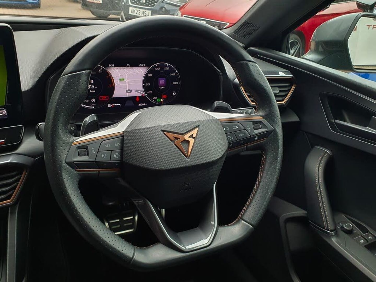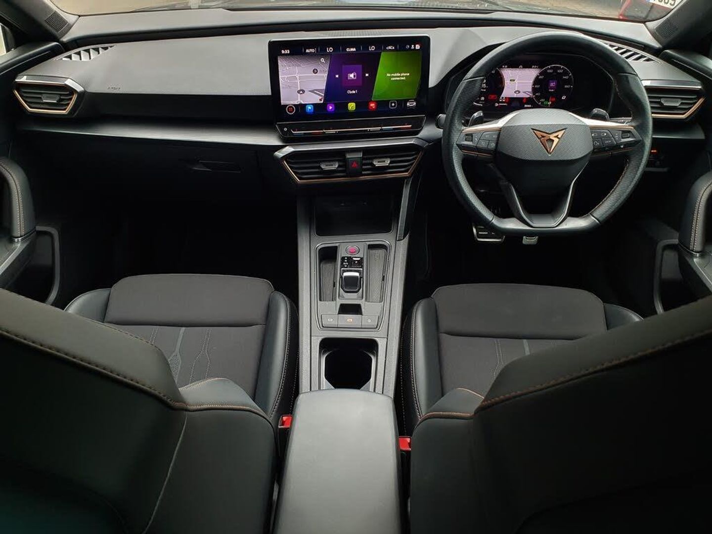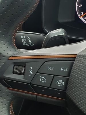 CUPRA drive profile selection with 4 modes (Comfort/Cupra/Sport/Individual), throttle response and gearshift mode, Digital cockpit, E-call, Four x USB Type C ports, Front assist with forward collision warning braking reaction to vehicles, pedestrians and cyclists, Full link smartphone integration with Mirror Link, wireless Apple CarPlay and wired Google Android Auto, Lane assist, Lockable tailgate, Park assist (inc front/rear parking sensors), Rear view camera, RPM, trip computer, outside temp gauge, instrument light brightness, low fuel warning light, lights on reminder, gearshift indicator, Service interval indicator, Start/stop system with regenerative braking, Standard suspension, XDS electronic differential lock and dynamic traction support, 7 speakers, Auxiliary input socket, Auto dimming rear view mirror, Body colour door handles, Body coloured bumpers, Cupra sports bumpers, Dark tinted rear windows, Electric front/rear windows, Electrically adjustable, heated and folding door mirrors, LED front fog lamps with cornering function, LED headlights with dynamic turn signals, tail lights, rear fog lights with rear coast to coast lighting, Rain sensing wipers, Rear diffuser with splitter and oval quad exhaust pipes, Rear side wing doors, Rear wash/wipe, Separate daytime running light with automatic headlight control and coming home feature, Third brake light, 12v power supply in centre console, 3 seat bench in 2nd row, 5 headrests, 60/40 split rear bench seat with armrest, Ambient lighting (glovebox, footwell, ambient lighting multicoloured), Black headlining, CUPRA Leather flat bottomed, heated, perforated steering and gearshift paddles, Cupra sports pedals, Driver/passenger manual seat height adjustment, Dust/pollen filter, Folding boot cover, Front and rear reading lights X 4, Front centre armrest, Front seats manual lumbar adjustment, Height/reach adjust steering wheel, Illuminated interior front door sills, Interior wraparound lighting, ISOFIX points in outer rear seats with top tether anchorage points, Jack and tool kit, Luggage tie-down hooks, PVC/Cloth upholstery with copper stitching + Cupra embossed logo on headrest, Single front passenger seat, Sports bucket seats, Storage pockets on rear of front seats, Sunvisors with illuminated mirror, Three zone climate control, Dynamic and comfort pack - Leon Cupra, Media system plus with navigation pack - Leon Cupra, 3 point seatbelts on all rear seats, ABS, Brake control system - ESC and brake booster, Child proof door locks, Cupra black brake calipers, Driver and front passenger airbags with front passenger airbag de-activation, front side and curtain airbags, Electronic parking brake, Extended safety system - seat belt tensioner, window closure and hazard lights, Hill hold control, Rear disc brakes, Seat belt reminder for front and rear seats, Tiredness recognition system, Tyre pressure monitoring system, Anti theft alarm system with interior monitoring in cab, backup horn and towing protection, KESSY Advanced - Keyless start, keyless entry, Locking wheel bolts, Chrome and copper interior detailing, 19" Machined black and silver alloy wheels with 91Y tyres, Space saver spare wheel