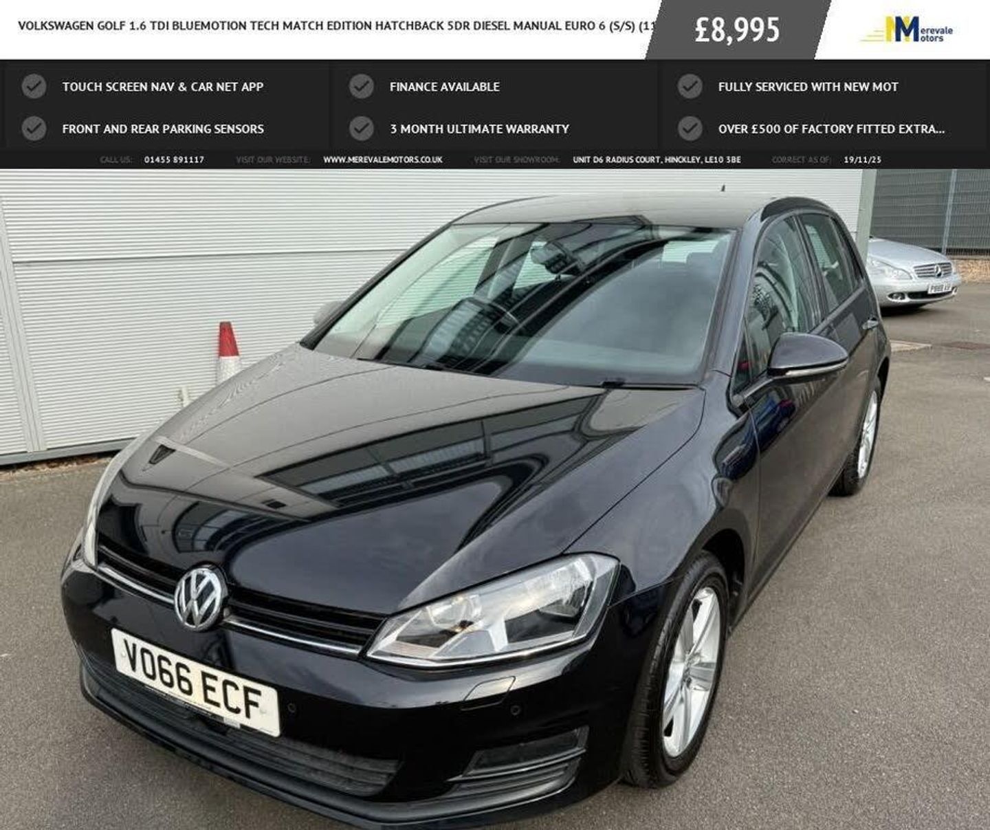 WITH ONLY TWO PREVIOUS OWNERS AND VERY LOW MILEAGE FOR ITS AGE AT JUST 37,291 MILES, THIS 2016 VOLKSWAGEN GOLF TDI MATCH EDITION PRESENTS A COMPELLING OPPORTUNITY. THIS GOLF, EQUIPPED WITH A 1.6L DIESEL ENGINE AND A FULL SERVICE HISTORY, ALSO BENEFITS FROM A FRESH SERVICE COMPLETED ON 1ST AUGUST 2025 AT 37,220 MILES, AND COMES WITH 12 MONTHS MOT. THE MATCH EDITION TRIM INCLUDES PRACTICAL FEATURES SUCH AS FRONT AND REAR PARKING SENSORS WITH PARKING ASSISTANCE, MANUAL AIR CONDITIONING, ADAPTIVE CRUISE CONTROL WITH FRONT ASSIST, RADAR SENSOR CONTROLLED DISTANCE MONITORING, CITY EMERGENCY BRAKING, AND AUTOMATIC DRIVING LIGHTS. FOR PEACE OF MIND, A 3-MONTH WARRANTY IS INCLUDED. THIS GOLF STANDS OUT WITH ITS IMPRESSIVE FUEL ECONOMY OF 71 MPG AND LOW CO2 EMISSIONS, MAKING IT AN ECONOMICAL CHOICE. FURTHERMORE, ITS LOW INSURANCE GROUP PROMISES AFFORDABLE PREMIUMS. THE EURO 6 EMISSION CLASS ENSURES COMPLIANCE WITH THE LATEST ENVIRONMENTAL STANDARDS. FINANCE IS AVAILABLE AND WE CAN BUILD A PACKAGE TO SUIT YOUR INDIVIDUAL NEEDS, JUST VISIT OUR WEBSITE AND CLICK ON APPLY FOR FINANCE TO USE THE FREE ELIGIBILITY CHECKER AND THEN SIMPLY ADD YOUR DETAILS. INCLUDED IN THE SCREEN PRICE IS AN ULTIMATE WARRANTY WHICH INCLUDES BREAKDOWN COVER AND HOME START, WHICH YOU CAN EXTEND FOR JUST A SMALL COST... ALL OUR VEHICLES ARE MECHANICALLY INSPECTED BY INDEPENDENT CONTRACTORS IN ADDITION TO EXTENSIVE BACKGROUND AND MILEAGE CHECKS PRIOR TO SALE. THIS CAR IS A CATEGORY N WHICH HAD LIGHT DAMAGE TO TWO DOORS PICTURES OF WHICH CAN BE REQUESTED, ALL INSPECTIONS ARE WELCOME, SUPPLIED WITH ALL THE ORIGINAL HANDBOOKS AND TWO KEYS. PLEASE CALL 01455891117 TO ARRANGE A VIEWING AND A TEST DRIVE, YOUR PART EXCHANGE WILL BE MOST WELCOME. EXPECT A GREAT DEAL