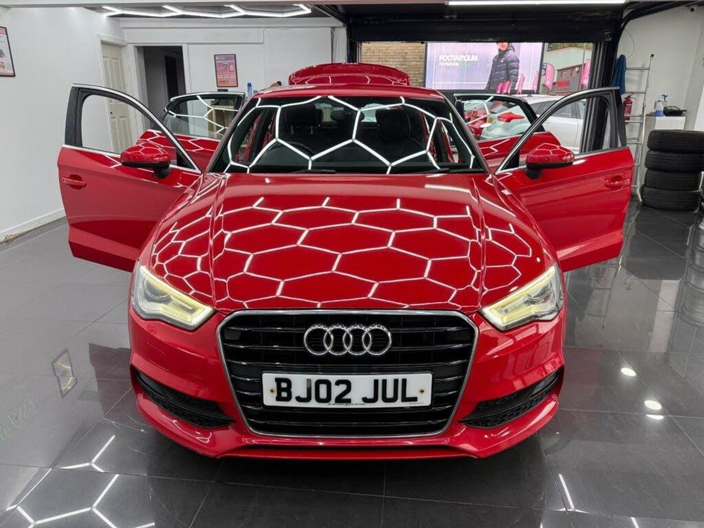 12V Power Socket - Centre Console, 12V Power Socket - Luggage Compartment, 12V Power Socket - Rear, 18in Alloy Wheels - 5-Parallel Spoke Design Partly Polished, 50 Station Memory with Dynamic Station List, ABS - Anti-Lock Braking System, AMI - Audi Music Interface, ASR - Anti Slip Regulation, Active Bonnet, Adaptive Brake Lights, Air Vent Sleeves - Aluminium Look, Airbags - Driver, Airbags - Drivers Knee, Airbags - Front Passenger, Airbags - Front Side, Airbags - Head Level Side For Front and Rear, Alarm - Thatcham Category 1, Aluminium Interior Elements, Anti Theft Locking Wheel Bolts, Audi Drive Select, Bluetooth Audio Streaming, Brake Lights - LED, Bumpers - S line Front, Car Jack, Child Locks - Manual, Chrome-Plated Exhaust Tailpipe Trim, Cloth Headlining in Black, Coat Hooks - B Pillar - Both Sides, Colour Drivers Information System - DIS, Cup Holders - Rear x2, Cup Holders - x2 in Centre Console, DAB Digital Radio, Display Screen Colour - 5.8in, Door Mirrors - Body Coloured with Integrated LED Indicators, Door Mirrors - Electrically Adjustable and Heated, Door Sill Trims, Door Sill Trims with S Line Logo, Dual-Zone Electronic Climate Control, EBD - Electronic Brakeforce Distribution, EDL - Electronic Differential Lock, ESC - Electronic Stabilisation Control, Efficiency Program in the Drivers Information System - DIS, Electric Windows - Front and Rear, Electromechanical Parking Brake, Electromechanical Power Steering, Exhaust Tailpipe - Twin, FM-AM Radio, First Aid Kit, Fog Lights - High Gloss Black Surrounds, Front Centre Armrest, Front Fog Lights, Front Passenger Airbag Deactivation Switch, Front Sports Seats, Front and Rear Floor Mats, Gear Knob - Perforated Leather, Glovebox - Illuminated, Headlights - Automatic Dynamic Range Control, Headlights - Bi-Xenon Plus, Headlights Washers, Heated Windscreen Washer Jets, High Mounted Third Brake Light, High-Visibility Jackets x2, Hydraulic Brake Assist, ISOFIX Child Seat Mounting for Front Passenger and Rear Outer Seats, Illuminated Vanity Mirrors, Immobiliser, Inlays - Matt Brushed Aluminium, Interior Lighting, LED Daytime Running Lights, LED Rear Indicators, LED Rear Lights, Luggage Compartment - Lashing Points x4, Luggage Compartment - Side Net, MMI Control Panel, MMI Radio, Mobile Telephone Preparation - Bluetooth Interface, Model and Engine Technology Badges at Rear, Pollen Filter, Preparation for SD Card-Based Navigation System, Radiator Grille - High Gloss Black, Rear Diffuser - S Line Design, Remote Central Locking with 2 Fold Away Keys, Rest Recommendation System, S Line Badges on Front Wings, S Line Design Body Styling, SD Card Reader, Seat Belt Reminder for All Seats, Seats - Front Height Adjustment, Seats - Split Folding Rear - 60-40, Secondary Collision Brake Assist, Side Sills - S Line, Smoking Package, Space Saver Spare Wheel, Speakers x8, Speed-Dependant Volume Control, Sport Suspension, Steering Wheel - 3-Spoke Leather-Multifunction-Flat Bottomed-Shift Paddles, Steering Wheel - Height and Reach Adjustable, Steering Wheel - Multi-function, Storage Compartment Under Rear Seat, Storage Compartments in the Door Side Trims-Centre Console-Under Front Passenger Seat, Storage Net in Front Passenger Footwell and Front Seat Backrests, Storage and Luggage Package, Sun Visors - with Covered Vanity Mirrors, TP Memo - Automatically Saves Traffic News, Tool Kit, Traction Control, Tyre Pressure Monitoring System, Voice Control - Telephone, Warning Triangle, Washer Fluid Level Indicator, Window Surrounds - Aluminium