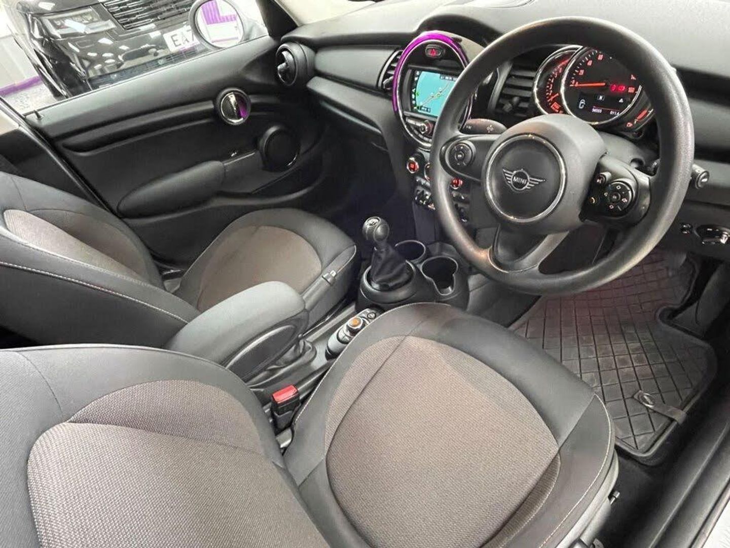 12V Socket in Centre Console, 15in Steel Wheels, 3 Point Seatbelts on all Seats, 4 Lashing Eyes in Luggage Compartment, 6 Speakers - in Front Door Trims and Underneath Front Seats, 6.5in Screen with LED Ring, Air Conditioning - Manual, Airbags, Alarm System, Anti-Lock Braking System - ABS, Automatic Headlight Activation Switch, Bluetooth for Compatible Mobile Phone - with Audio Streaming, Carbon Black Colour Line - Knee Roll and Door Armrests, Chrome Highlights, Cup Holders, Door Sill Strips - Metal with MINI, Door Storage Compartments, Dynamic Brake Lights, Dynamic Stability Control - DSC, Electric Windows, Electro-Mechanical Steering with Speed Dependant Steering Assistance, Electronic Vehicle Immobiliser, FM Tuner and DAB Digital Radio, Foldable Rear Seats 60-40, Front and Rear ISOFIX - including Front Passenger Airbag Deactivation, Fuel Filler Cap in Body Colour, Gear-Change Indicator Display, Glove Compartment, Headliner - Satellite Grey, Heated Rear Window, Heated Windscreen Washer Jets, Instrument Cluster, Interior Lighting, Interior Surface - Black Grained-Hazy Grey, LED Headlights with Closed Ring as Daytime Driving Lights, LED Reading Lights - Vanity Mirror Lights - Front Footwell Lights - Spotlights on Front Seats, Leatherette Gearshift Lever and Handbrake Gaiters, MINI E-Call, MINI Logo Projection on Floor from Drivers Exterior Mirror, MINI TeleServices, Mechanical Seat Adjustment, Multifunction Controls for Steering Wheel, On-Board Computer, Radiator Grille - Chrome Border with Black High-Gloss Slats, Rain Sensor Window Wipers, Rear Fog Light, Rear LED Lights with Union Jack Design, Rear Window Wiper, Roof and Mirror Caps - Body-Colour, Side Scuttle Panels with Integrated Indicators, Single Tone Fanfare Horn, Start-Stop Toggle including Keyless Go, Steering Column Height and Length Adjustment, Steering Wheel - 3-Spoke, Sun Visor with Vanity Mirrors, Sun-Heat Protection Glass, Tool Kit in Luggage Compartment, Tyre Pressure Monitoring System, White Direction Indicators Lights, Comfort Pack, Firework Cloth - Carbon Black, Navigation Pack, Pepper White