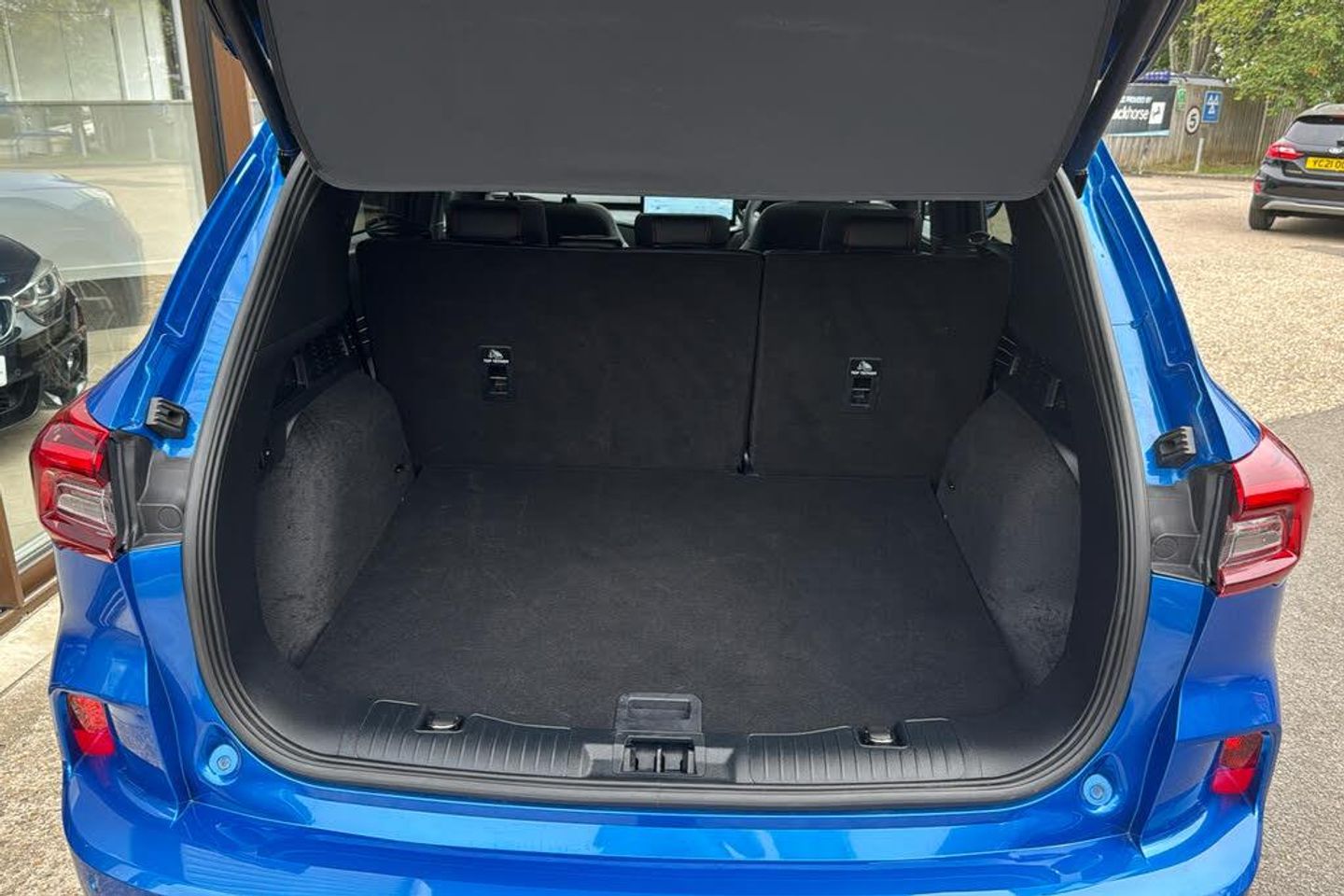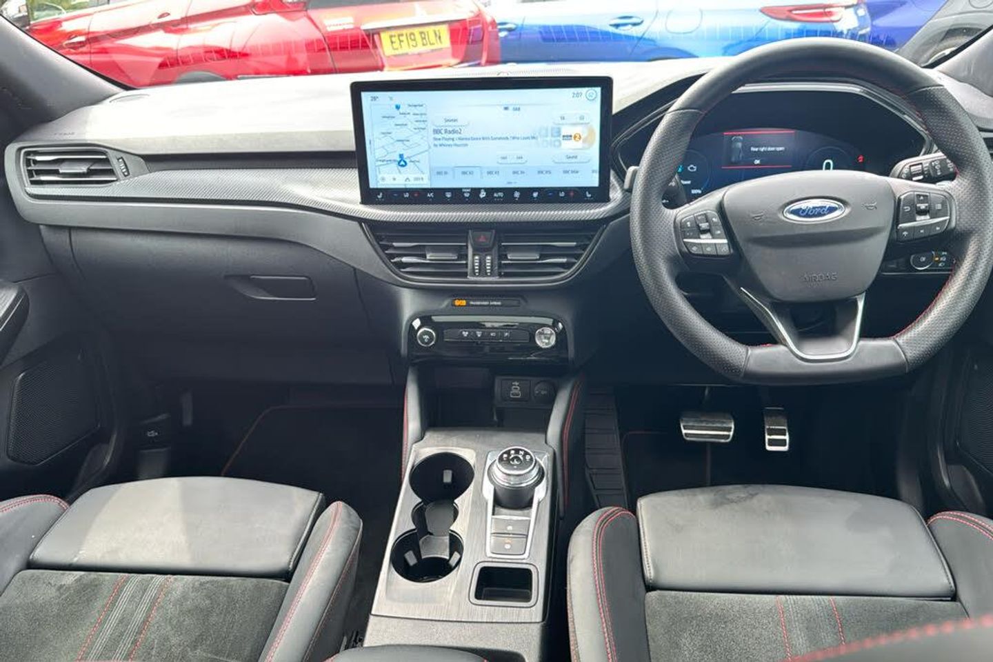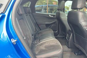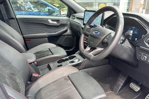 12-Way Ergonomic Power Adjust Drivers and Passengers Seat 12V Power Point in Floor Console 12v Power Point in Cargo Area 12v Socket - Voltage Regulator 19in Alloy Wheels - ST-Line- Ebony Black - Machined Finish 2nd Row Sliding Seats 360 Degree Camera ABS - Anti-lock Braking System Adaptive Cruise Control Air Conditioning - Electronic Automatic Temperature Control - EATC Airbag - Driver and Front Passenger Side Airbag - Front Passenger Deactivation Switch Airbags - Driver and Front Passenger Airbags - Front and Rear Side Curtain Aluminium - Finish Front Scuff Plates with ST-Line Script Aluminium Foot Pedals - ST-Line Design Ambient Lighting Auto Dimming Rear View Mirror Auto Wipers Automatic Door Relocking Black Roof Rails Centre Console with Electronic Parking Brake Child Locks - Manual on Rear Doors Cross Traffic Alert Digital Colour 12.3in Instrument Cluster Driver Assistance Pack Driver and Passengers Sun Visor with Illumination Dual Exhaust Tailpipes with Unique Brushed Stainless Steel Finish EPAS - Electric Power Assisted Steering Electric Parking Brake with Auto Hold Electrical Charging Point in Second Row Engine Immobiliser - SecuriLock Exterior Door Handles - Body Coloured Ford Easy Fuel System Ford Keyfree System - Keyless Entry with Ford Power Starter Button Ford SYNC 4 Navigation Front Seats - 2-Way Manual Height Adjust Passive Head Restraints Front Seats - Drivers and Passengers Seatback Map Pockets Front Seats - Sports Style V-shape with High Bolster Front Windows - Laminated Glass Front and Rear Bumper - Sporty Body Colour with Rear Ebony High-Gloss Insert Front and Rear Floor Mats with Red Stitching Front and Rear Parking Sensors Full LED Headlamps Gearshift - Automatic - Electronic Rotary Gearshift Dial Glovebox Lights Handsfree Power Tailgate Headlights - Automatic Follow Me Home Lighting Headlights - Automatic High Beam Assist Headlights - Levelling System - Manual Headlights - Unique Bending Headliner - Sports Dark Heated and Power Folding Door Mirrors - Puddle Lights - Memory Function - Camera High-Mounted Brake Light Kuga Badge LED Daytime Running Lights LED Fog Lights - Front Lane Keeping Aid with Lane Departure Warning Large Rear Spoiler Load Compartment - Lights Load Compartment - Tie Down Hooks Load Compartment Carpet Locking Wheel Nuts Lower Bodyside Moulding - Body Colour Lower Door Frame Beltline - Black Mini Overhead Console with Sunglasses Holder Bin MyKey Pop-Out Door Edge Protectors Power Door Deadlocks - Double Locking Power Door Locks Power Opening Panoramic Roof Pre-Collision Assist with Autonomous Emergency Braking Quickclear Heated Windscreen Rear Duct on B-Pillar Rear Lights - LED Rear Privacy Glass Rear Seat - 60-40 Split Folding Seats Rear Seat Centre Head Restraint Rear Seats - 2-Way Head Restraint Up-Down Rear Seats - Folding Centre Armrest with Integrated Cup Holder Rear Seats - Sliding Seat Adjust Tracks - Fore-Aft Red Brake Calipers Remote Tailgate Release Removable Package Tray Rocker Panel Mouldings - Body Colour - ST-Line Design ST-Line Badge on Left and Right Side Wings ST-Line Bodystyling Kit ST-Line Front and Rear Bumper Moulding - Body Colour Seat Belt - Drivers - Front Passenger and Rear Seat Belt Reminder Alert Seat Belts - Front 3-Point Seatbelts with Load Limiter Seat Belts - Front Height Adjustable Seat Belts - Rear Retractable Rear Belt - 3-Point All Positions Seats - ISOFIX Mounting Provision for Child Seats - Outer Seats Only Selectable Drive Modes Single Rear Fog Light Steering Column - Locking Electric Steering Column - Rake and Reach Adjustment Steering Wheel - ST-Line Sports-Style Perforated Sensico-Trimmed with Red Stitching Suspension - Sports Tailgate Handle - Body Colour Tether Anchorage - Two Rear Seat Top Tether Anchorage Restraints Thatcham Category 1 Perimeter and Volume Sensing Alarm Tow Hooks - Front and Rear Trip Computer Tyre Inflation Kit Tyre Pressure Monitoring System Upper Door Frame Beltline - Black Windows - Power Front and Rear with Global Closing Winter Pack Wiper - Intermittent Rear Window Wiper Wrong Way Alert eCall