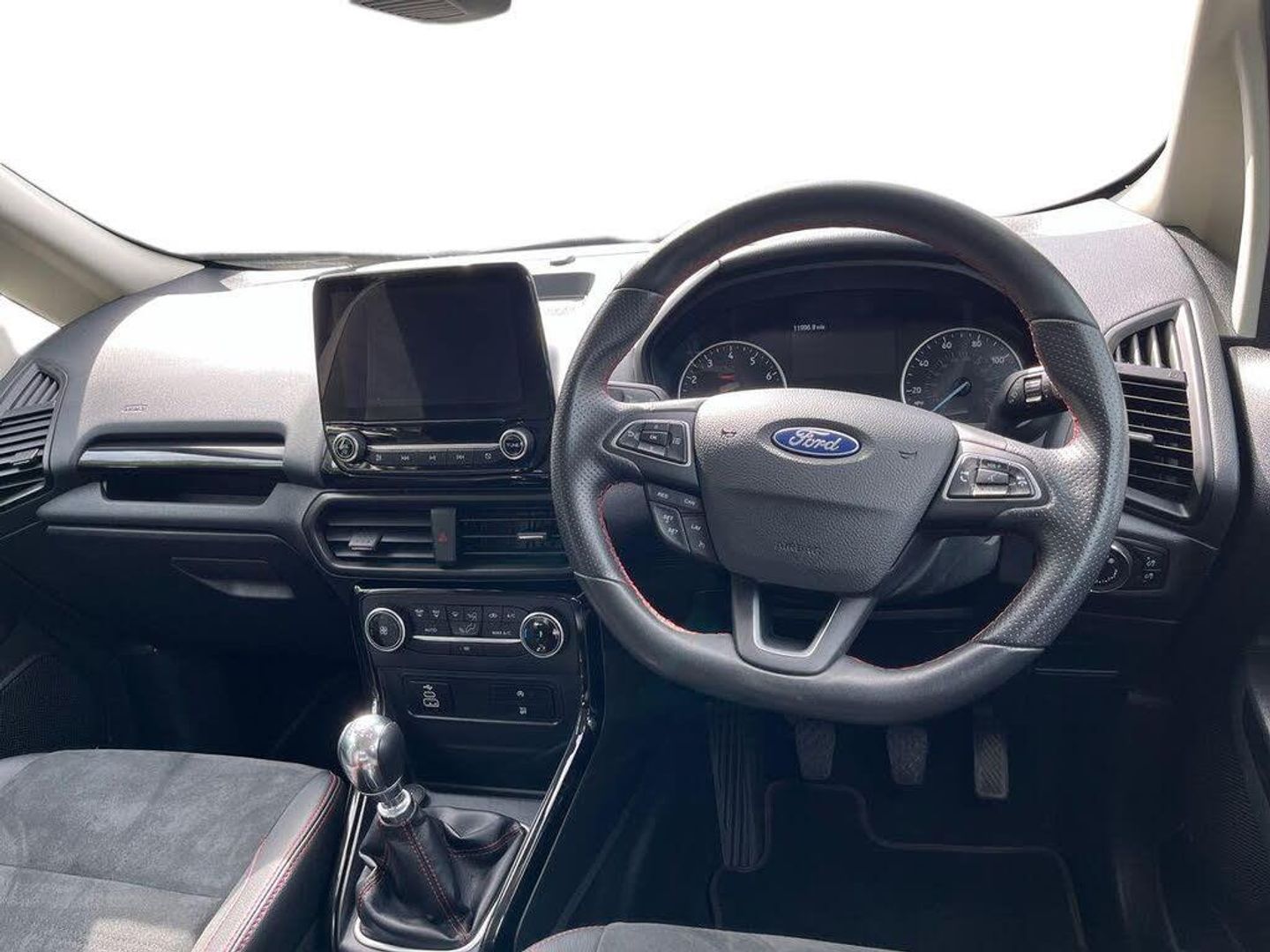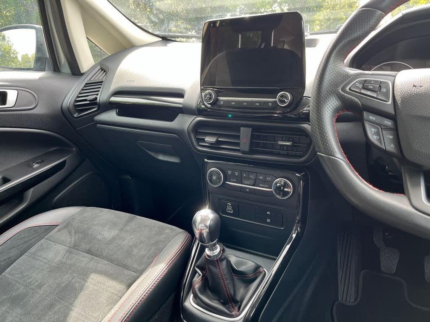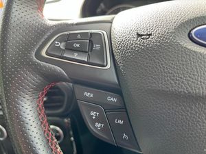 Cruise control, e-Call (emergency call), Easy fuel capless refuelling system, Ford SYNC 3 nav system with DAB radio,8" screen, emergency assistance,Apple car play/Android auto, 2x USB, 6 speakers, Ford pass connect, Intelligent speed limiter, PAS, Rear parking sensors, Rear view camera, Traffic sign recognition, Trip computer, Sports suspension, Steering wheel mounted audio controls, Auto dimming rear view mirror, Automatic front wipers, Automatic headlights, Black roof rails, Body colour door handles, Body coloured bumpers, Chrome lower window surround, Electrically adjustable and heated door mirrors, Front fog lights, Front grille bars and surround in black, Headlight levelling control, Large rear roof spoiler, LED day running lights, LED third brake light, Power front and rear windows, Puddle lights, Quick-clear heated windscreen, Rear side wing doors, Rear wiper, ST Line body styling kit - Black headlamp bezel, front and rear sport bumpers, body colour lower door claddings, 12V socket in front and rear, 3 seat bench in 2nd row, 60/40 split rear seats, Ambient lighting, Centre console with sliding front armrest, Cooled glovebox, Courtesy lights with map reading light, Driver seat height/lumbar adjust, Driver's side glovebox, Driver/passenger sunvisors and lidded vanity mirrors, EATC - Electronic Auto Temperature control, Folding grab handles, Front head restraints, Front seat back map pockets, Illuminated glovebox, Illuminated luggage compartment, Isofix system on outer rear seats, Luggage compartment carpet, Neosuede/Partial sensico leather upholstery, Overhead console with sunglasses holder, Rake adjustable rear seats, Reach + rake adjustable steering column, Rear headrests, Sensico trimmed steering wheel, handbrake and gearshift gaiter with red stitching, Single front passenger seat, ST-Line Front floor mats with red stitching, Stainless steel sports pedals, Storage drawers under front seats, Tie down hooks, Variable boot floor, 3x3 point rear seatbelts, ABS, Autonomous emergency braking, Child locks on rear doors, Curtain airbags, Driver airbag, Drivers knee airbag, Electronic Stability Programme with hill launch assist, Front passenger airbag deactivation, Front side airbags, Passenger airbag, Pre collision assist system with AEB, Seatbelt reminder for driver and front passenger, Traction control, Tyre pressure monitoring system, Immobiliser, MyKey system, Remote central locking, Thatcham 1 volume sensing alarm, Low rolling resistance tyres, Tyre inflation kit