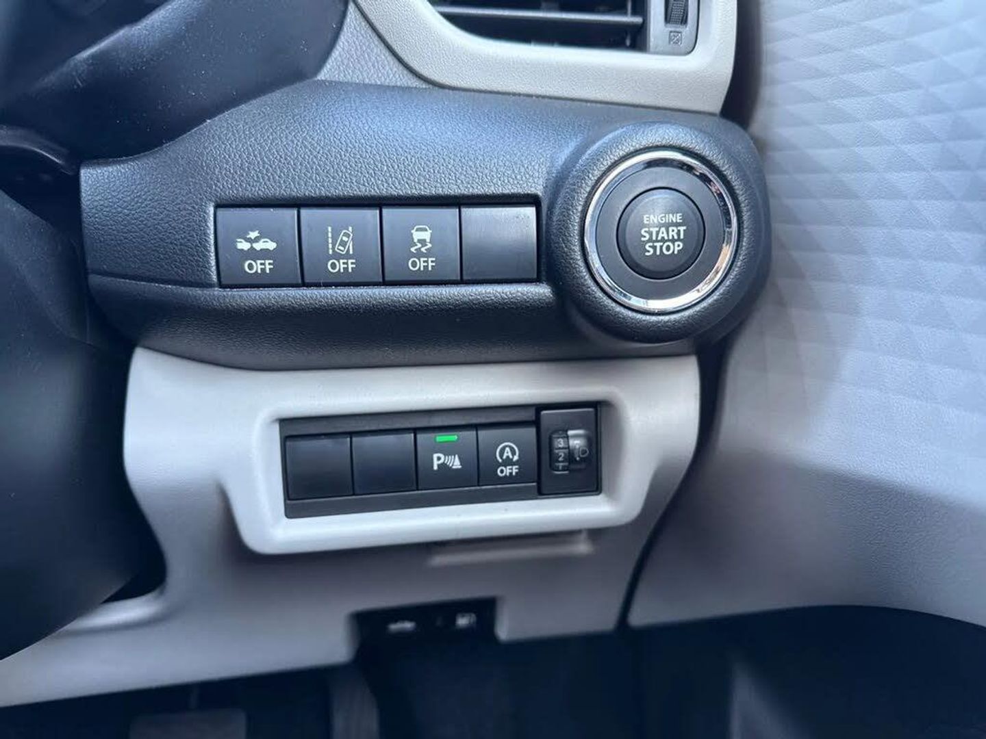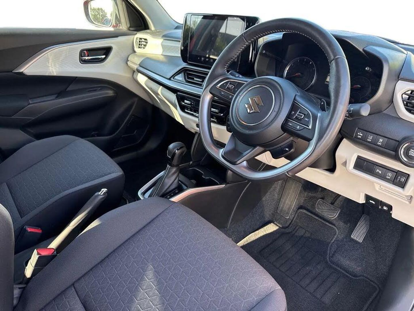 Adaptive cruise control with Stop and Go,Automatic start/stop system,Blind spot monitoring,Colour LCD information display,Digital clock,Driver monitoring system,eCall,Fuel consumption display (average/instantaneous) and range display,Intelligent speed control support,Lane departure prevention,Lane departure warning system,Lane keeping assist (LKA),Low fuel level warning light,Navigation system,Outside temperature display,PAS,Rear cross traffic alert,Rear parking camera,Rear parking sensors,Remote fuel cap release,Smartphone integration with Apple CarPlay and Android auto,Suzuki connect,Tailgate,Traffic sign recognition,Weaving alert,4 speakers + 2 tweeters,9-inch infotainment display,Auxiliary input socket,Bluetooth audio streaming,DAB Digital radio,Steering wheel audio controls,USB Type A and C,'Guide me home' headlamps,1 speed with intermittent rear wiper + washer,2 speeds front wiper with intermittent + washer,Automatic headlights,Black coloured A & B pillars,Black Upper and lower front grille,Body colour door mirrors and handles,C pillar trim moulding,Door mirrors with built-in turn signal lamp,Electric door mirrors,Electric folding door mirrors,Electric front windows,Electric rear windows,Green tinted glass,Heated door mirrors,High beam assist,LED daytime running lights,LED High mounted stop light,LED number plate light,LED position lamps,LED projector headlamps,LED rear combination lamp,Manual headlamp level control,Rain sensor,Rear fog lights,Rear privacy glass,Rear side wing doors,Rear spoiler,Side spoiler,1 cup holder in rear,12V Accessory socket in front console,2 cup holders in front,2 Isofix seat anchors,3 bench rear seats in 2nd row,3 rear head restraints,3 spoke leather covered steering wheel,60/40 split rear seats,Accessory socket,Automatic air conditioning,Centre console storage,Centre lower box,Child seat tether anchorages x 2,Chrome handbrake release button,Chrome interior door handles,Cloth upholstery,Door pockets with bottle holder,Driver/passenger sunvisors with ticket holders + vanity mirrors,Front cabin lights,Front headrests,Front map light,Front passenger side assist grip,Gearshift paddles,Glovebox,Heated front seats,Heater,Height adjustable driver's seat,Luggage area lamp,Painted interior door trim ornament,Parcel shelf,Passenger seat back pocket,Pollen filter,Rear assist grips x2,Rear heater duct,Single front passenger seat,Tilt adjustable steering wheel,Tilt/telescopic adjustable steering wheel,3 point ELR seatbelts for centre seat,3 point ELR seatbelts front and rear,ABS+EBD+Brake assist,Curtain airbags,Driver airbag,Dual sensor brake support,ESP + traction control,Front and rear seatbelt reminder,Front passenger airbag,Front passenger airbag deactivation,Front seat seatbelts shoulder height adjuster,Front seatbelt pretensioners with force limiters,Hill hold control,Rear child proof door locks,Rear seatbelts with pre-tensioners and load limiters,Side airbags with incorporated into front seats,Tyre pressure indicator,Deadlocks,Freewheeling key cylinders,Immobiliser,Keyless entry and start,Light - on and Key in reminder,Locking wheel nuts,Remote central locking,Painted instrument panel ornament,16" Polished alloy wheels,Emergency flat tyre repair kit