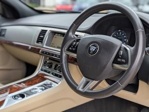 3.5mm Stereo Auxiliary Input Socket, 7in Colour Touch Screen Display, Audio Equipment - Jaguar Sound System 250W-Radio-CD-MP3, Auxiliary Power Point in Rear, Bluetooth Audio Streaming, Bluetooth Telephone Connectivity, DAB Radio Receiver, Front Media Interface, Remote Power Amplifier, Satellite Navigation, Speakers x10, TFT Message Centre, Brake Pad Wear Indicator, Cruise Control, JaguarDrive Control with Dynamic Mode, JaguarDrive Control with Sport and Winter Mode, Optimal Shift Indicator, Rear Parking Aid with Touch Screen Visual Indicator, Trip Computer, Tyre Pressure Monitoring System, 17in Alloy Wheels - Ursa, Acoustic Layer Windshield, Chrome Grille with Chrome Surround, DLO - Daylight Opening - Chrome - Window Surrounds, Door Mirrors - Electric Adjustment-Heated with Side Repeaters, Electric Windows, Exhaust - Twin, Heated Rear Window with Timer, Jaguar Tyre Repair System, Approach Illumination - Automatic via Remote, Automatic Headlight On, Automatic Headlight Washers, Headlights - Automatic Levelling, Headlights - LED Signature Lights with Daytime Running, Headlights - Xenon, LED Tail Lights, Auxiliary Heater, Bright Knurled Aluminium, Driver and Front Passenger Sun Visors with Illuminated Vanity Mirrors, Driver and Passenger Electric Seat Height Adjustment, Drivers Foot Rest, Dual Zone Automatic Climate Control, Front Centre Console with Storage Compartment and Twin Cupholders, Front Courtesy Footwell Lights, Front Seats - Whiplash Reduction System, Head Restraint - Rear Centre, Headlining - Morzine - Dove Grey, Interior Mood Lighting - Phosphor Blue Halo Illumination, Jaguar Smart Key System with Keyless Start, JaguarSense - Overhead Light Console, Rain Sensing Windscreen Wipers, Rear Coat Hooks, Remote Control Boot Release, Remote Controls for Audio System, Satin Rosewood Veneer, Seats - Electric Driver-Passenger Adjustment - 6x6 Way, Seats - Front - Back Map Pockets, Seats - Rear Centre Armrest, Steering Column - Electric Adjustment for Height and Reach with Entry and Exit Tilt-Away, Steering Wheel - 3-Spoke-Leather-Shift Paddles, Tailored Instrument Panel - Bond Grain Stitched and Door Top Rolls, Twin Cupholders in Rear Seat Centre Armrest, ASL - Automatic Speed Limiter, Servotronic Steering, ABS - Anti-locking Braking System, Airbags - Driver, Airbags - Front Side, Airbags - Passenger, Airbags - Side Curtain, EBA - Emergency Brake Assist, EBD - Electronic Brake-Force Distribution, EPB - Electronic Parking Brake - Drive Away Release, ISOFIX Anchor Points for Rear Child Seat, Pedestrian Contact Sensing and Deployable Bonnet, Remote Control Central Locking with Dead Locking and Drive-Away Locking, Security System, Trac DSC - Dynamic Stability Control with 3 Setting Levels, Traction Control