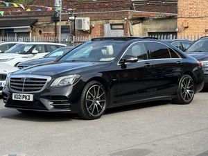 This 2021 Mercedes-Benz S Class S350Ld Grand Edition boasts an exceptionally low mileage for its age, having covered just 48,000 miles. It benefits from a full dealership service history, with its last service completed on 08 August 2025 at 48,499 miles. This Euro 6 compliant vehicle is powered by a 2.9 litre diesel engine and comes with a 3 month warranty for your peace of mind. Notable features include the Keyless Go Comfort Package with Keyless Entry, heated front seats, and advanced MULTIBEAM LED headlights with ULTRA RANGE Highbeam.The S350Ld Grand Edition offers impressive performance, accelerating from 0 to 62mph in a swift 6.0 seconds, demonstrating its capability compared to similar vehicles. For convenient manoeuvring, it is equipped with Active Parking Assist including PARKTRONIC and a 360 degree camera, providing comprehensive visibility. Inside, you can enjoy seamless connectivity with Smartphone Integration, including Apple CarPlay. Furthermore, the generous boot space ensures practicality for all your needs, making this S Class a well rounded and desirable luxury saloon.-F MERSH+SUNROOF+360CAM+LDN PCO